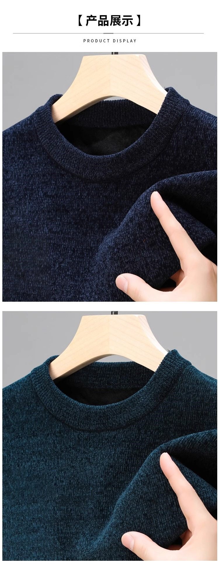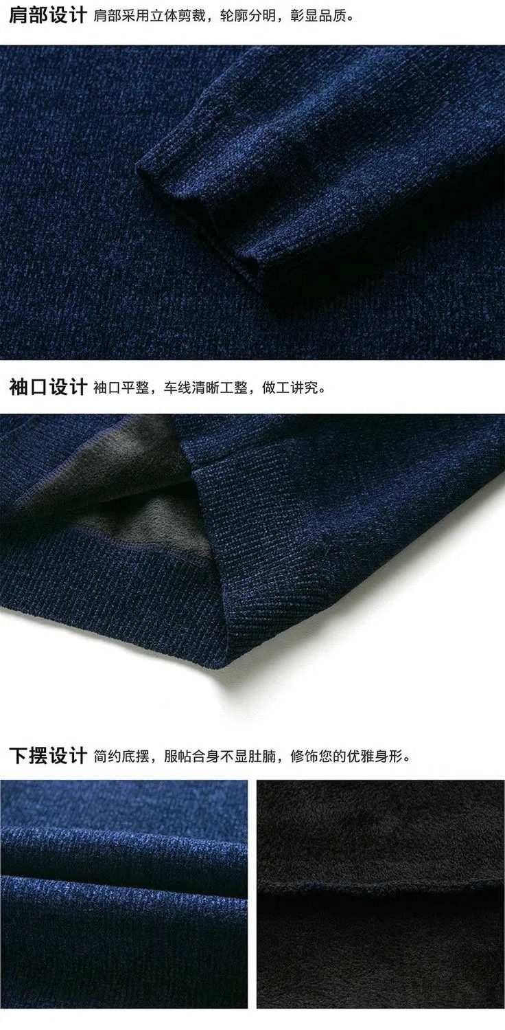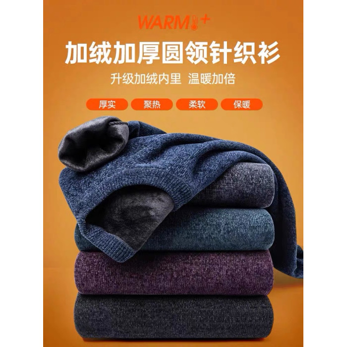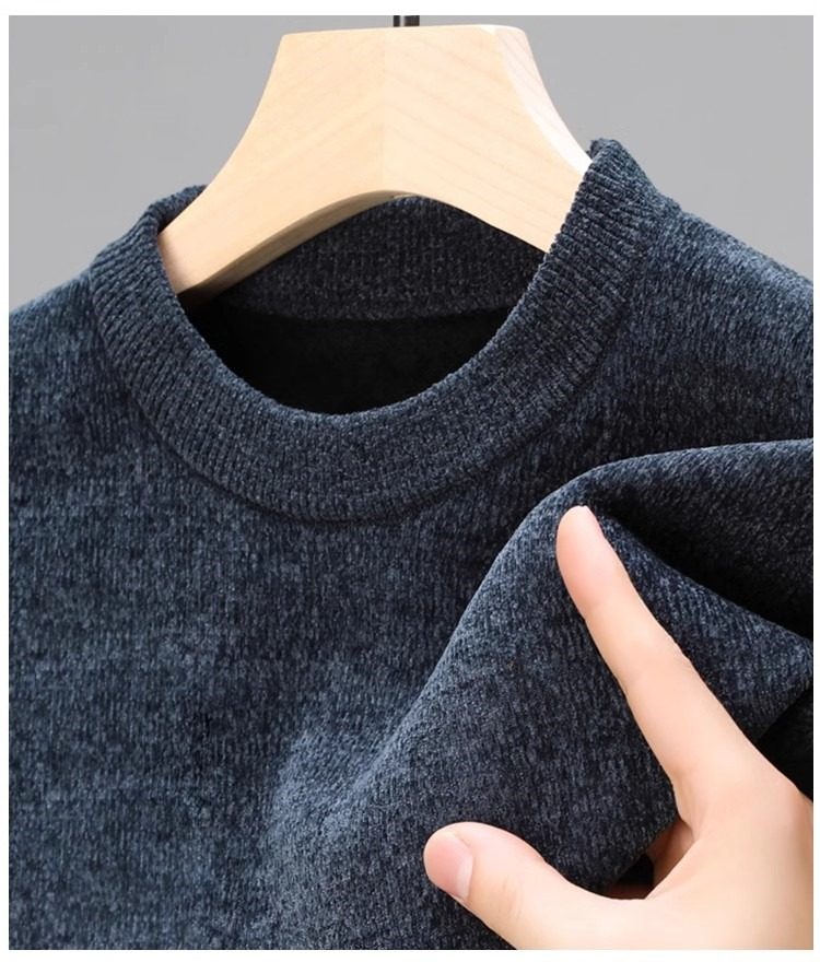 男士雪尼爾毛衣加絨加厚圓領打底針織衫冬季保暖中年羊毛衫