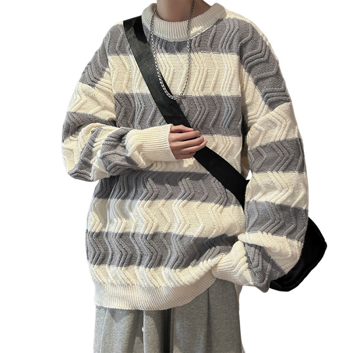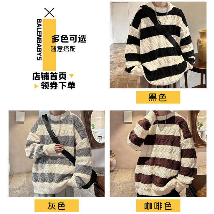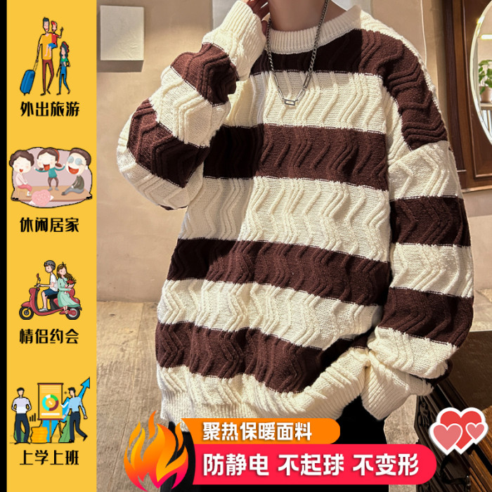 條紋毛衣男生秋冬季加厚寬松情侶2025新款慵懶風高級感潮牌針織衫