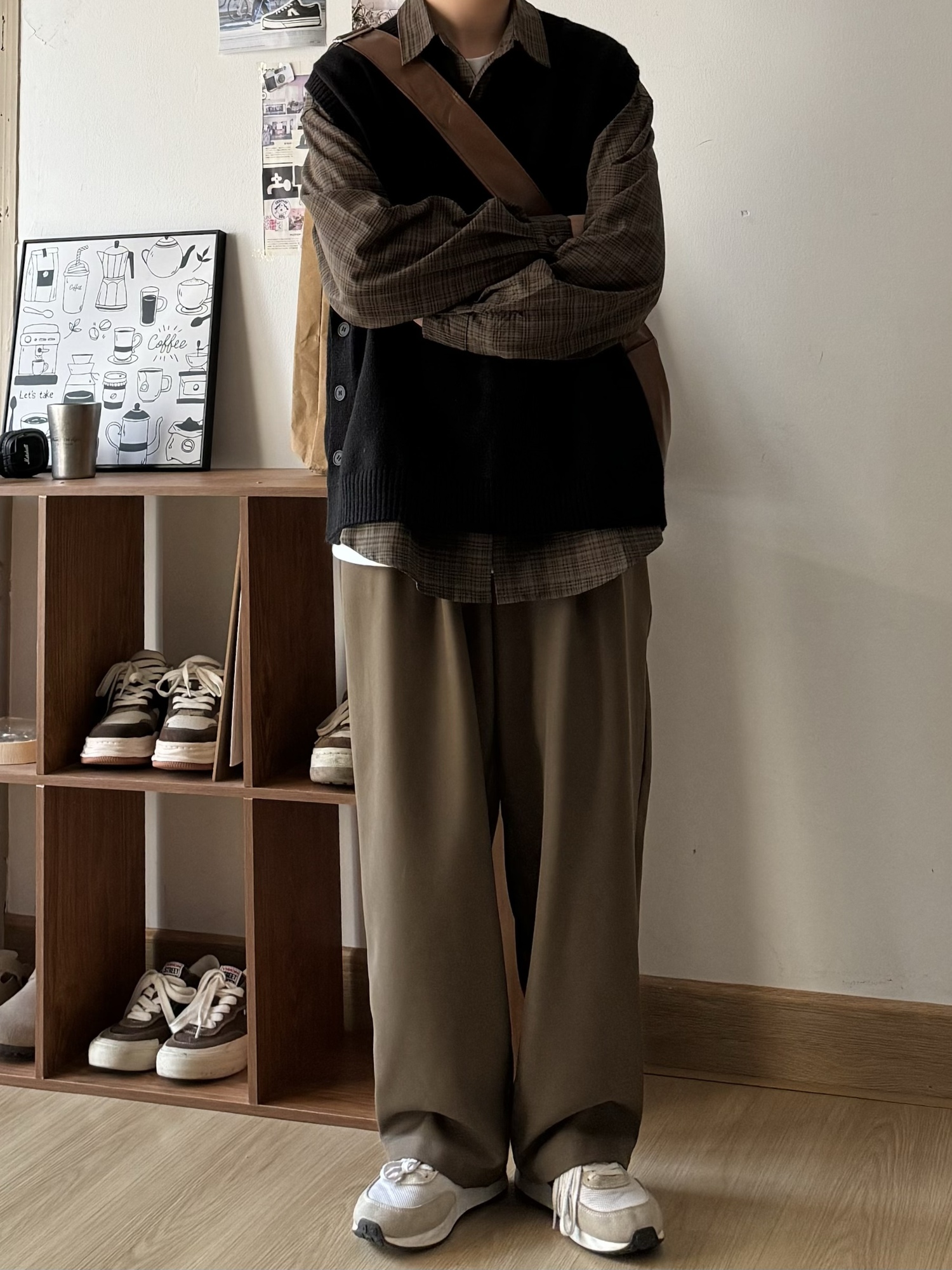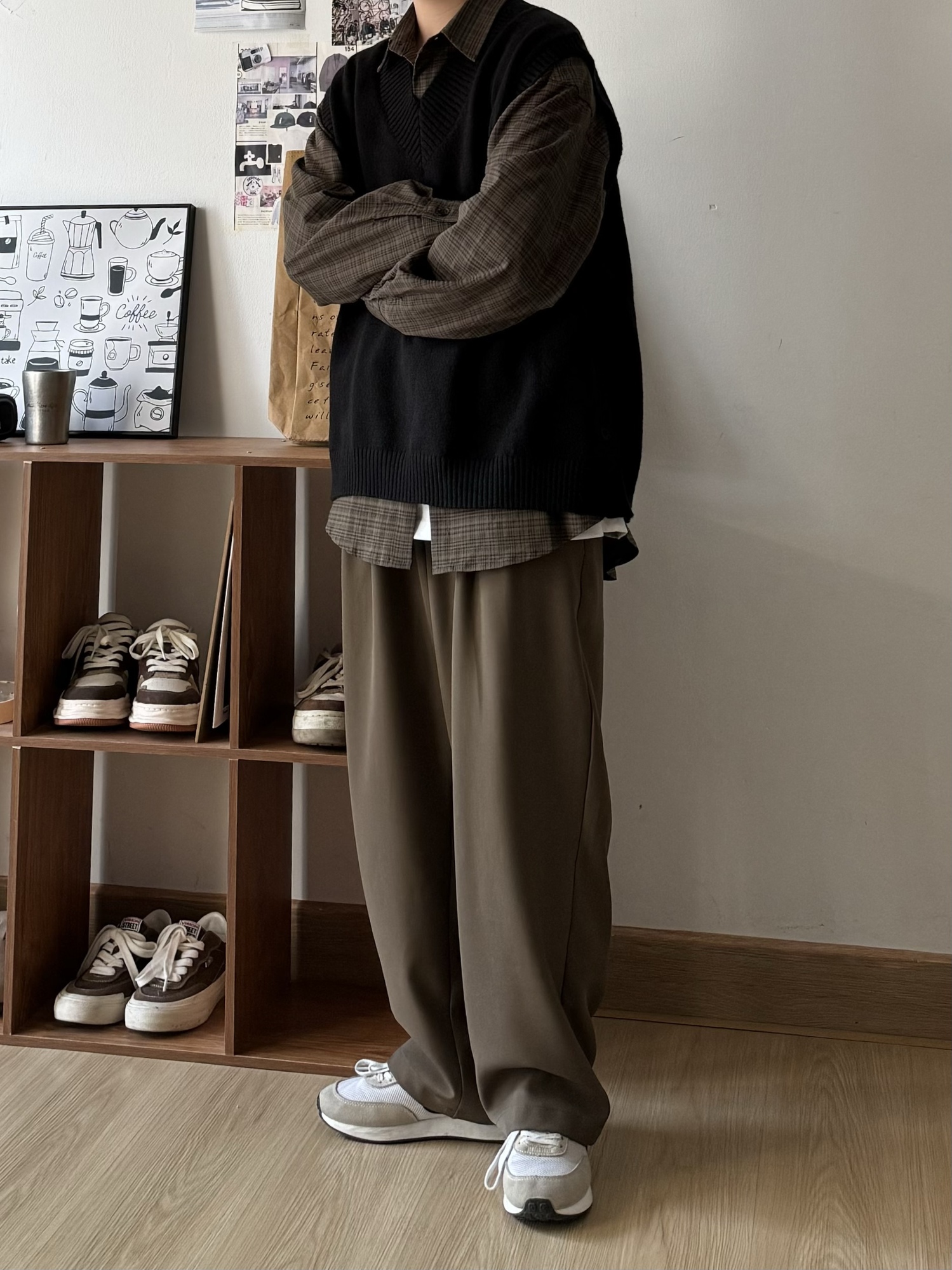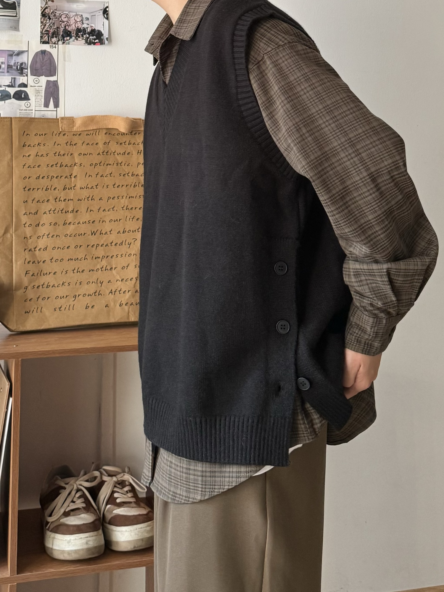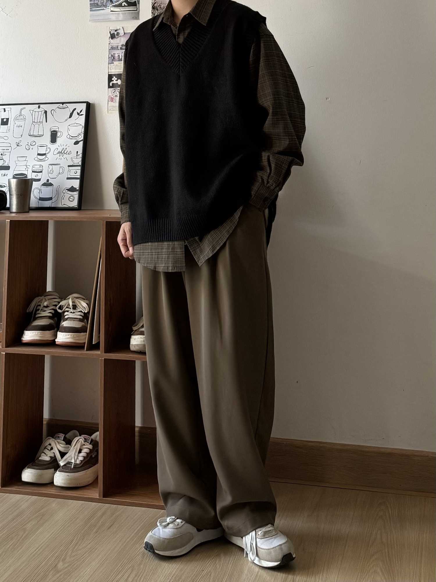 日系男裝秋冬休閒寬松V領針織馬甲毛衣復古純色中性情侶背心男女
