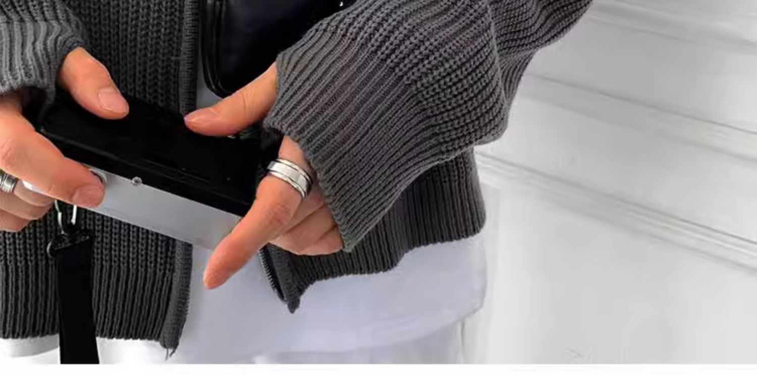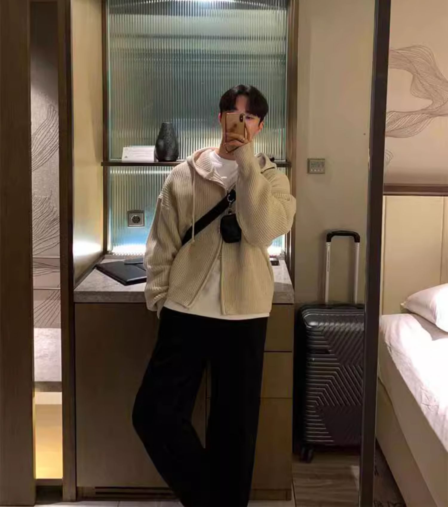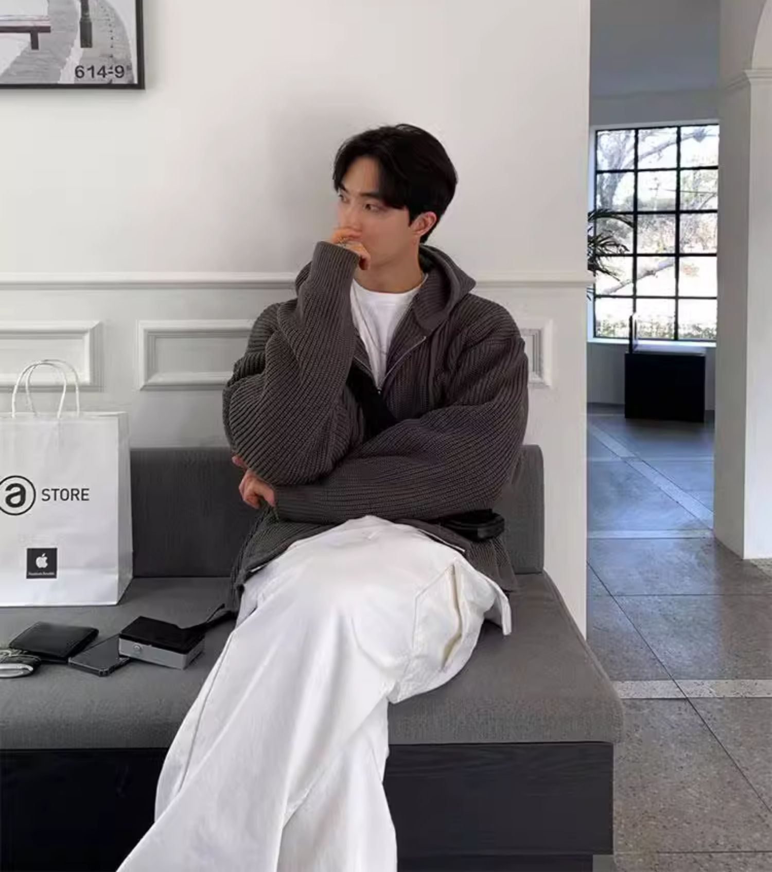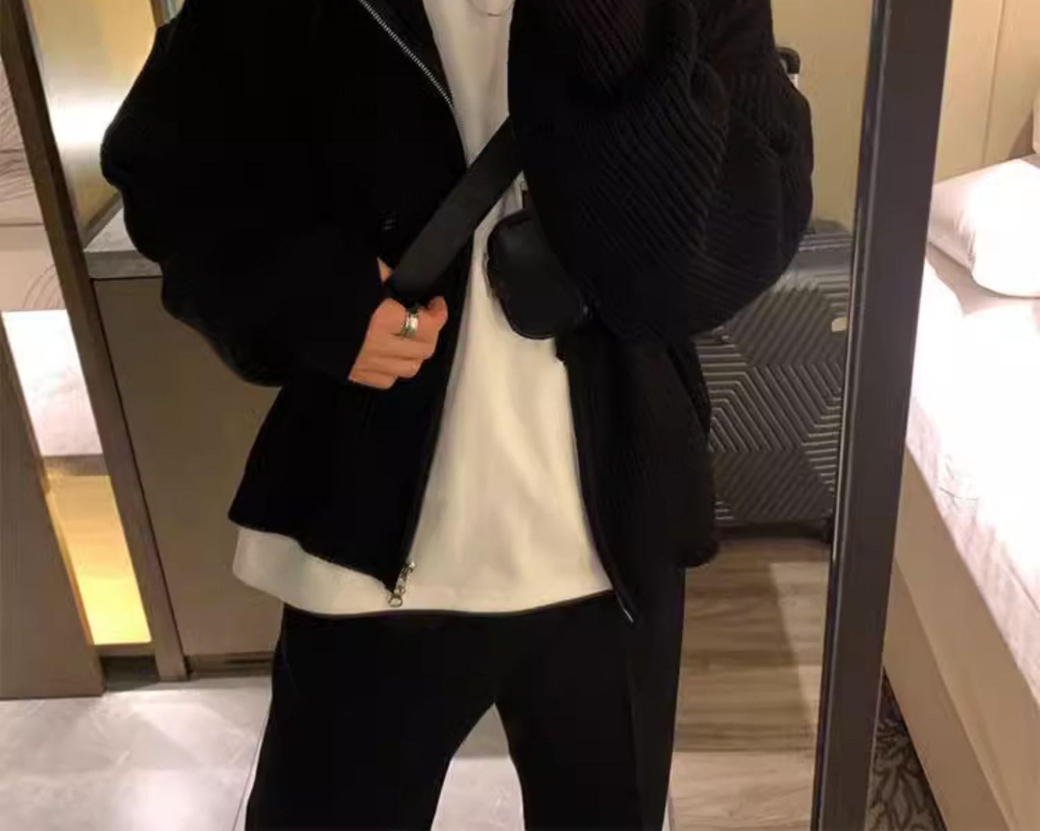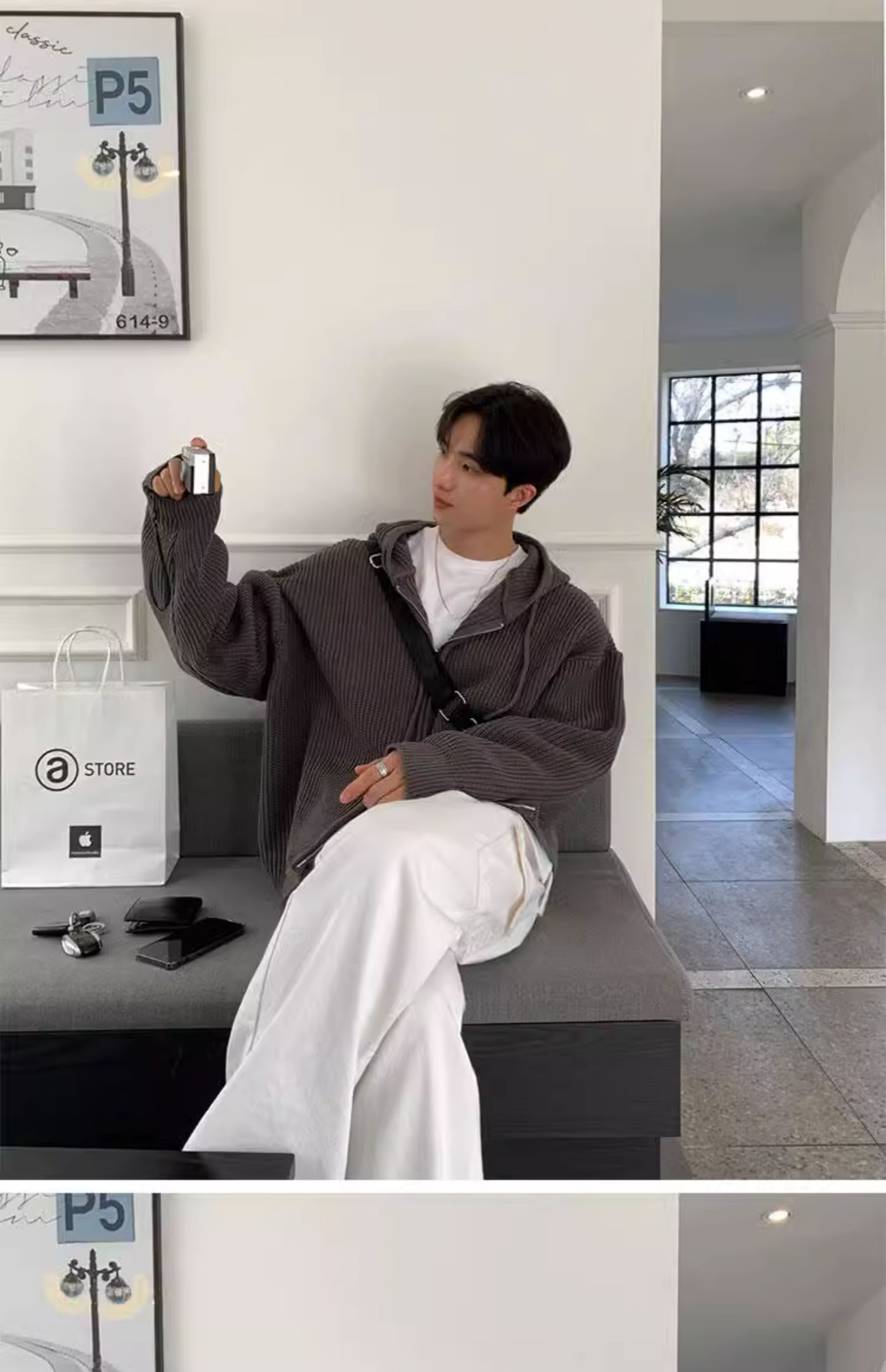 美式針織開衫毛衣外套男秋冬新款復古慵懶風潮牌百搭純色拉鍊線衣