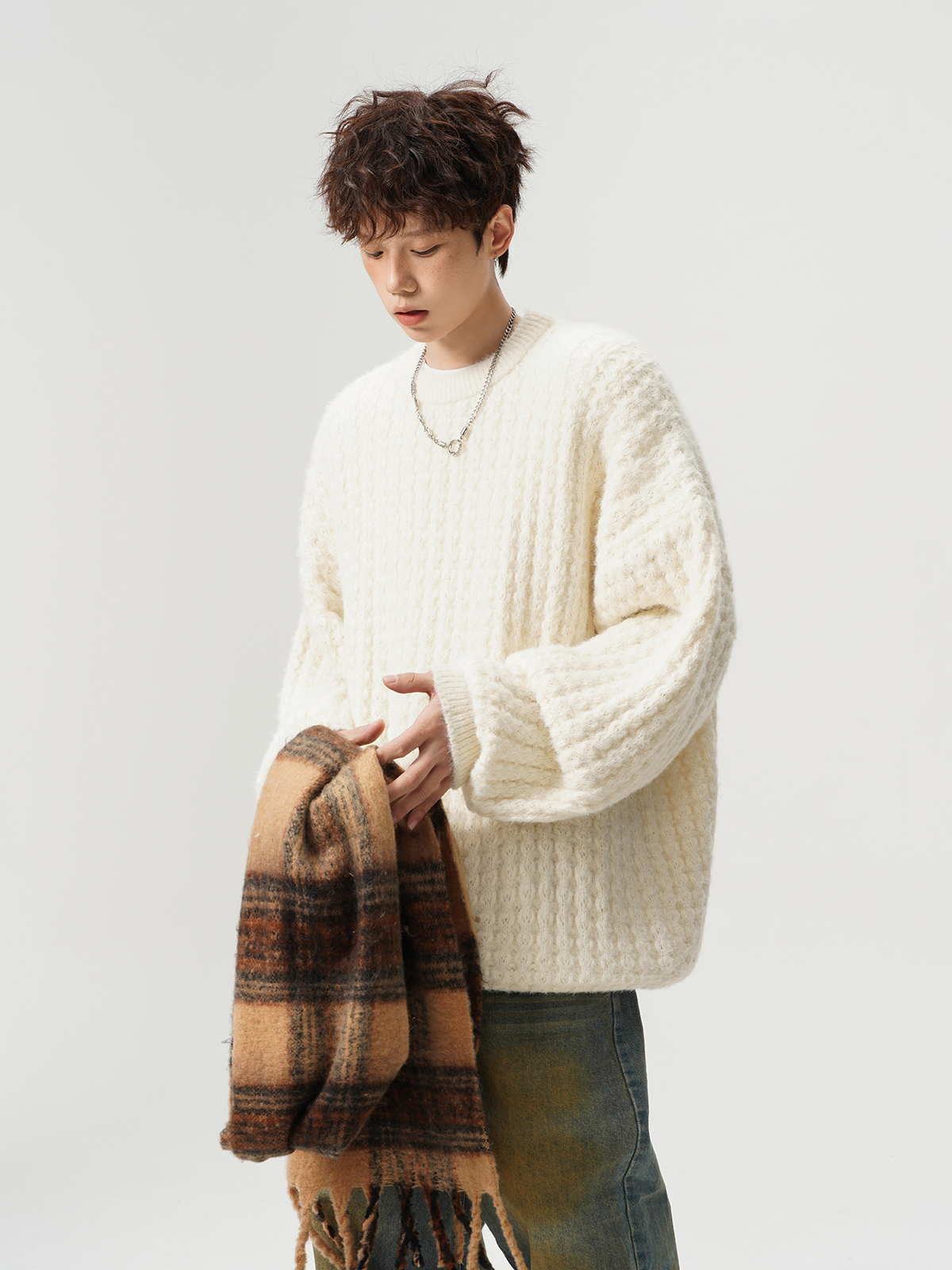 氛圍感情侶毛衣男女冬季美式聖誕麻花針織衫寬松加厚軟糯打底衫
