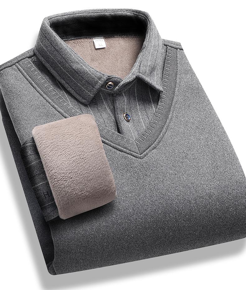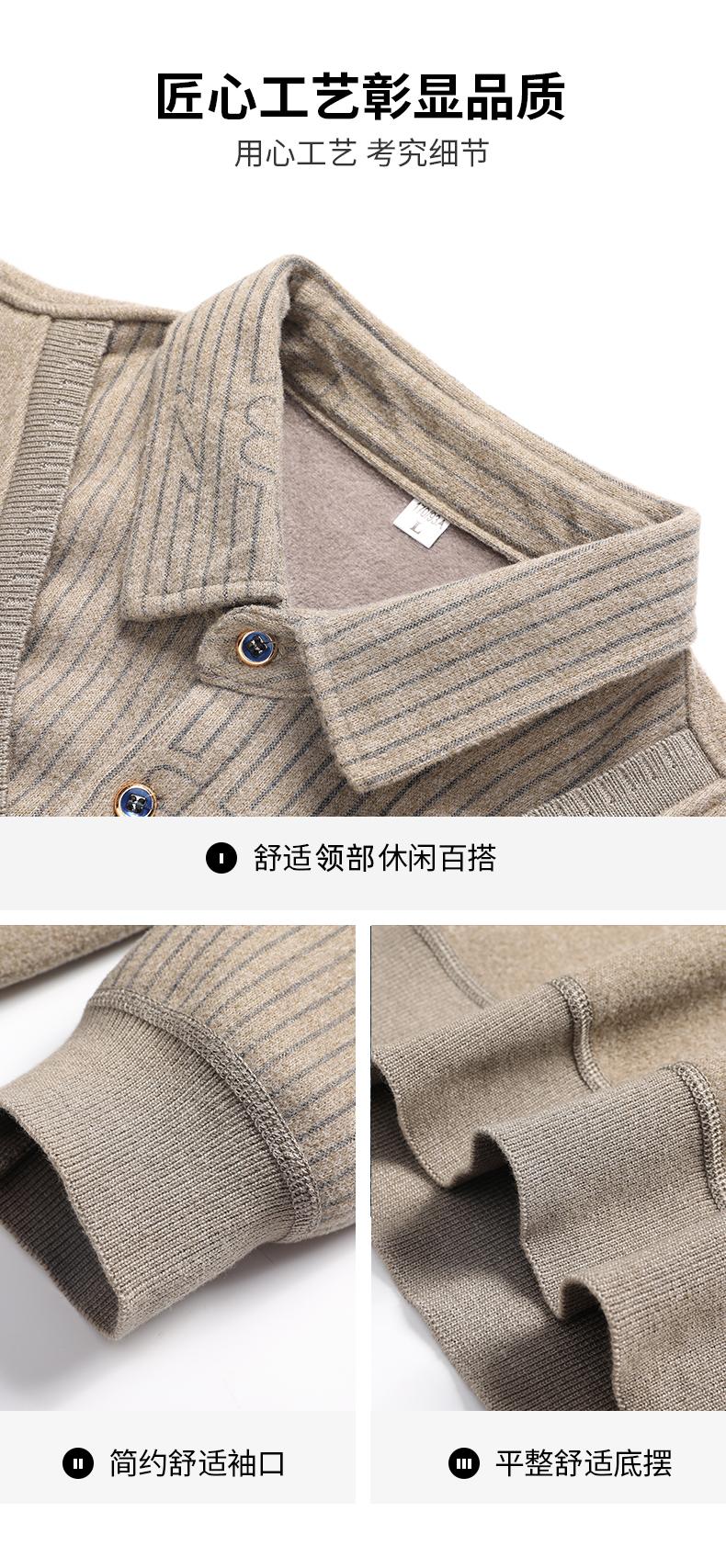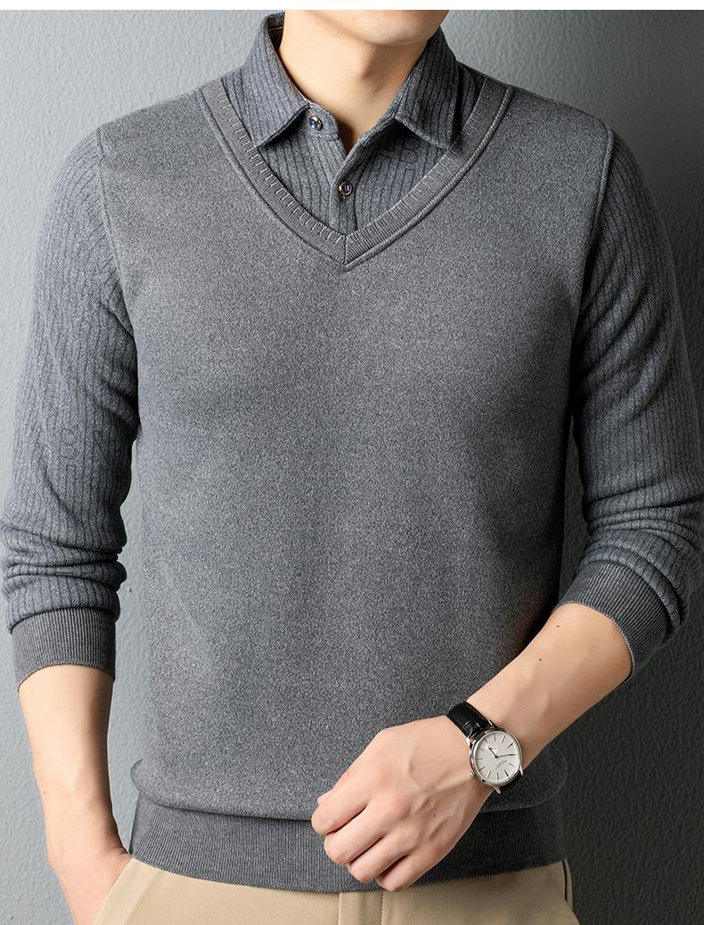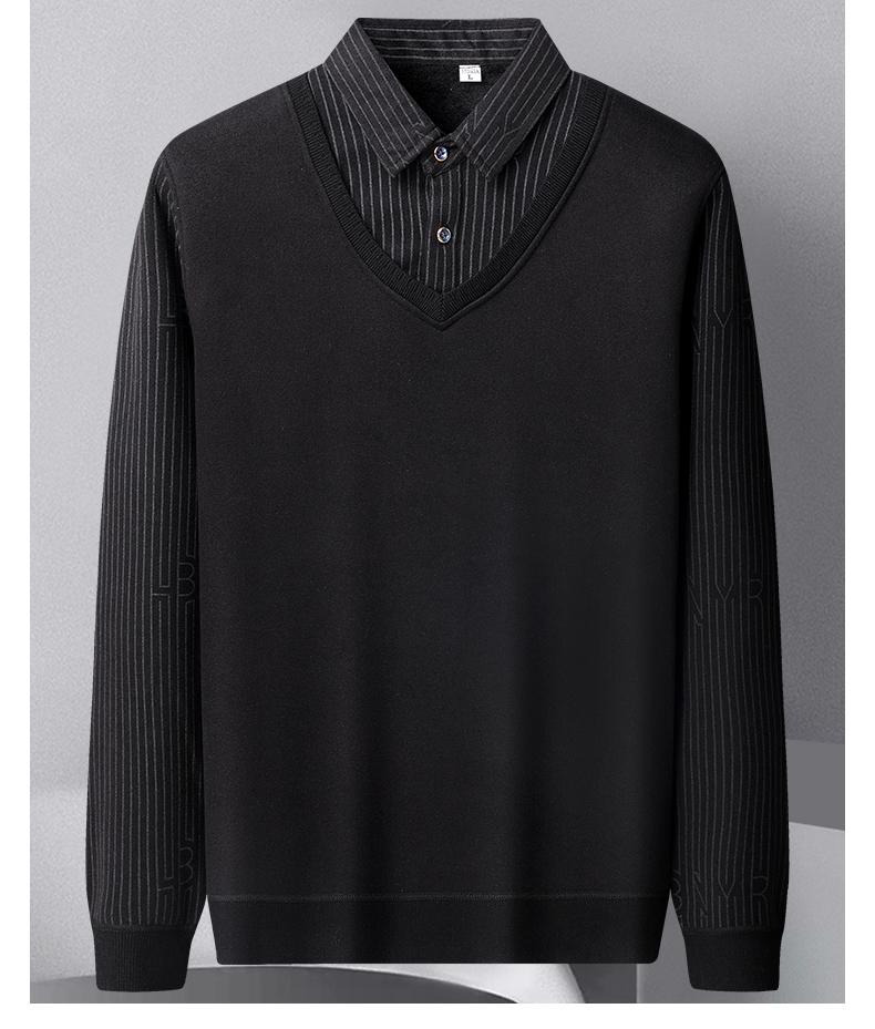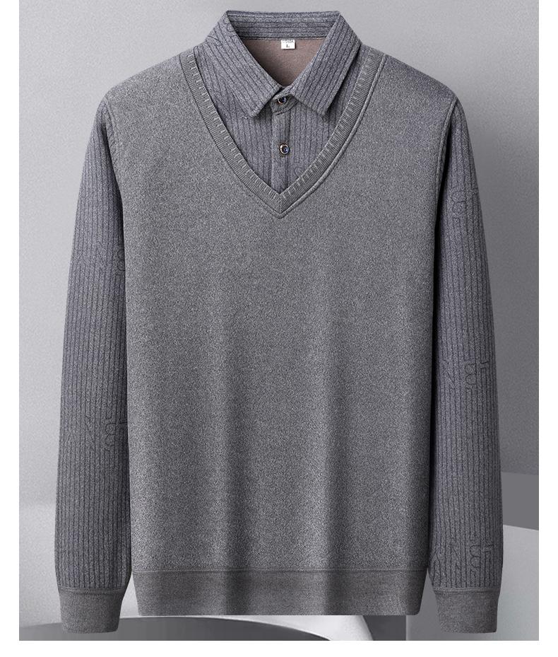 啄木鳥爸爸裝加絨加厚假兩件毛衣t恤打底衫中老年雪尼爾針織衫男
