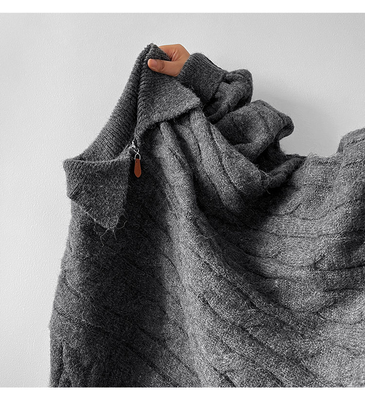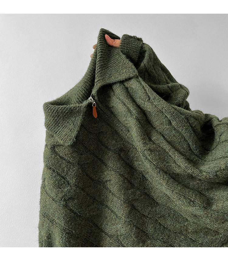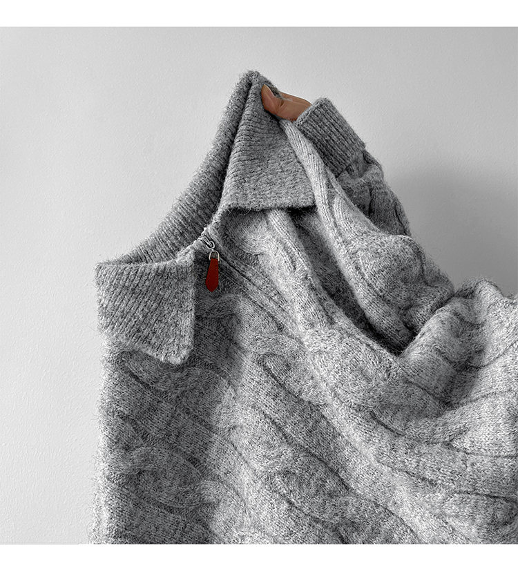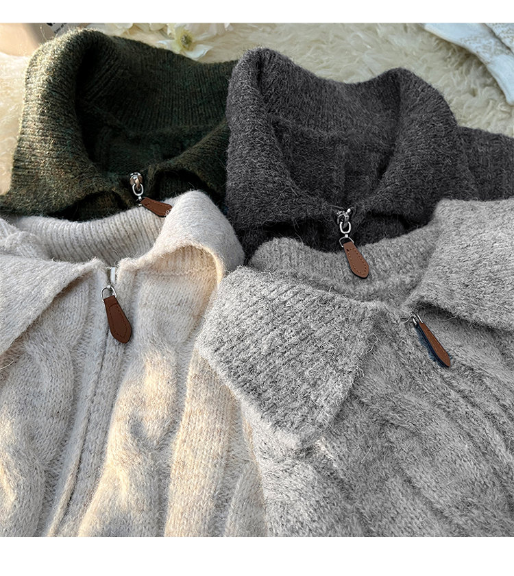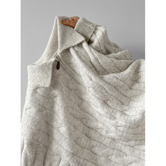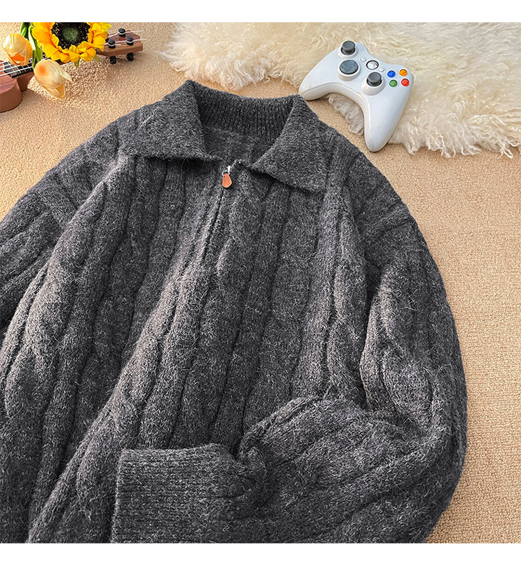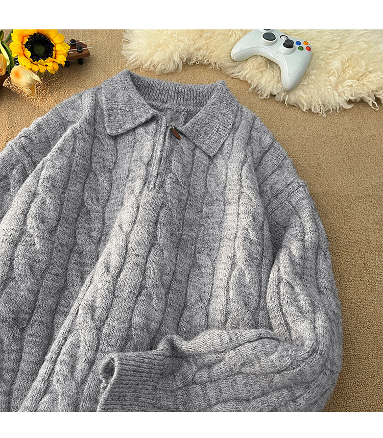 復古麻花半拉鍊針織衫男冬潮牌慵懶風情侶毛衣美式簡約休閒POLO衫