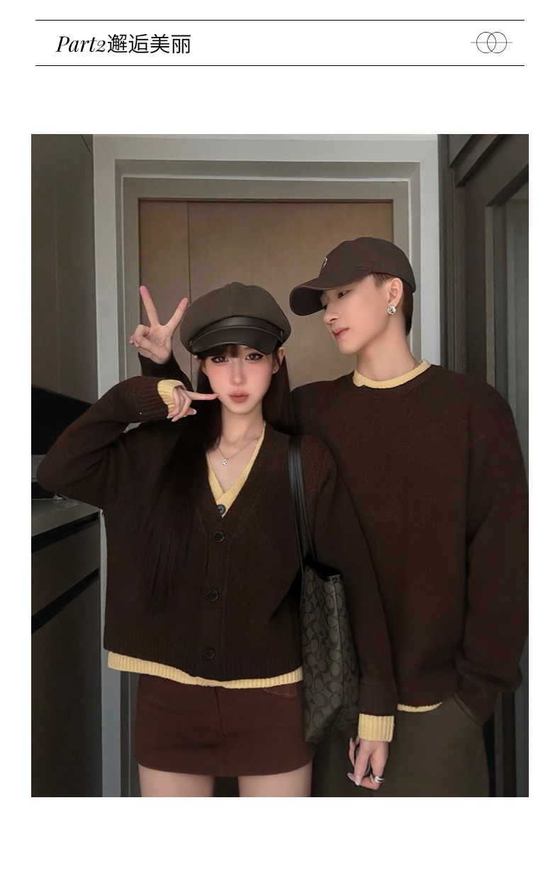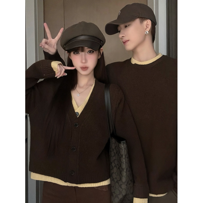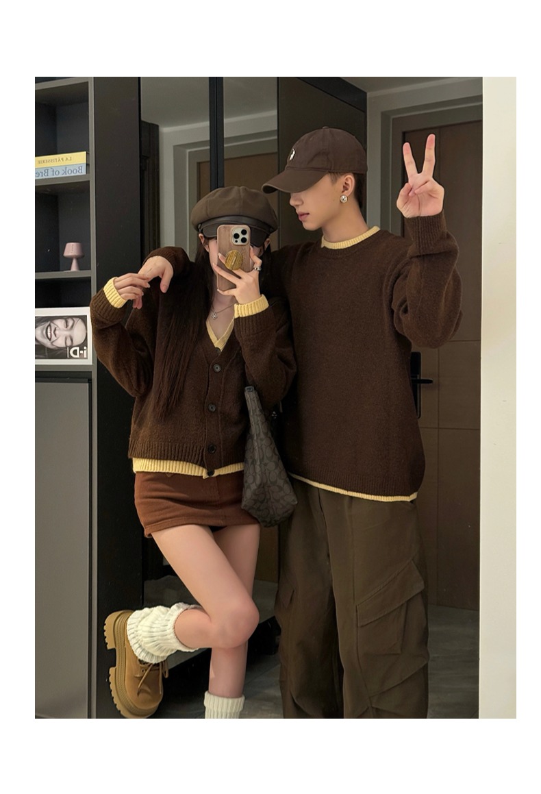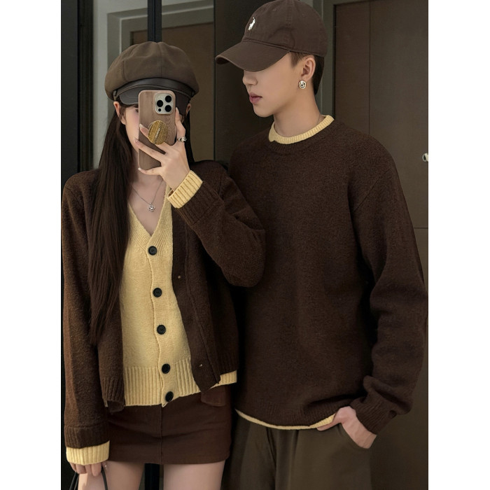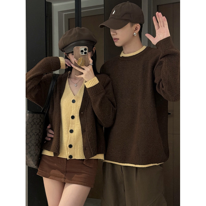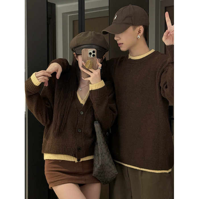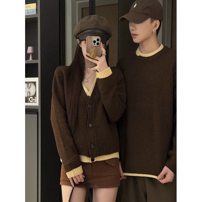 情侶裝秋季法式溫柔風毛衣2025新款設計感小衆假兩件針織上衣潮流