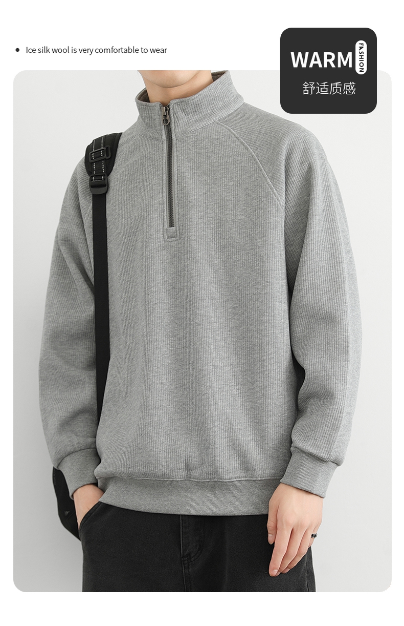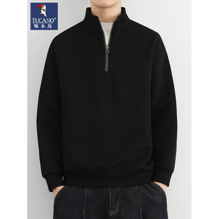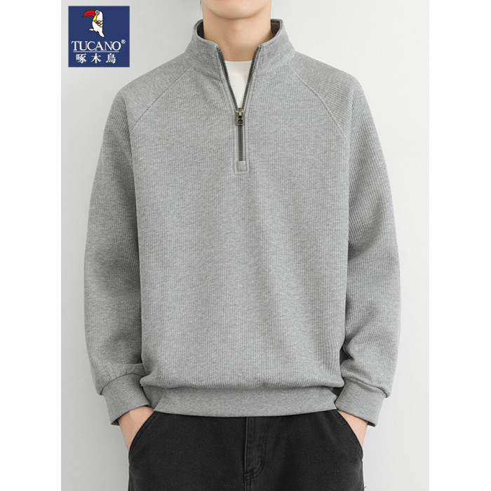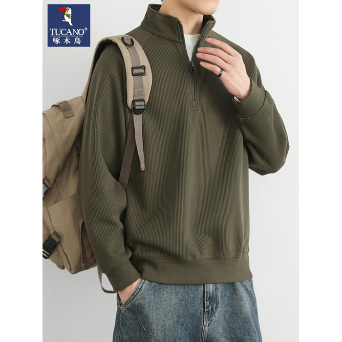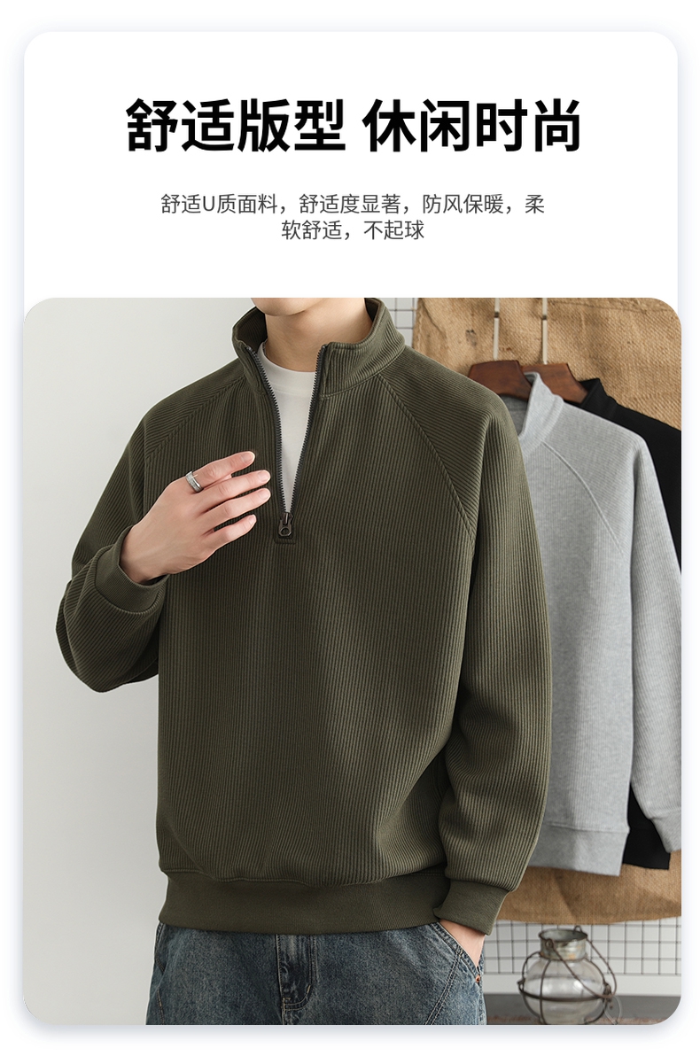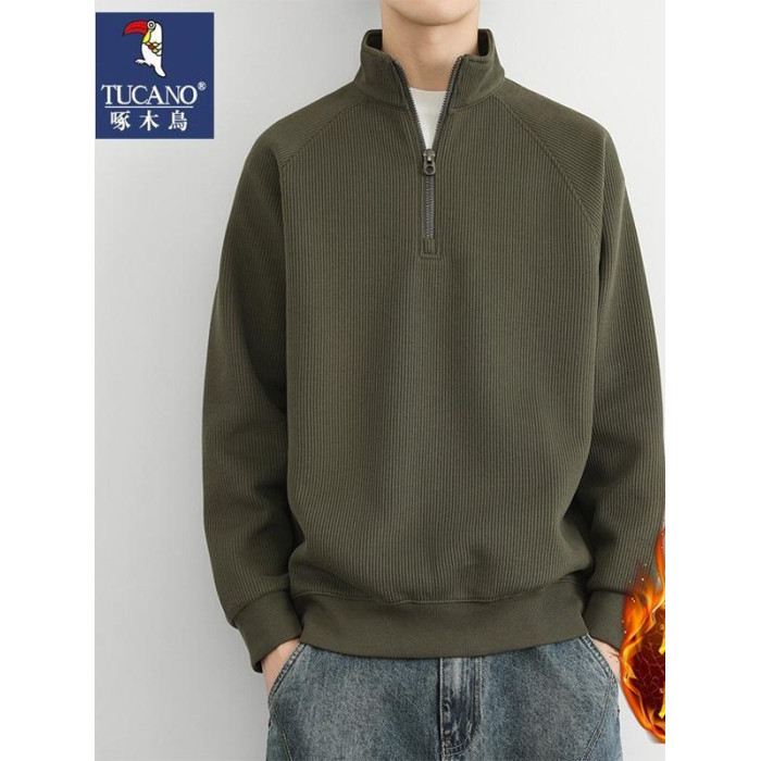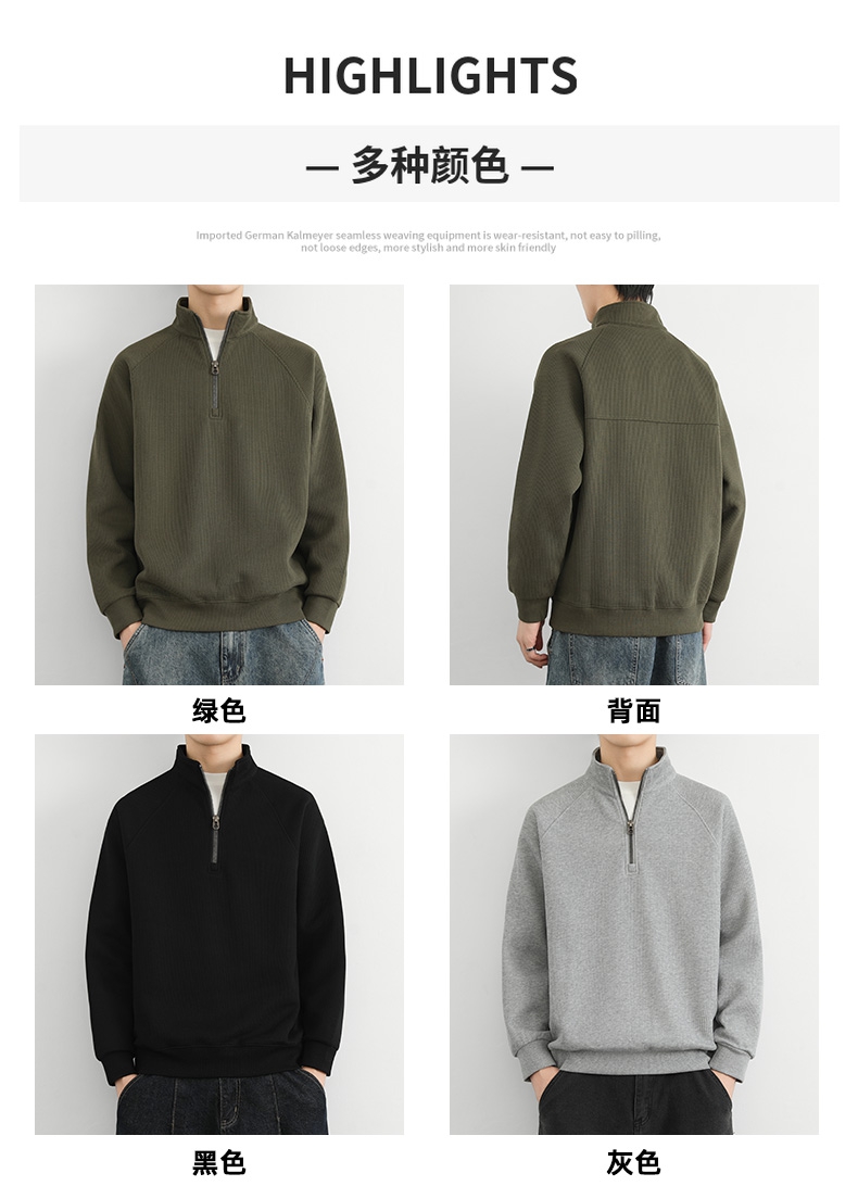 啄木鳥半拉鍊立領加絨衛衣男款春秋季美式針織衫男士純色百搭休閒