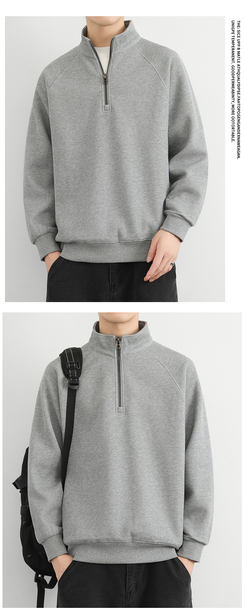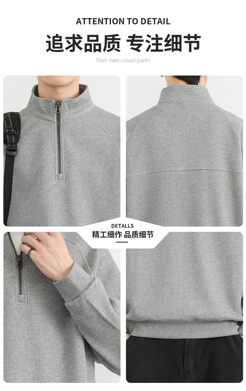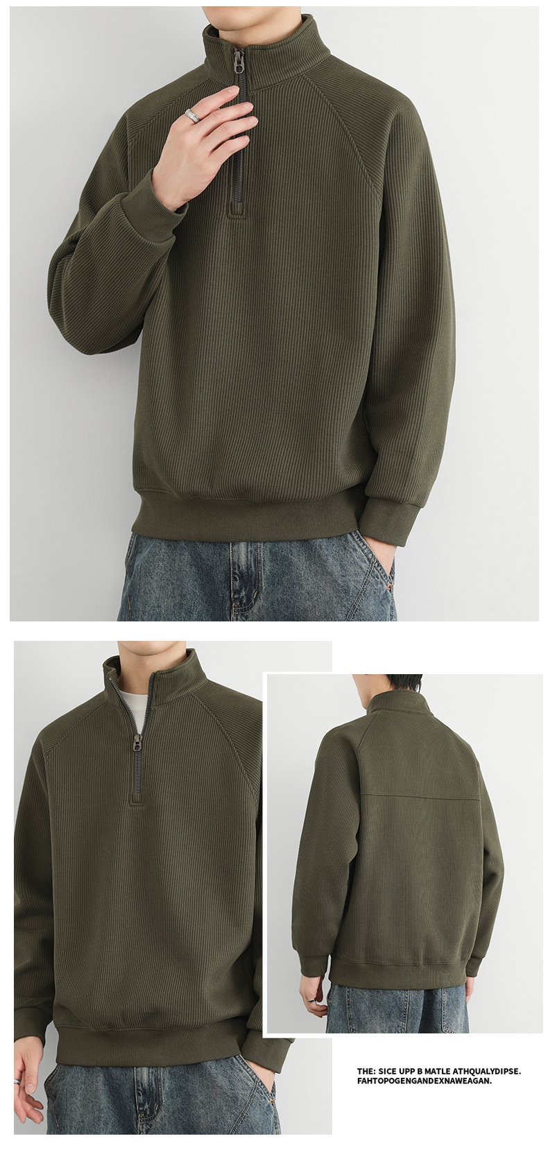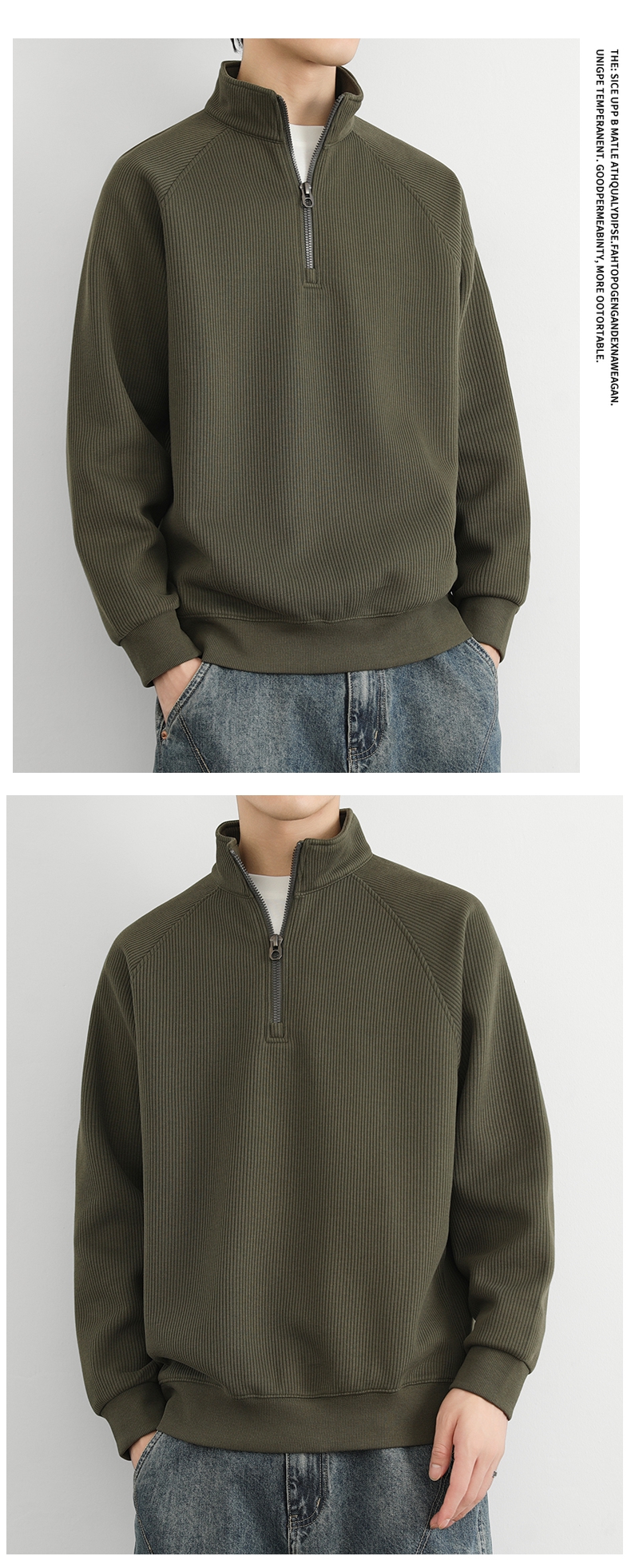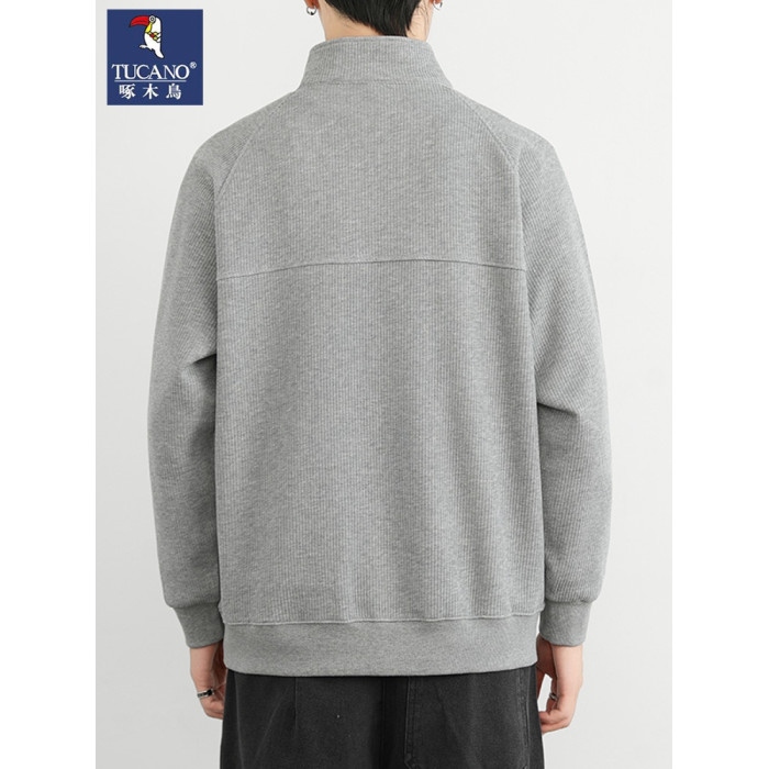 啄木鳥半拉鍊立領加絨衛衣男款春秋季美式針織衫男士純色百搭休閒