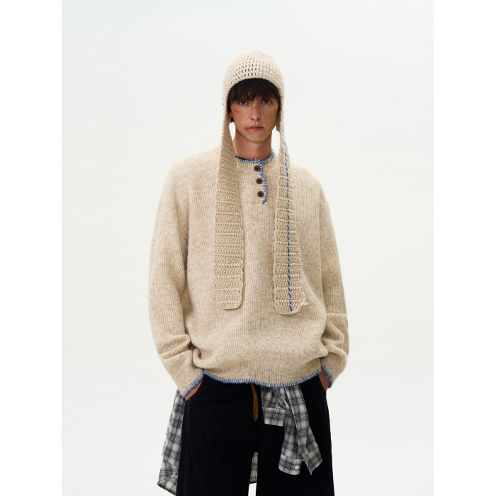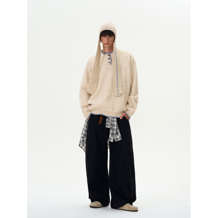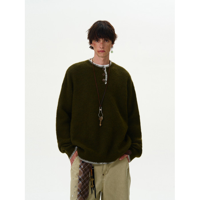 MADWITCH新款復古氛圍感針織衫男女美式小衆設計感亨利領慵懶毛衣