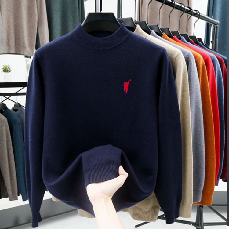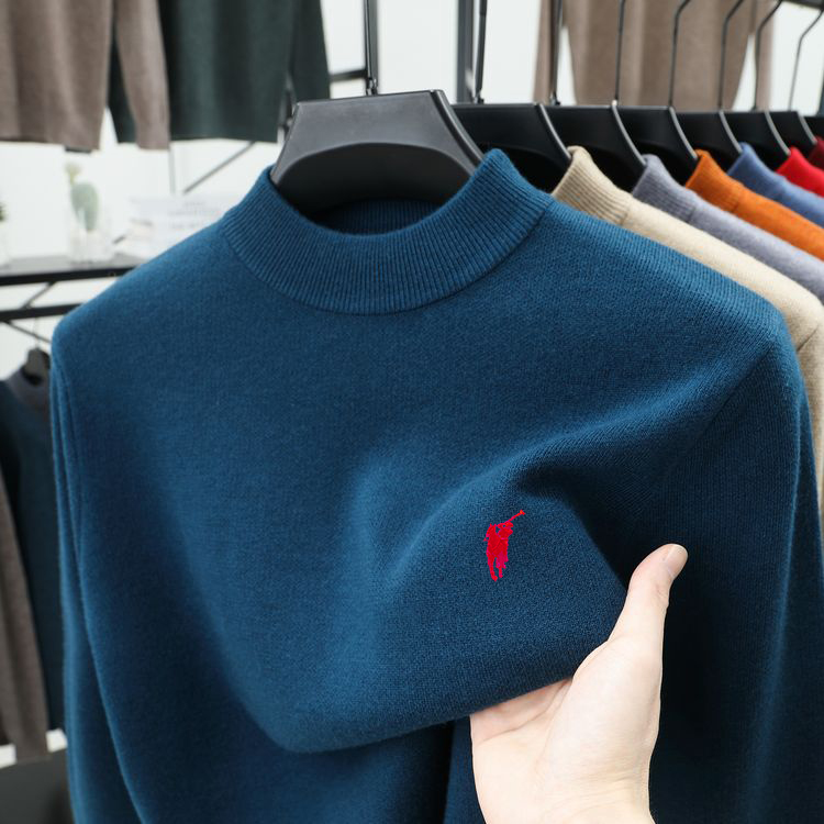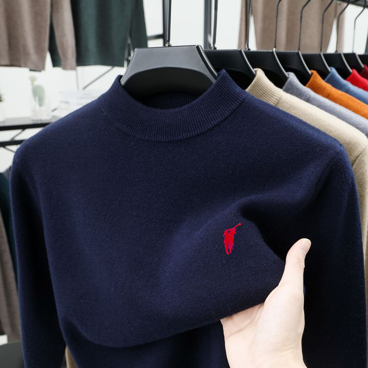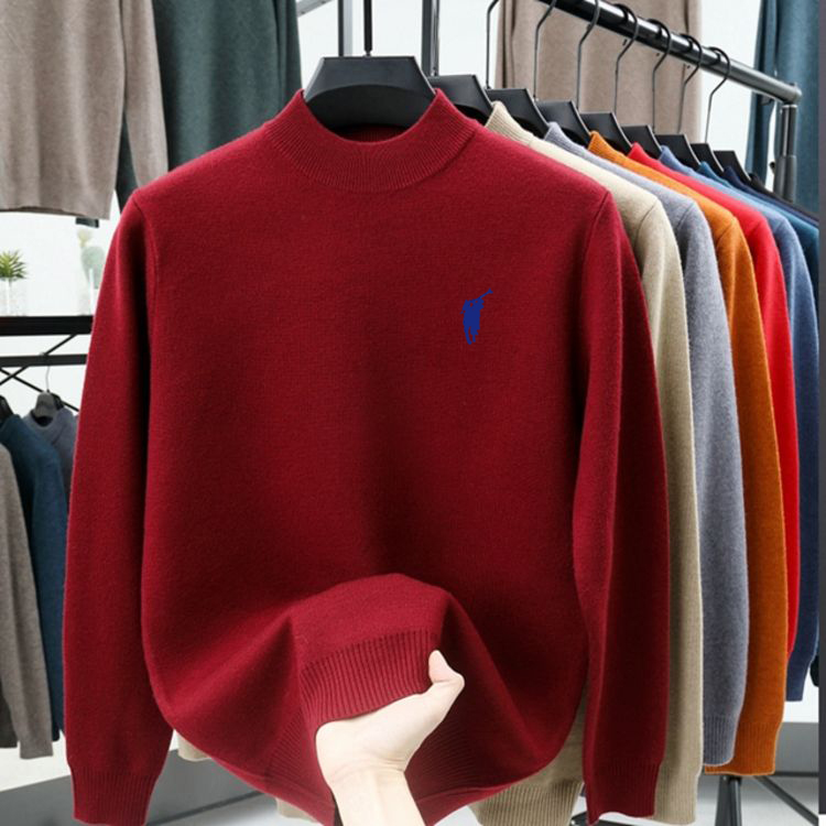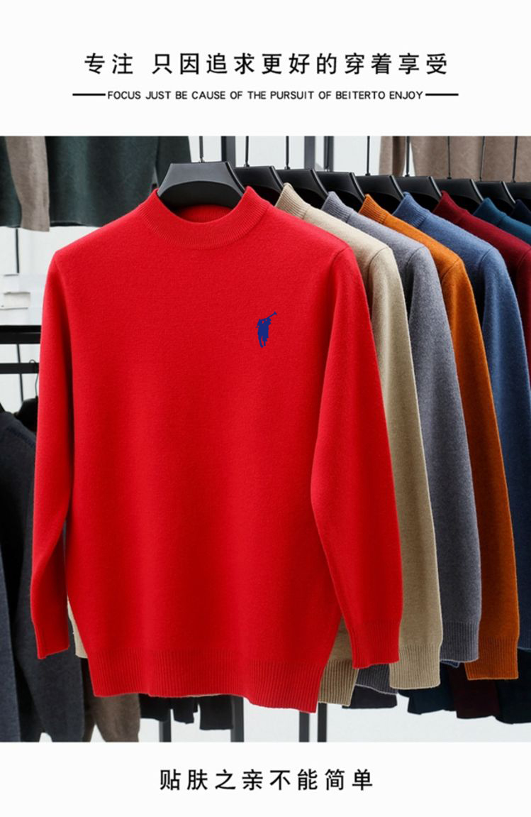 保羅秋冬季新款男士羊毛衫半高領加厚長袖針織衫羊絨套頭打底毛衣