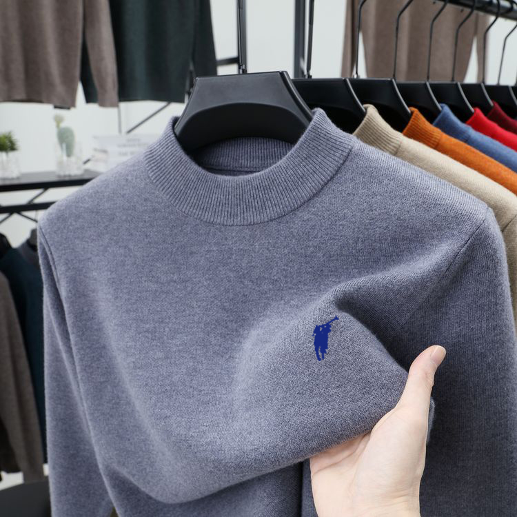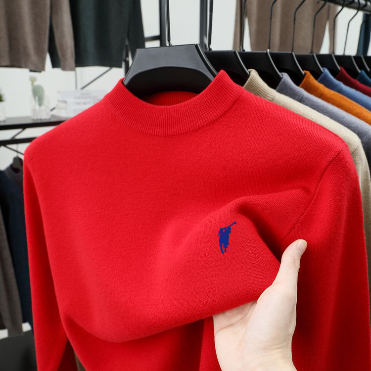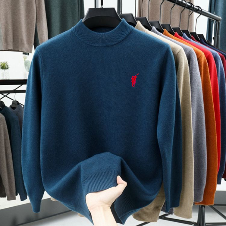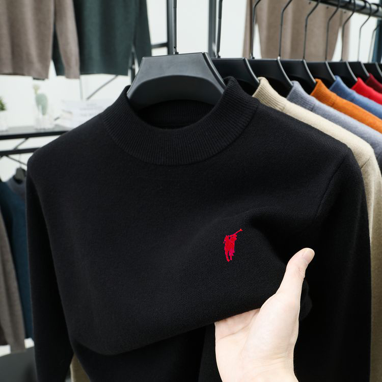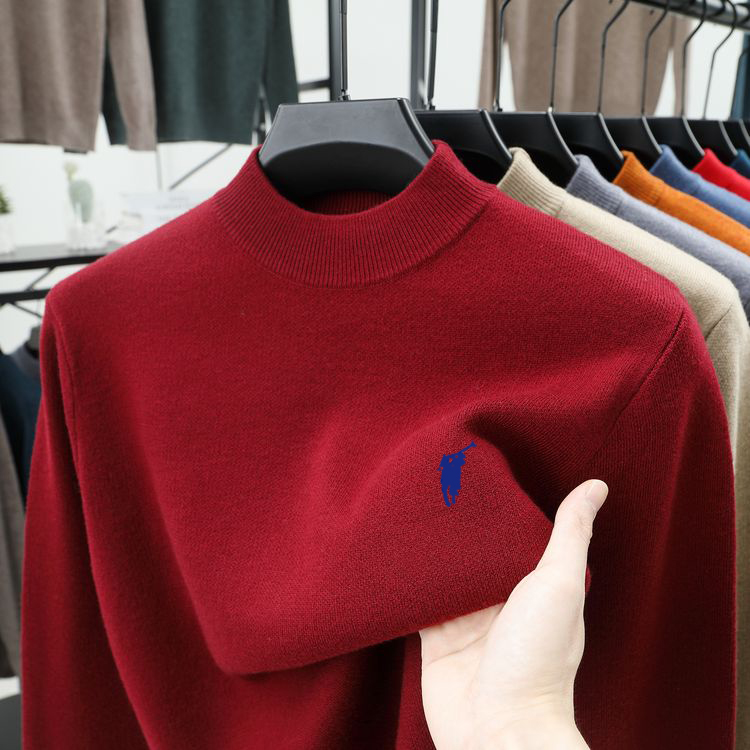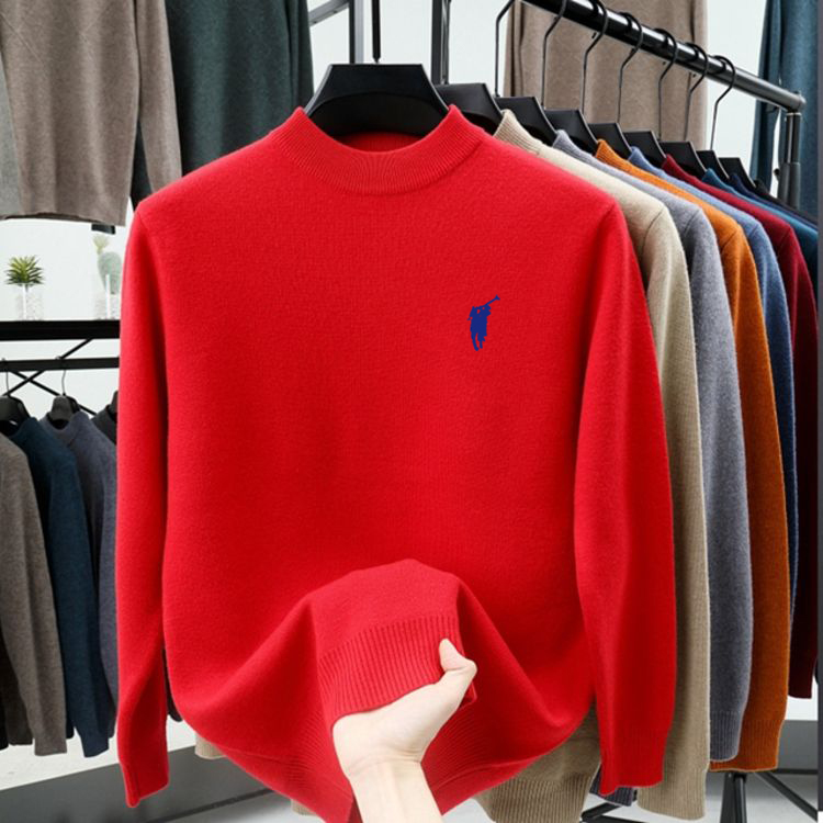 保羅秋冬季新款男士羊毛衫半高領加厚長袖針織衫羊絨套頭打底毛衣