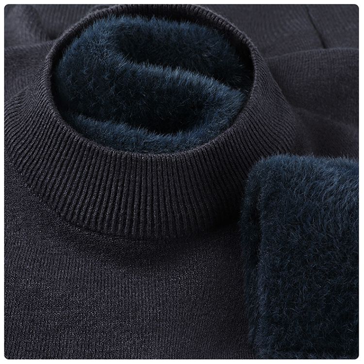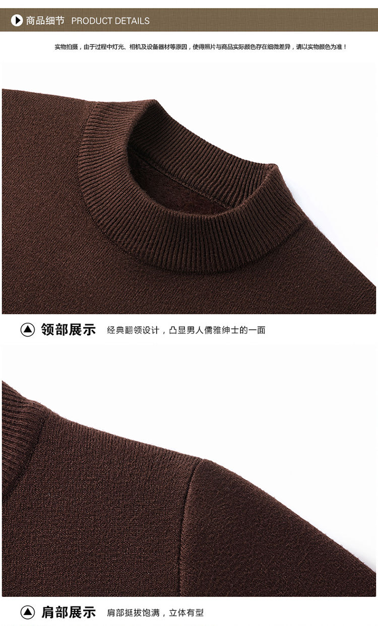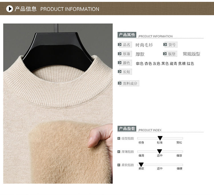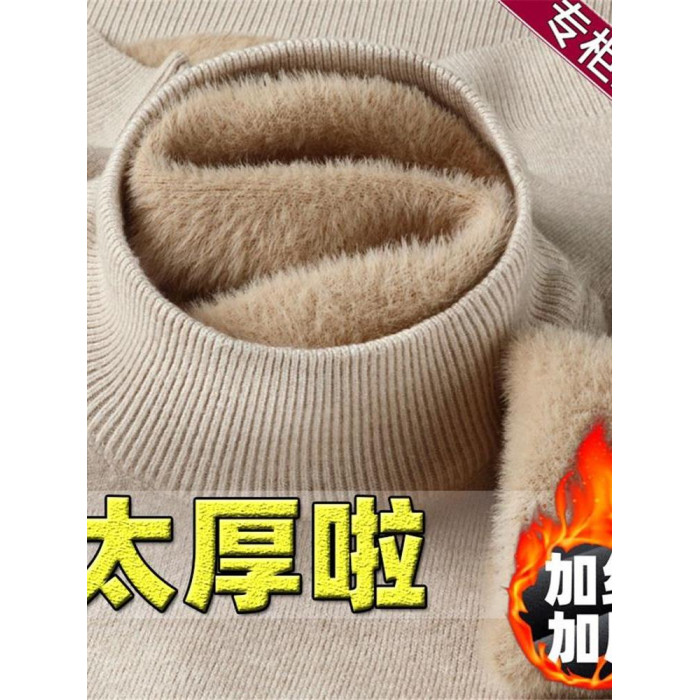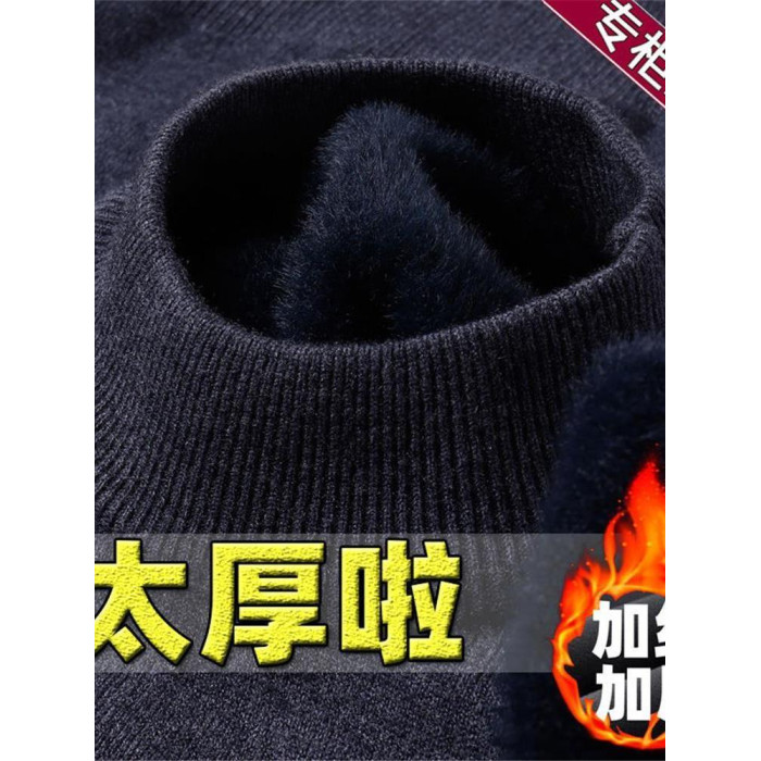 男士男款冬季一體絨保暖半高領毛衣男加絨加厚半高領男生毛衣