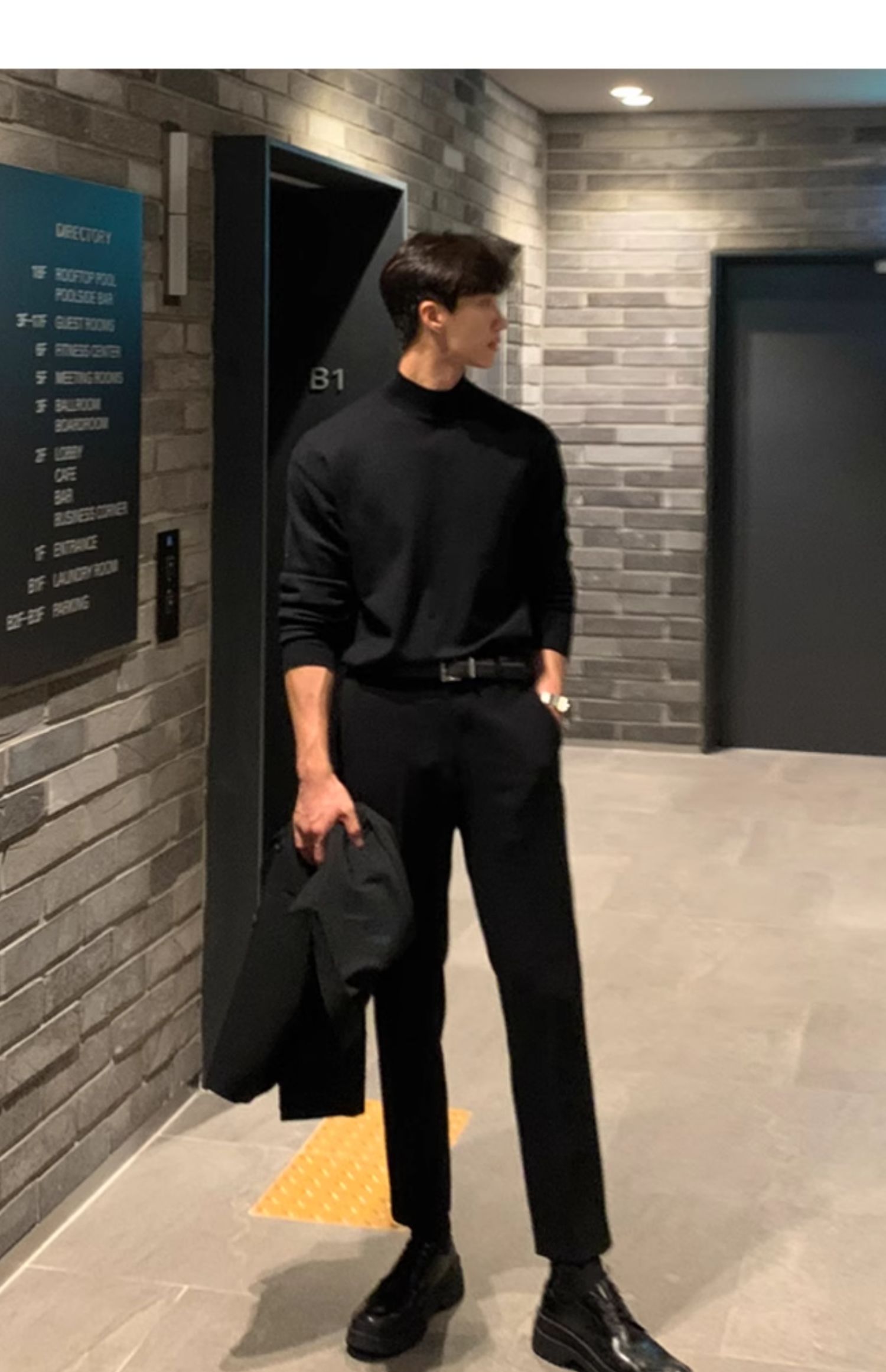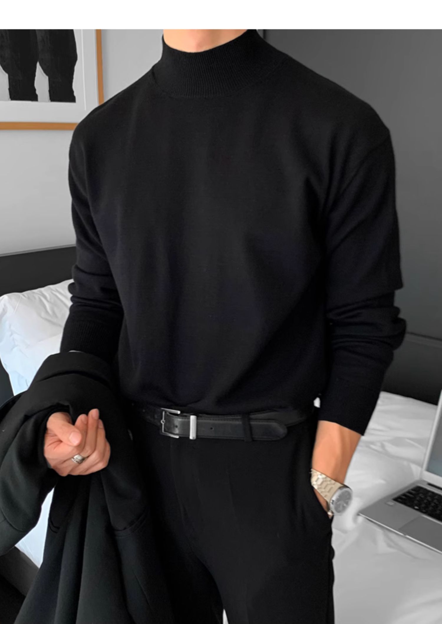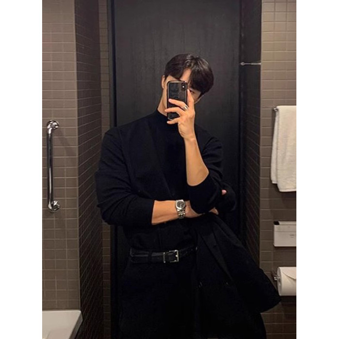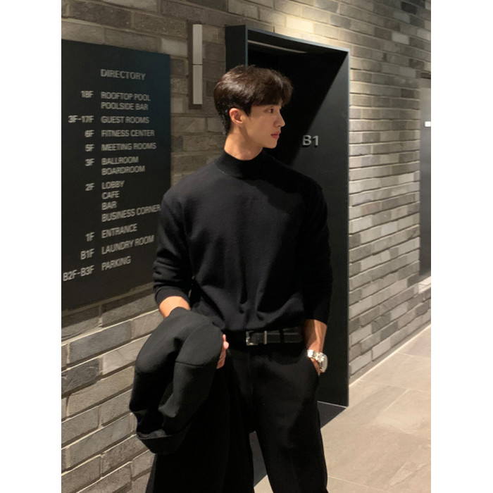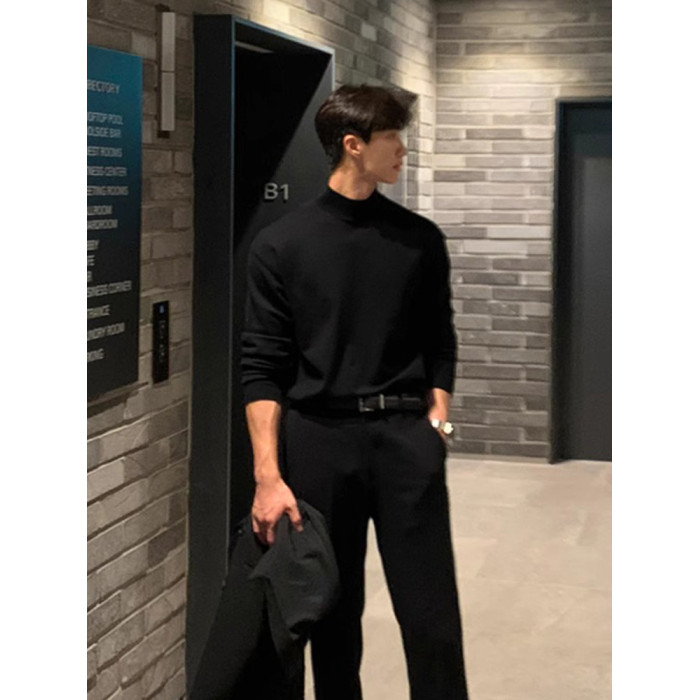 秋冬季新款半高圓領毛衣男黑色韓版潮個性網紅ins港風打底衫長袖
