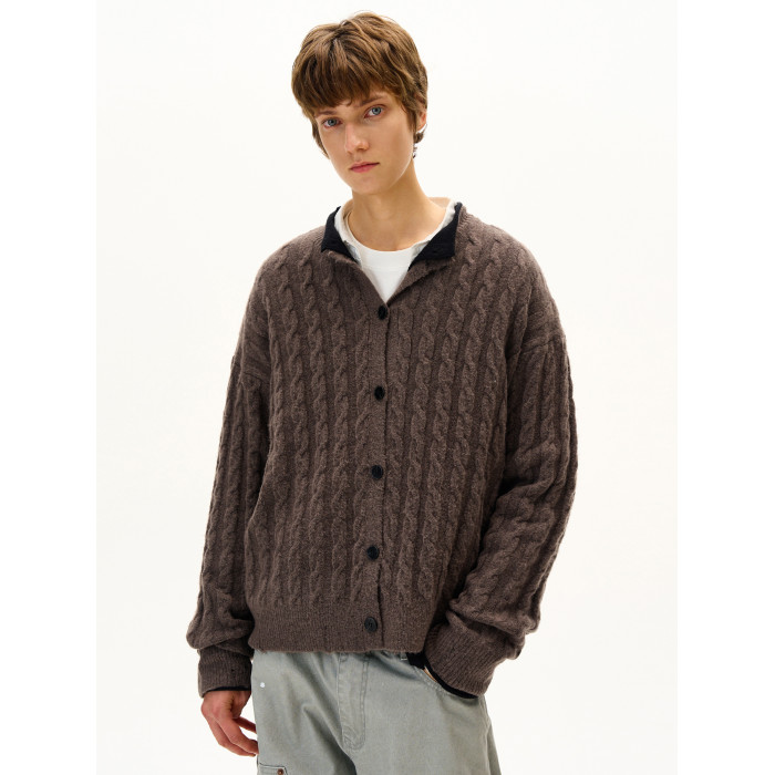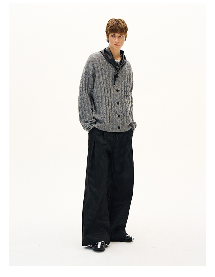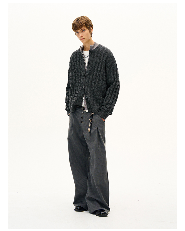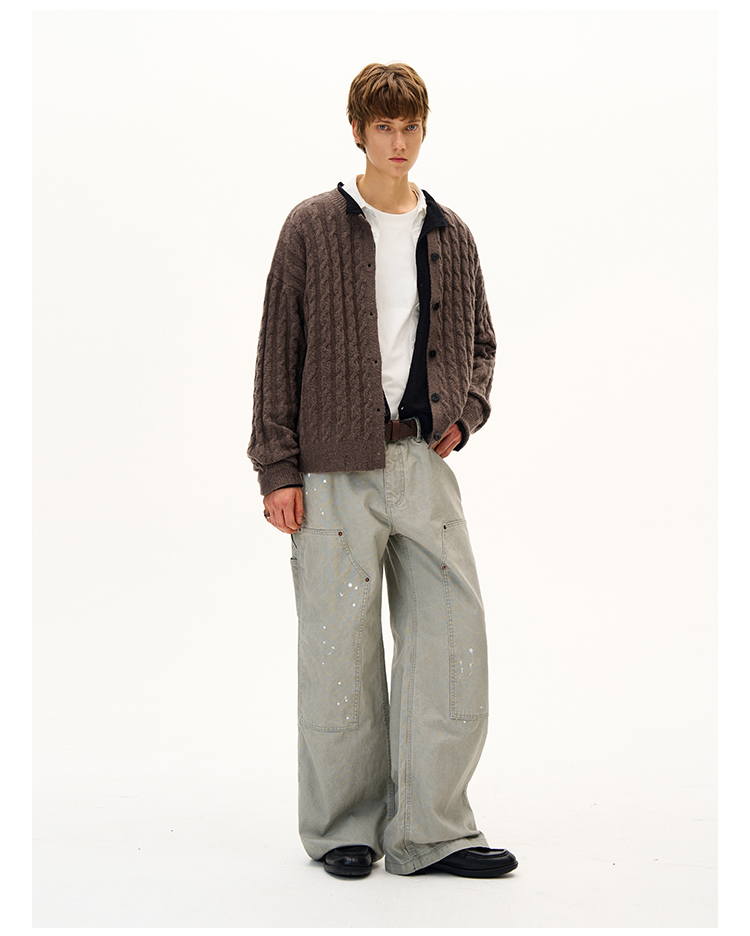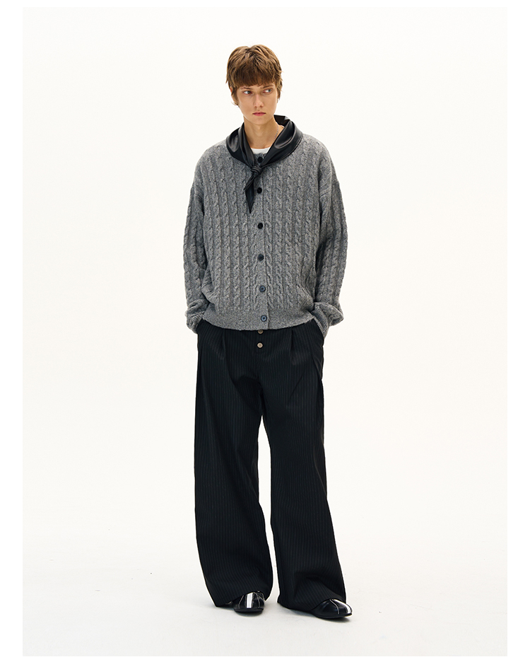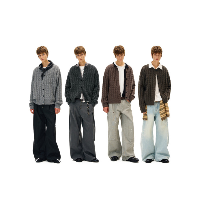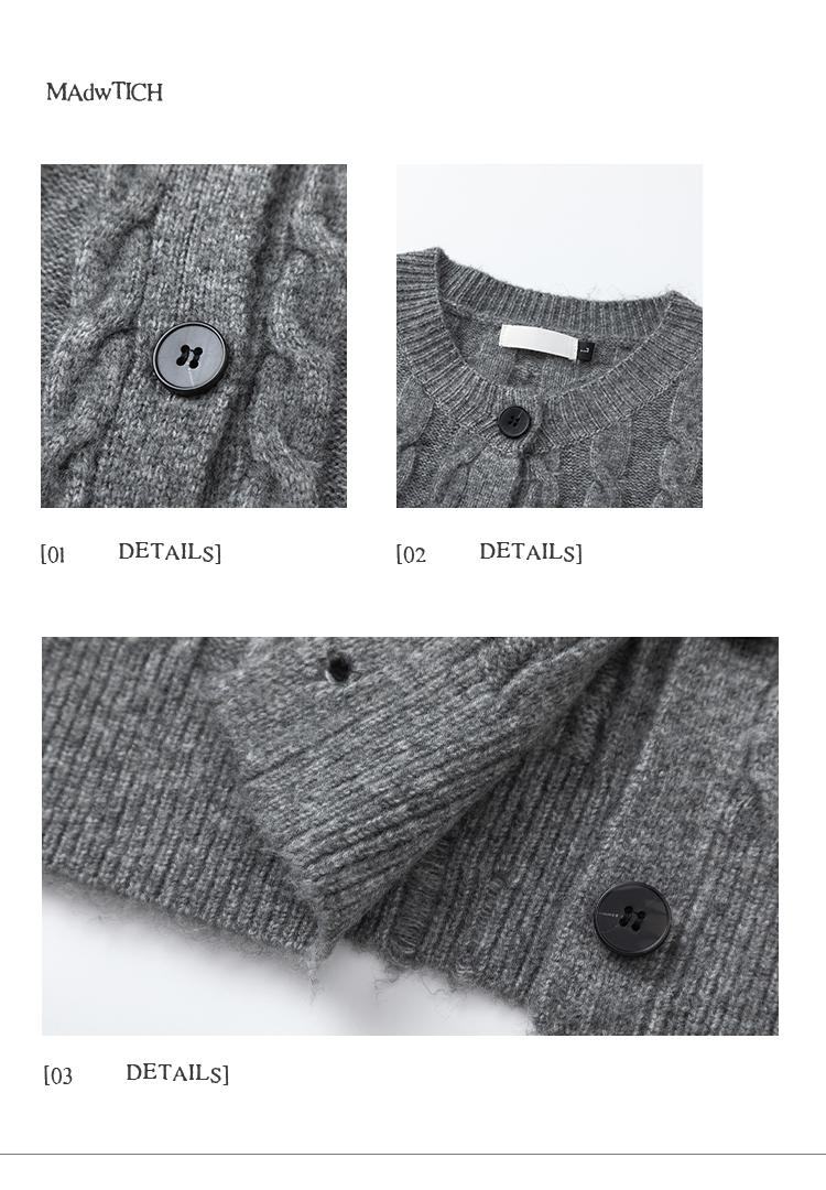MADWITCH美式復古麻花紋羊毛混紡針織開衫男女寬松休閒萊賽爾外套
