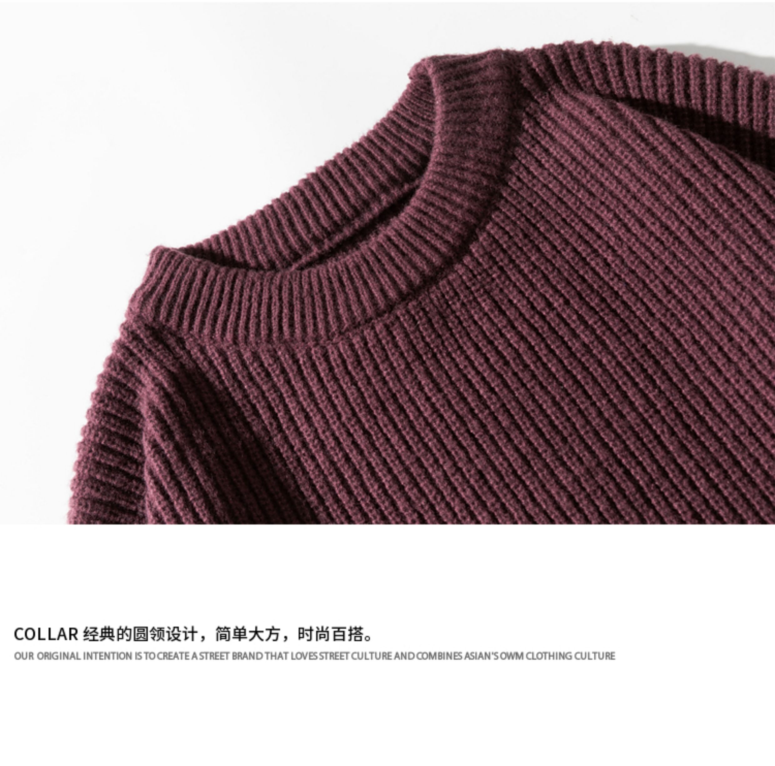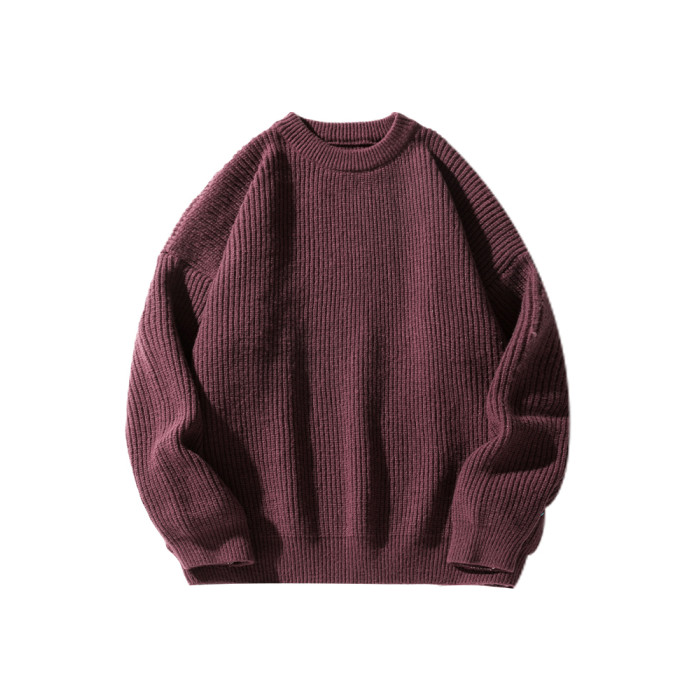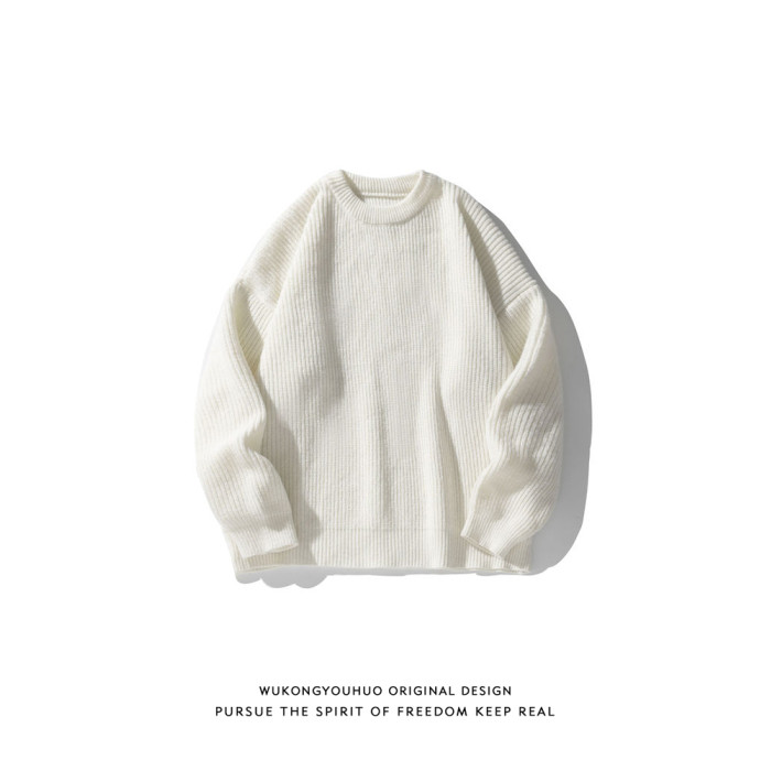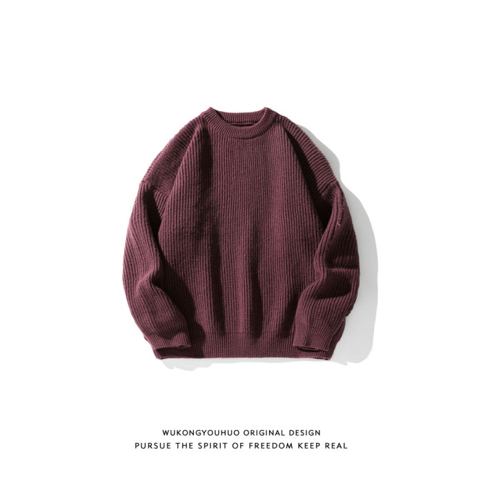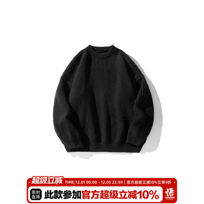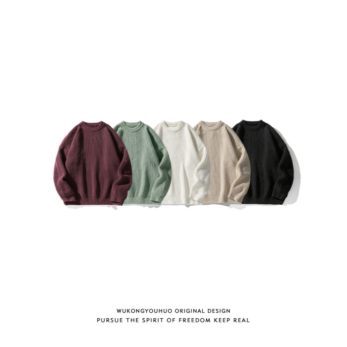 悟空有貨復古日系純色百搭圓領毛衣打底衫男秋季寬松百搭針織上衣