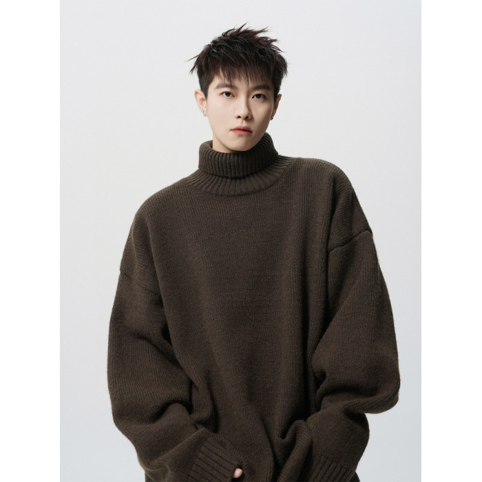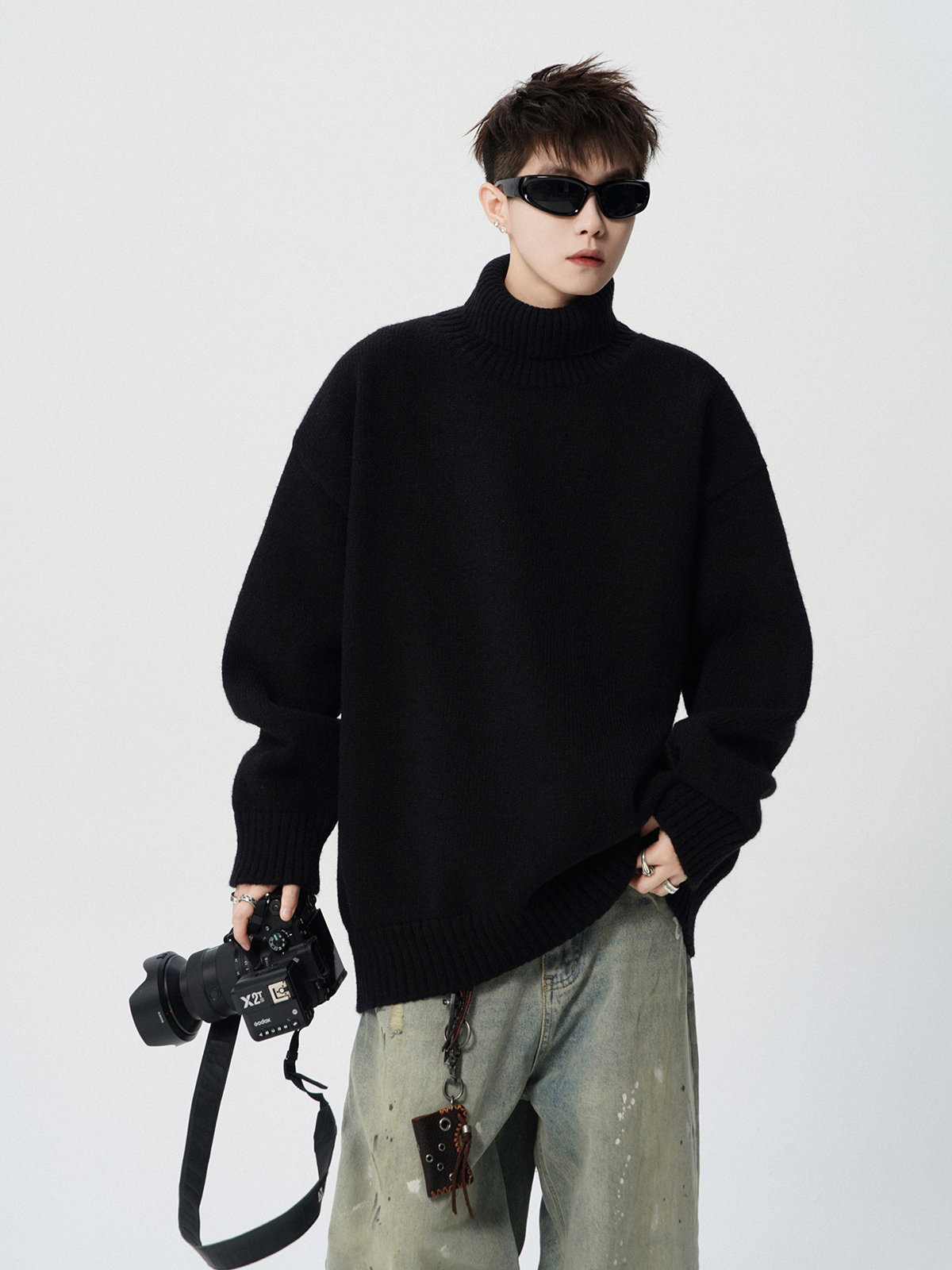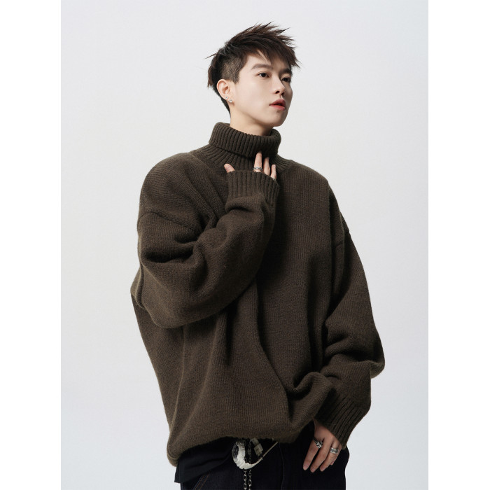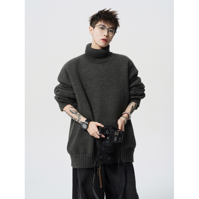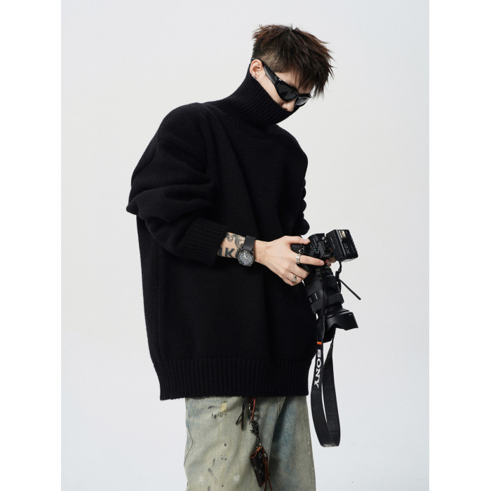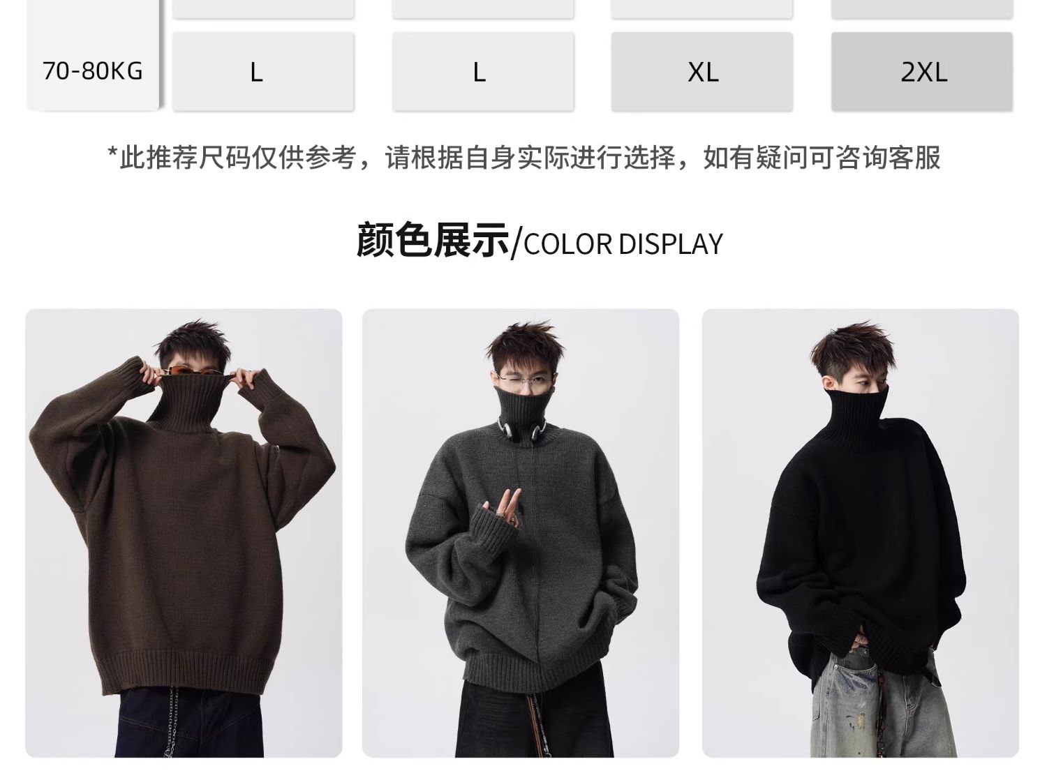 重磅慵懶純色高領毛衣男冬美式復古oversize線衣情侶款百搭針織衫