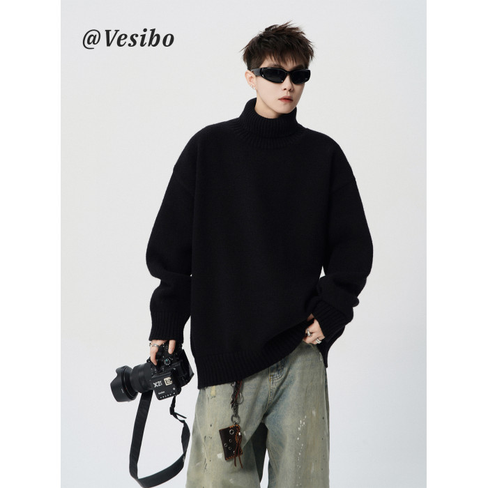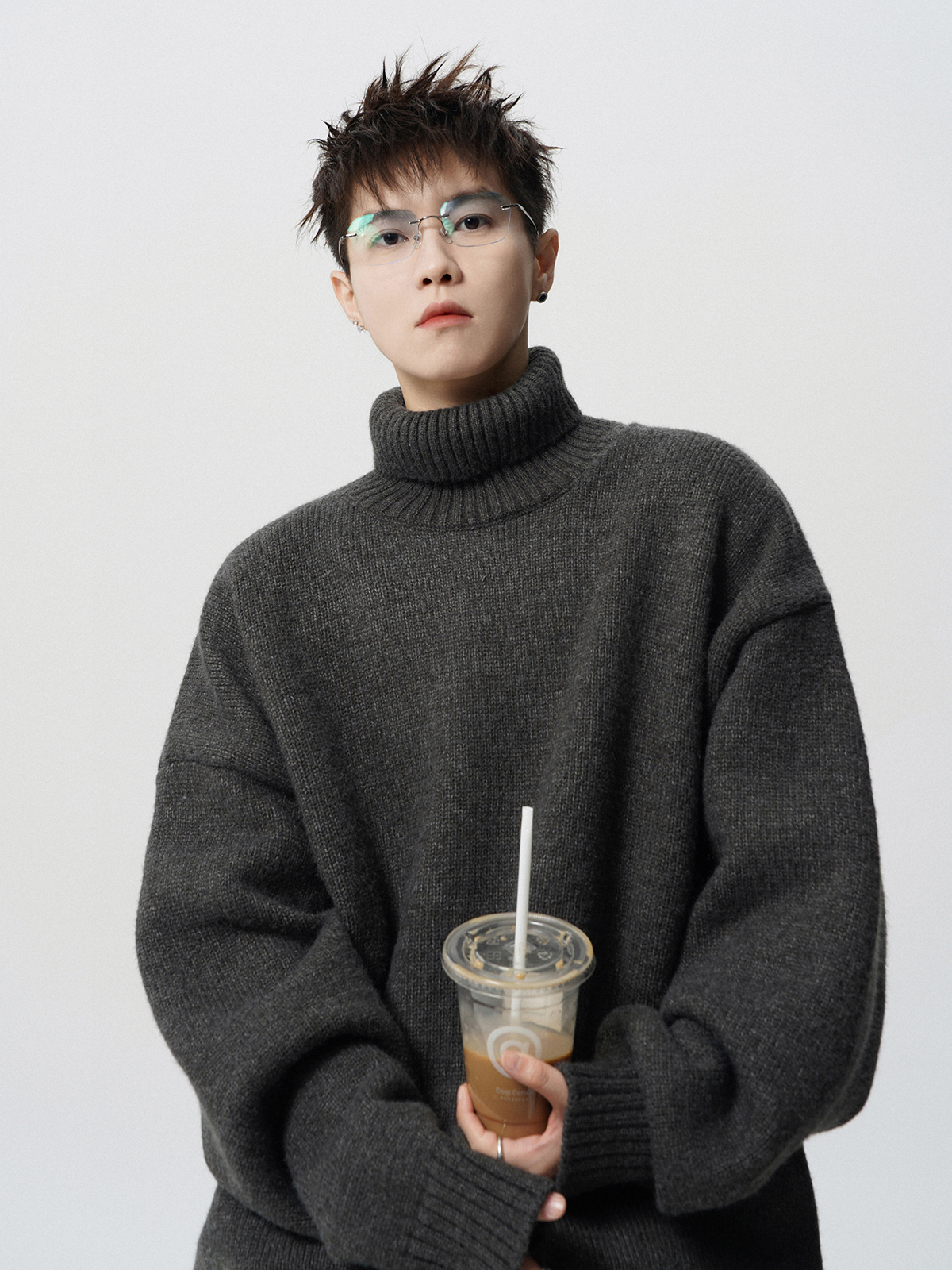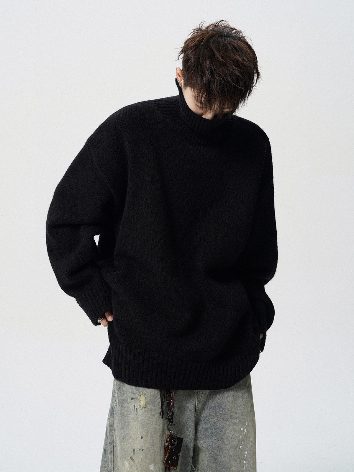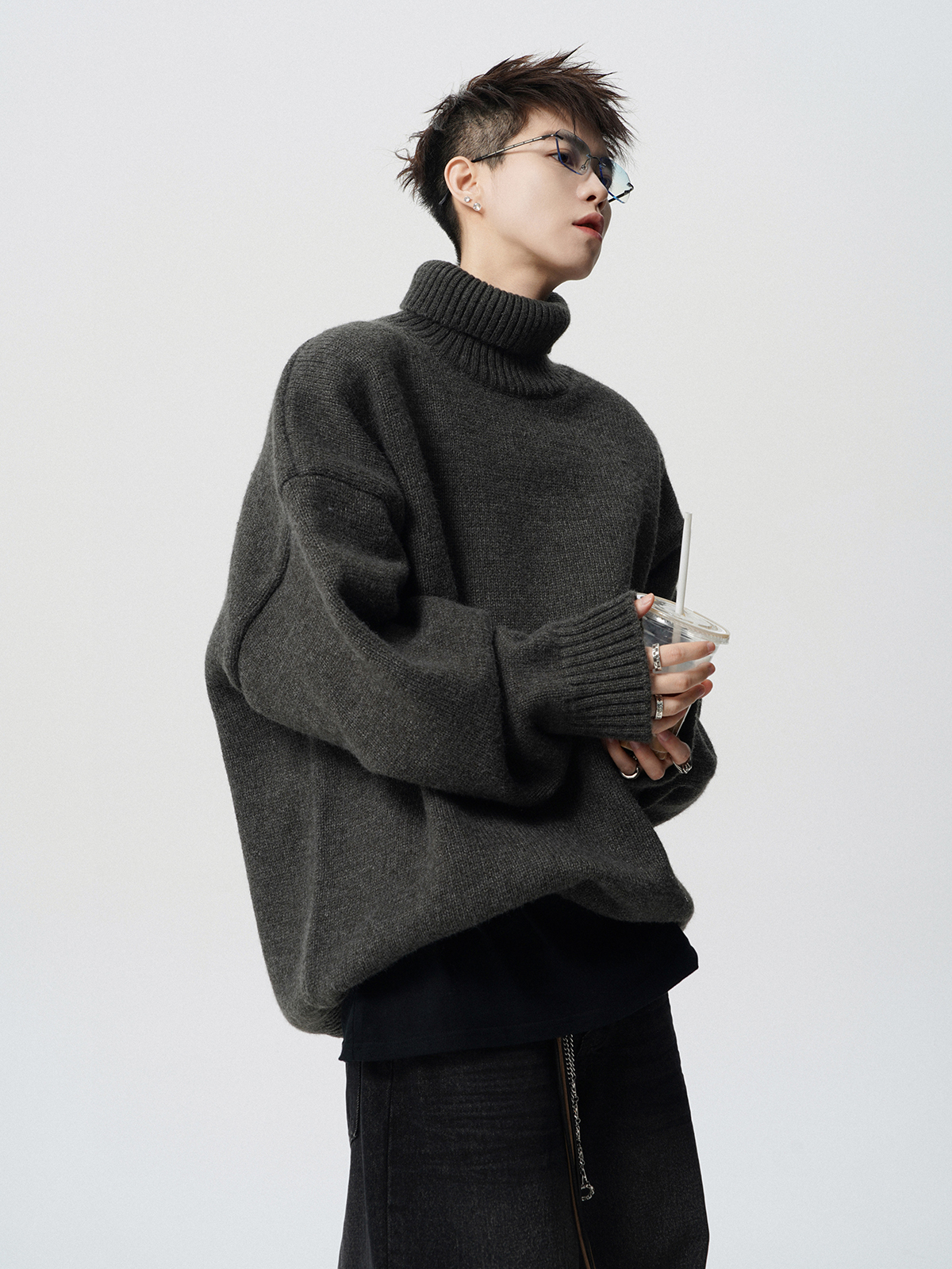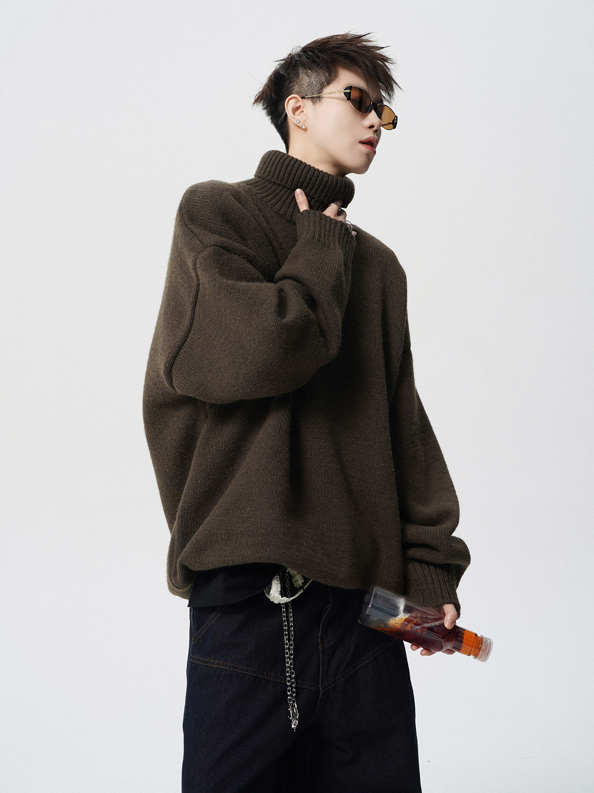 重磅慵懶純色高領毛衣男冬美式復古oversize線衣情侶款百搭針織衫