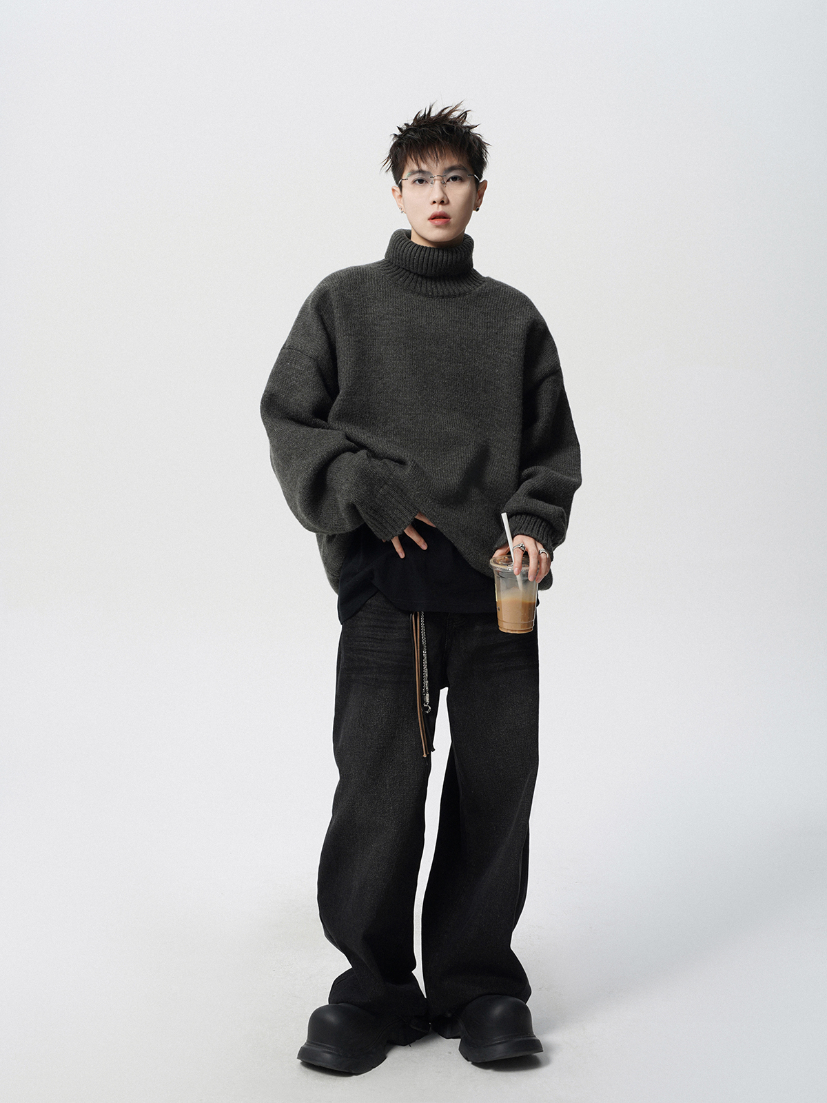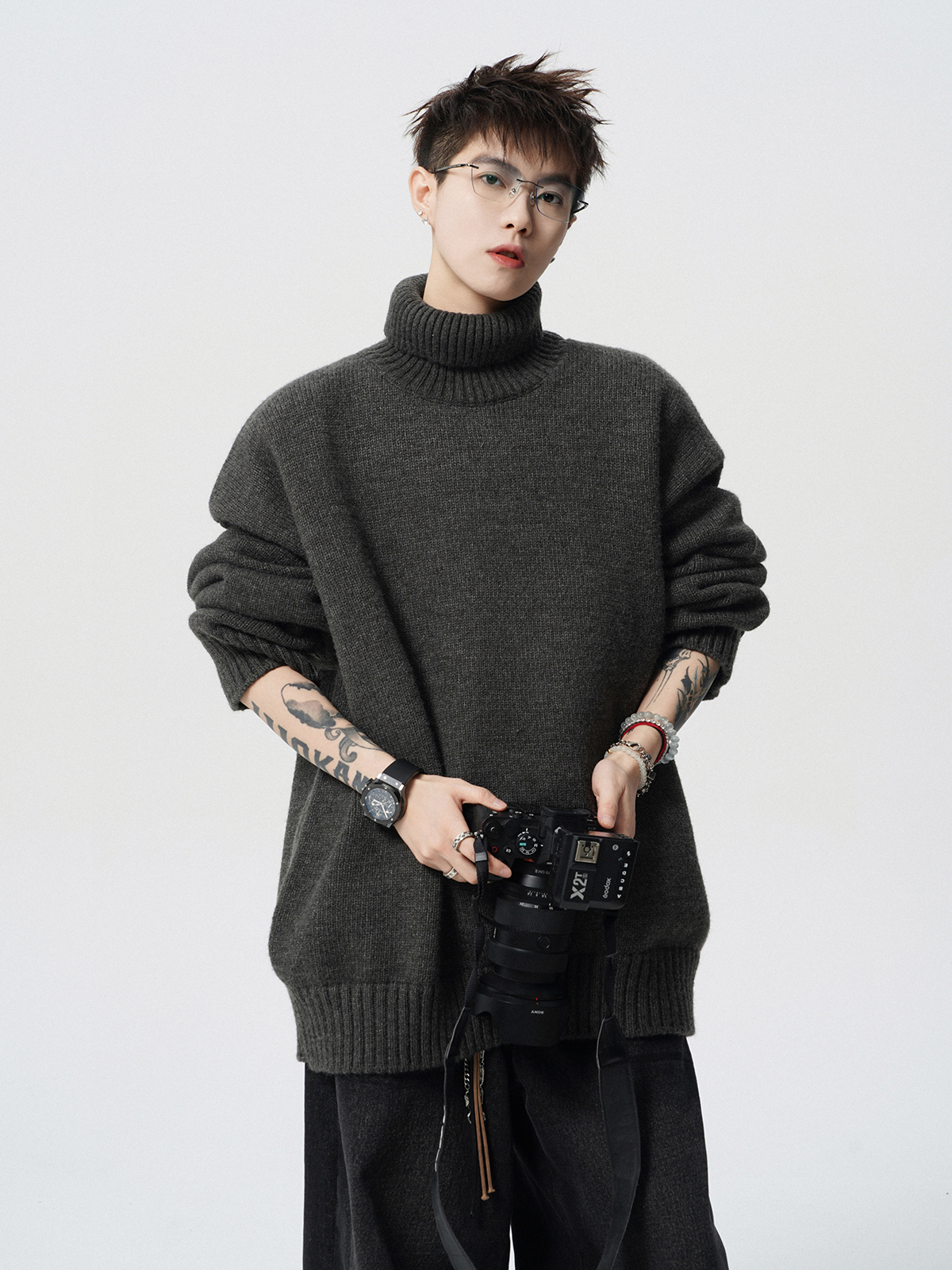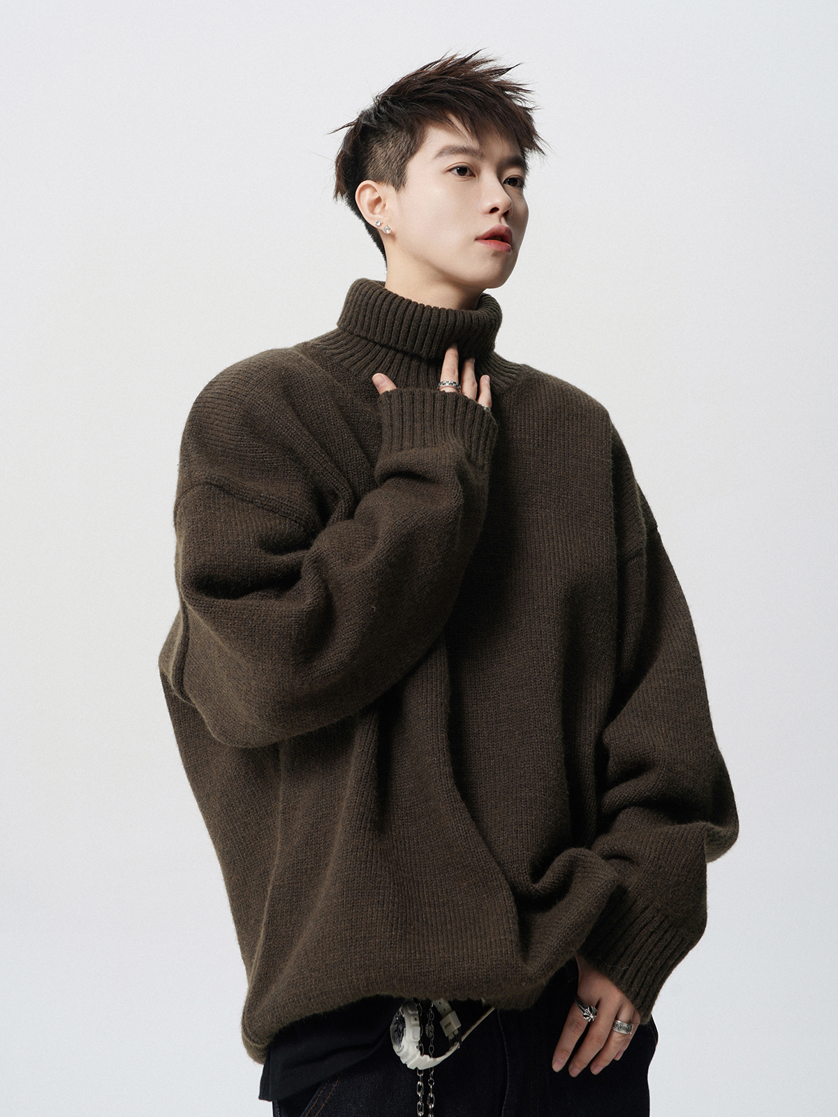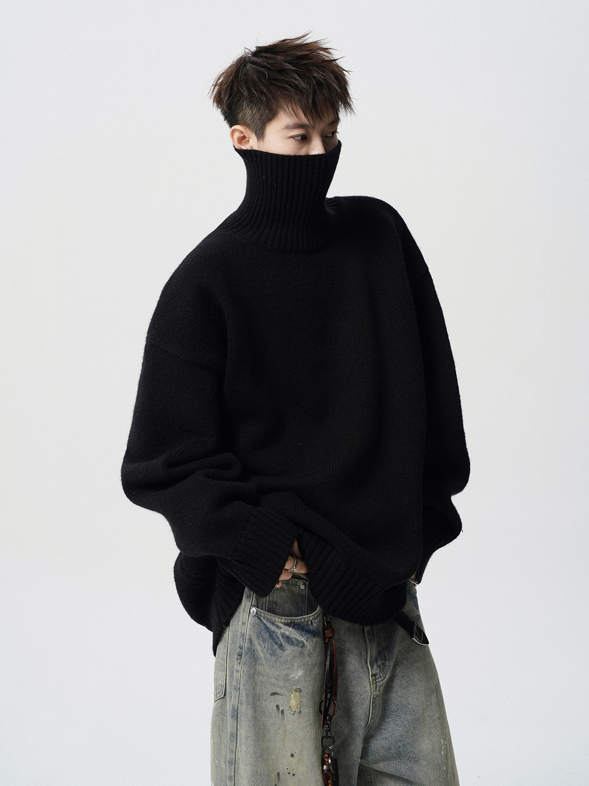 重磅慵懶純色高領毛衣男冬美式復古oversize線衣情侶款百搭針織衫