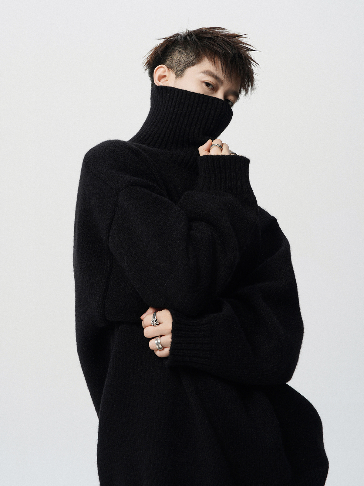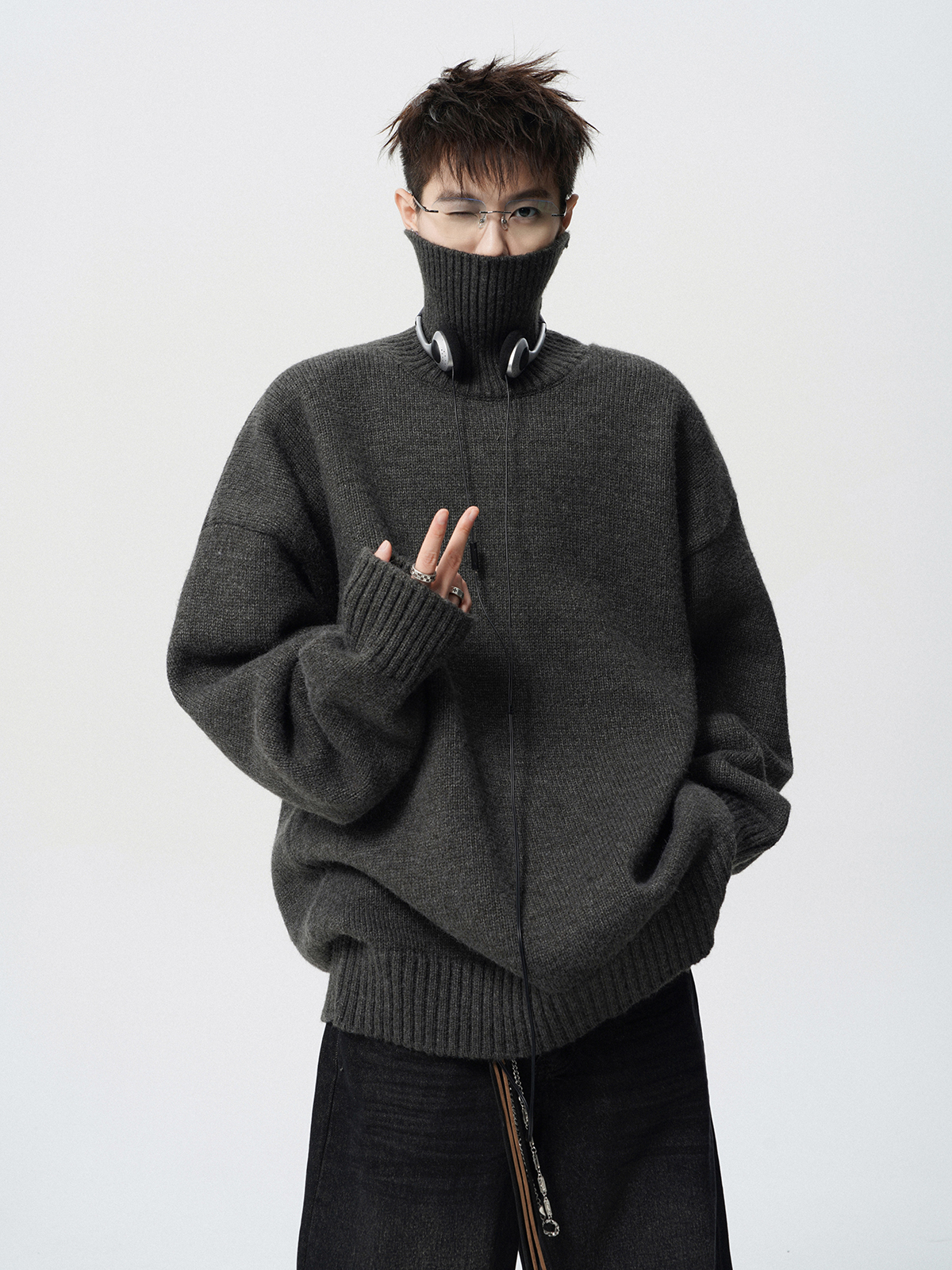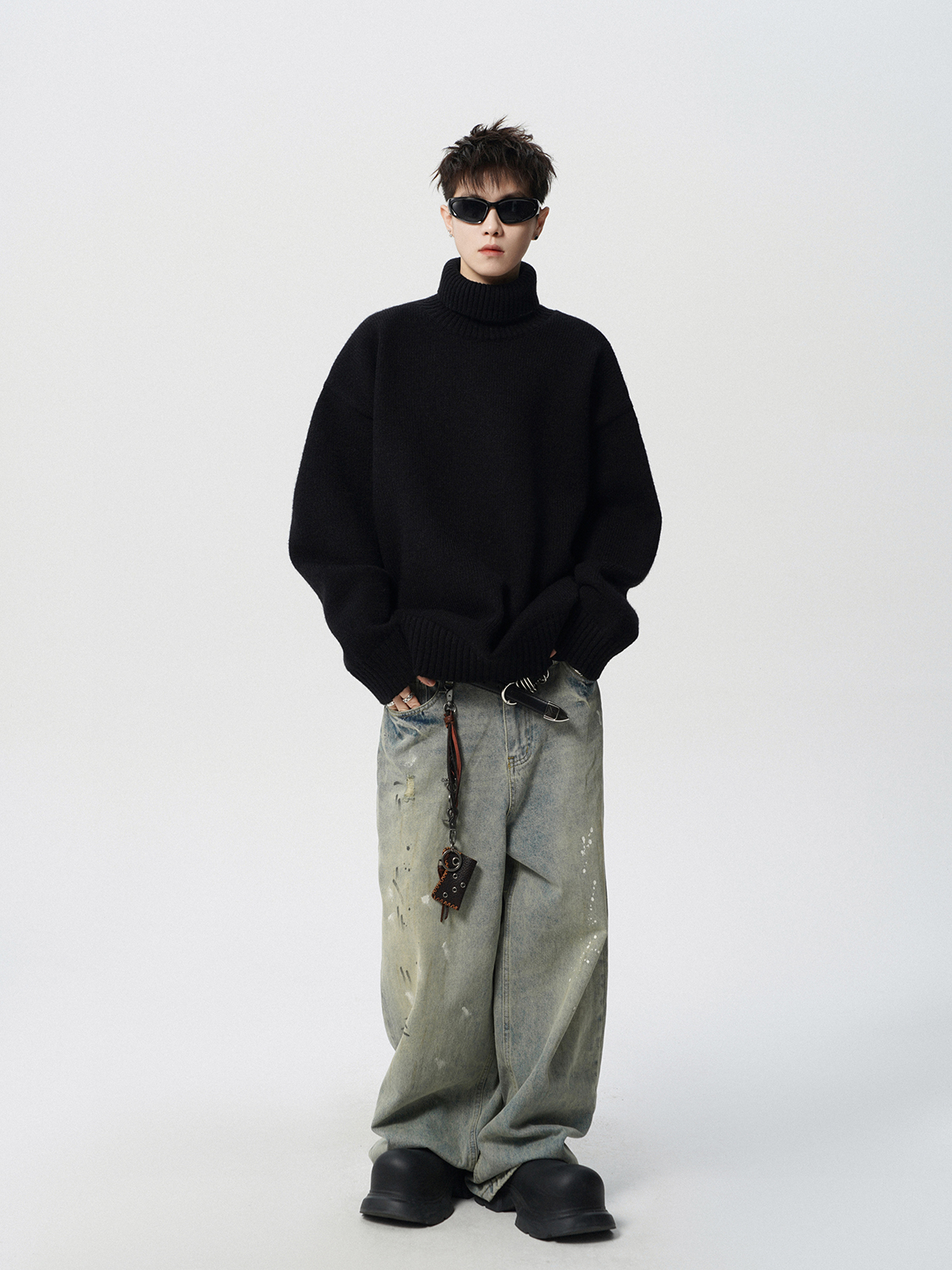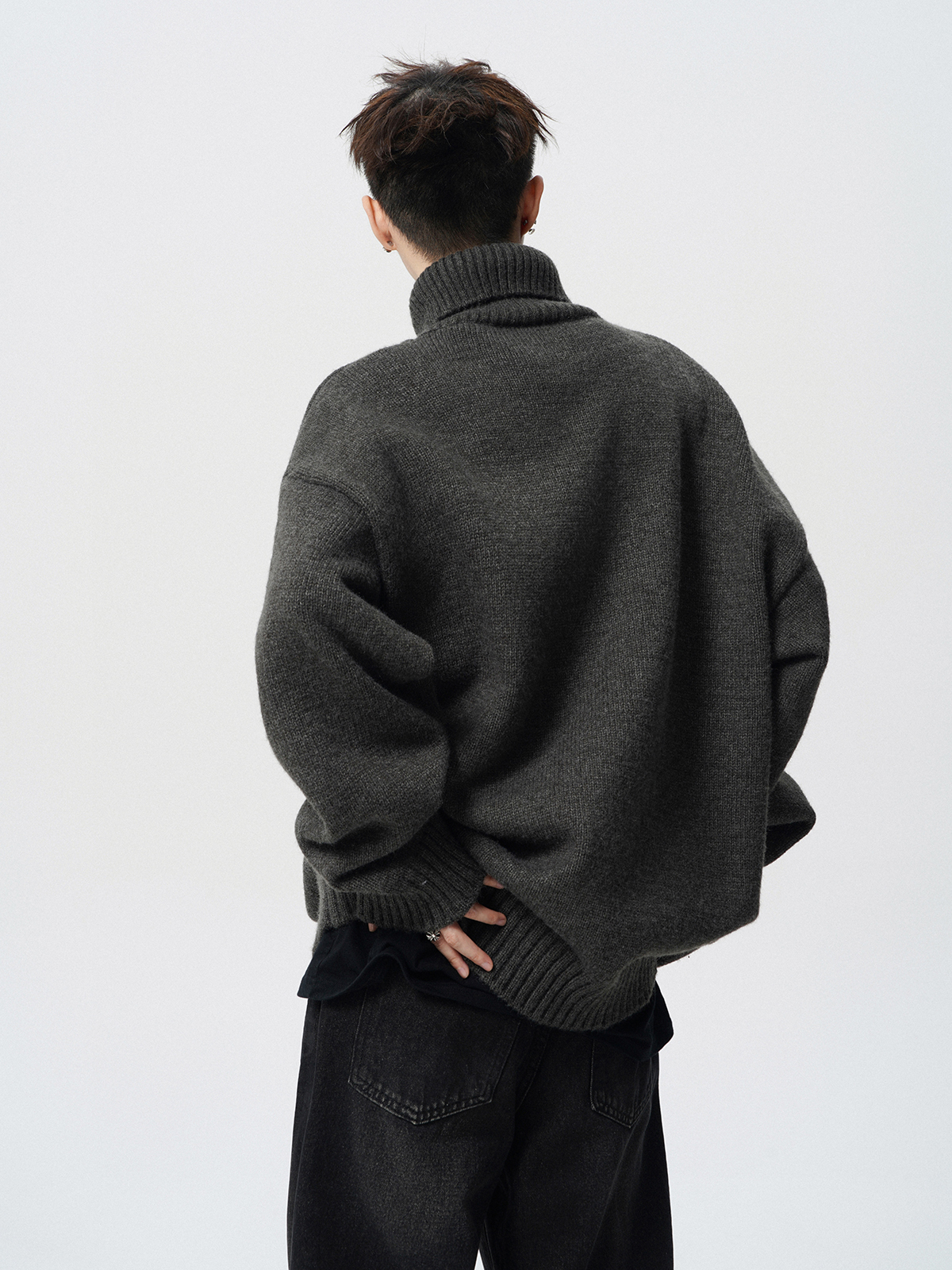 重磅慵懶純色高領毛衣男冬美式復古oversize線衣情侶款百搭針織衫