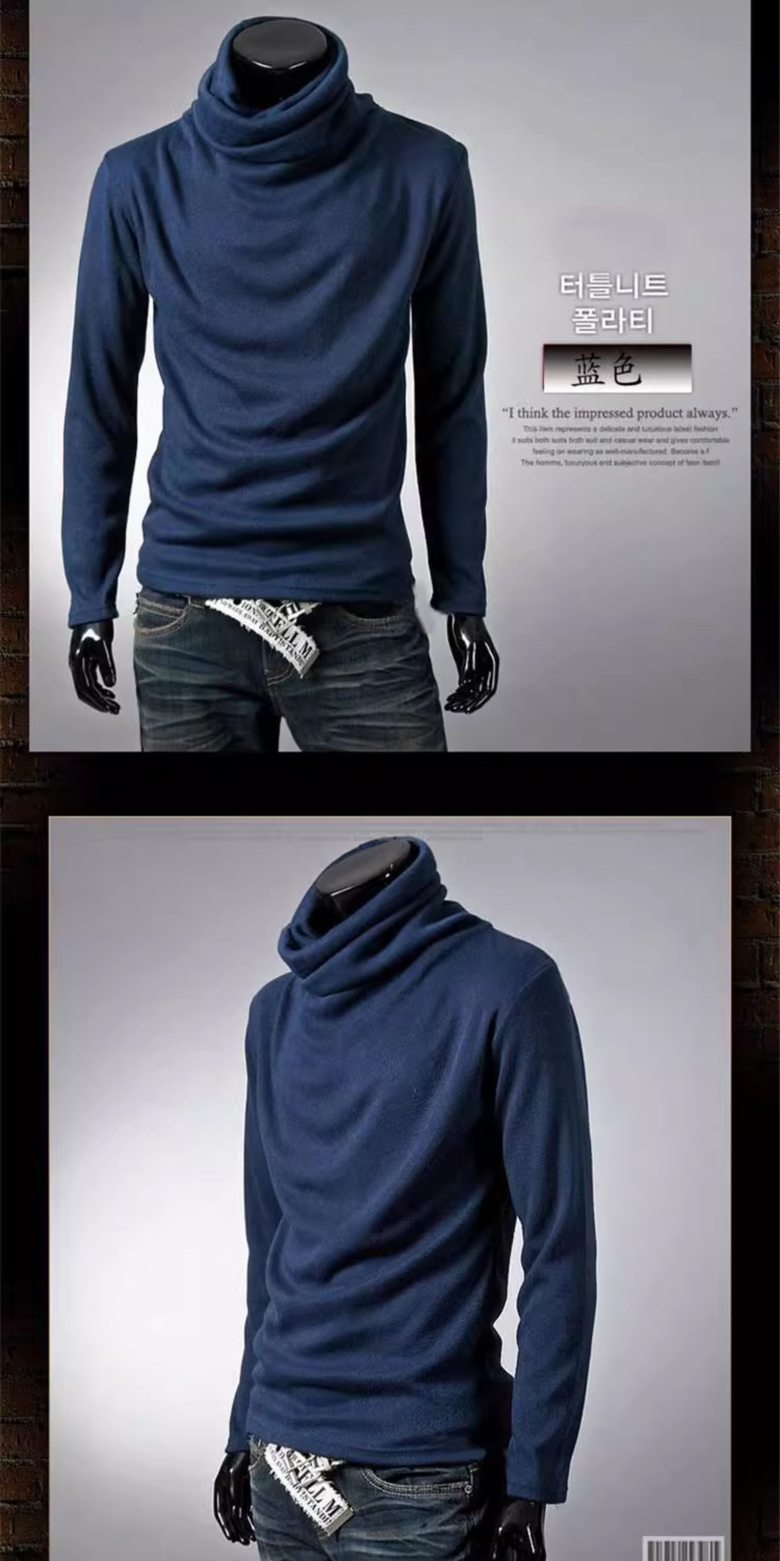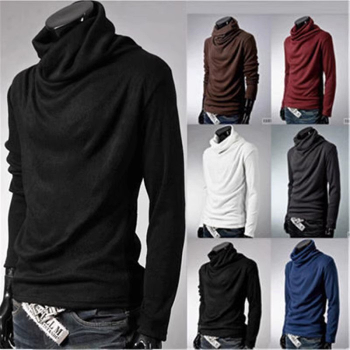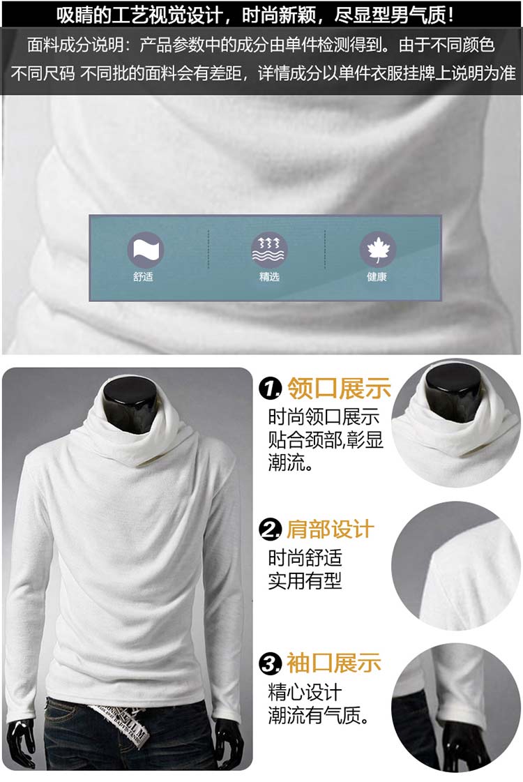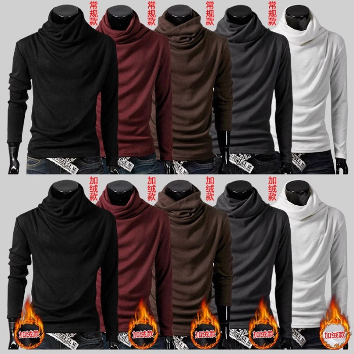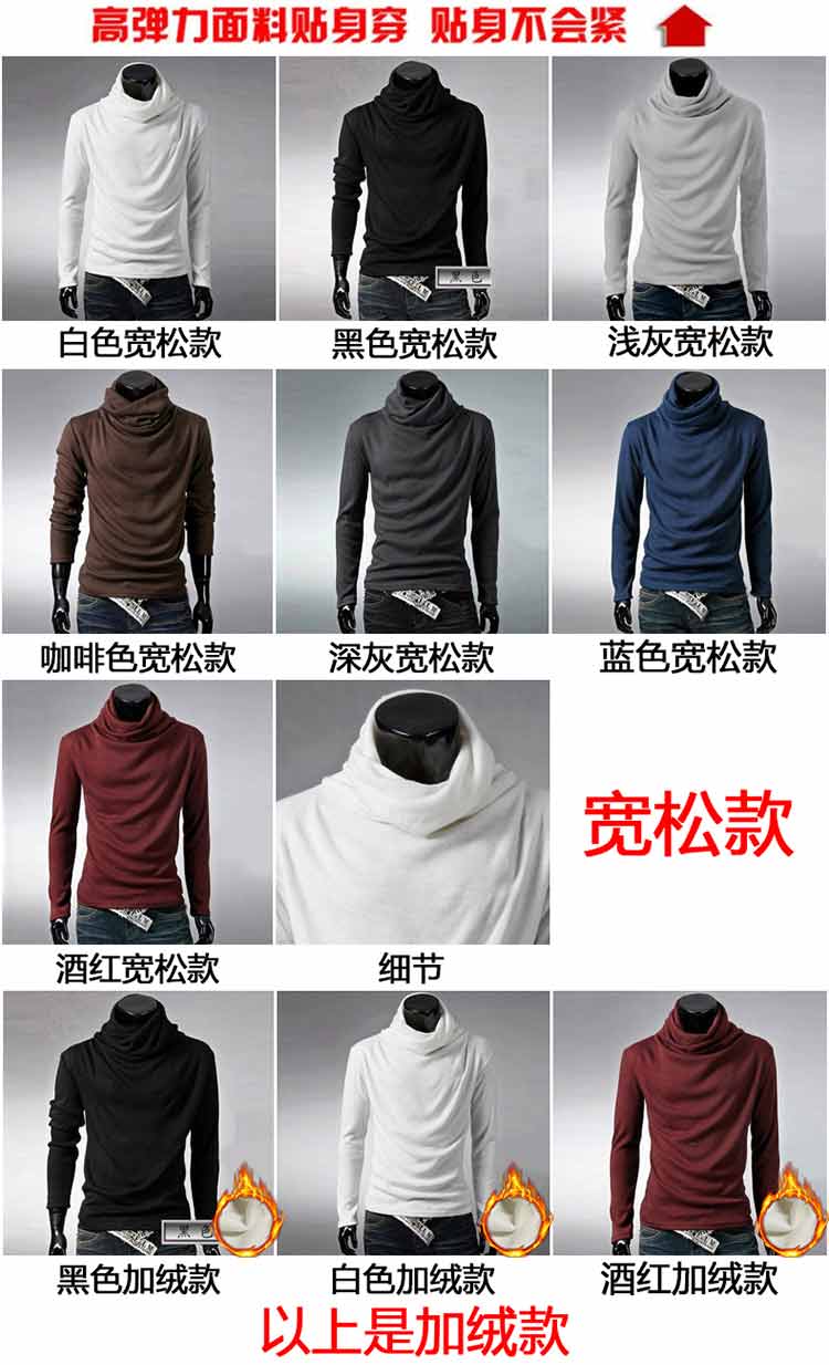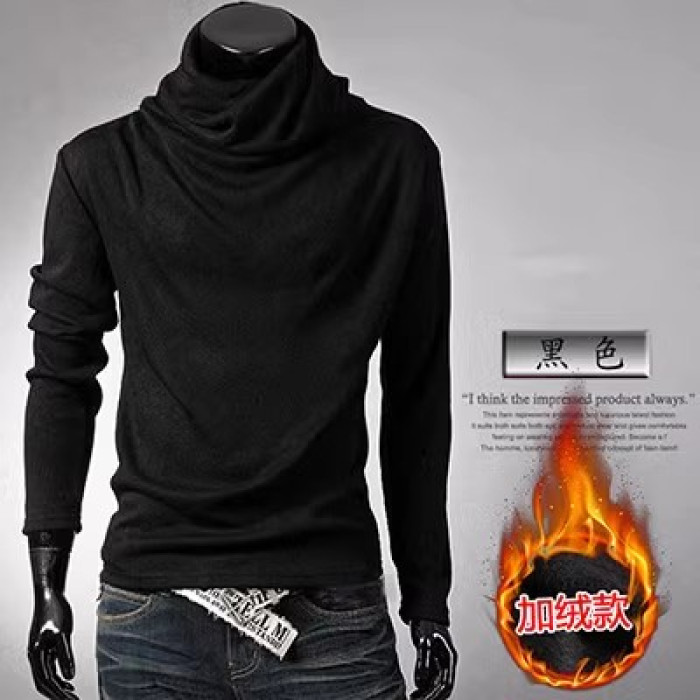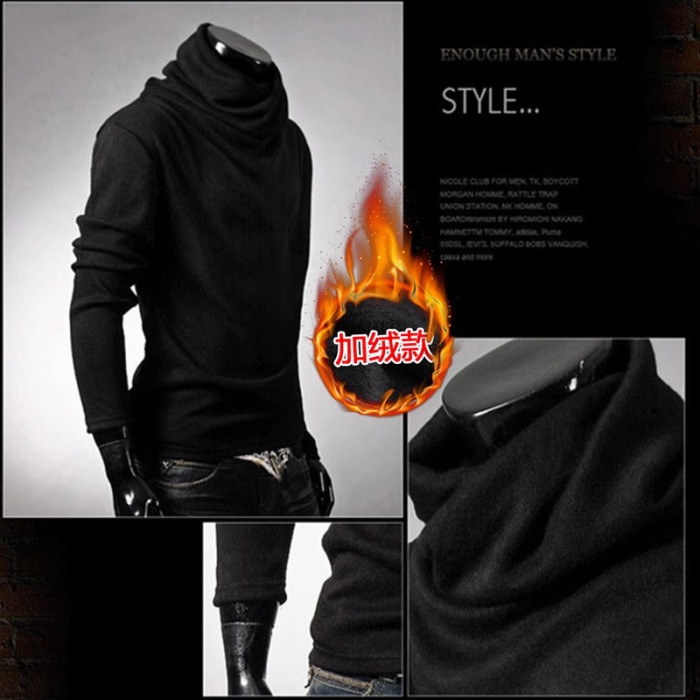 加絨加厚長袖上衣堆堆領打底衫男士高領針織黑色內搭衣服彈力冬季