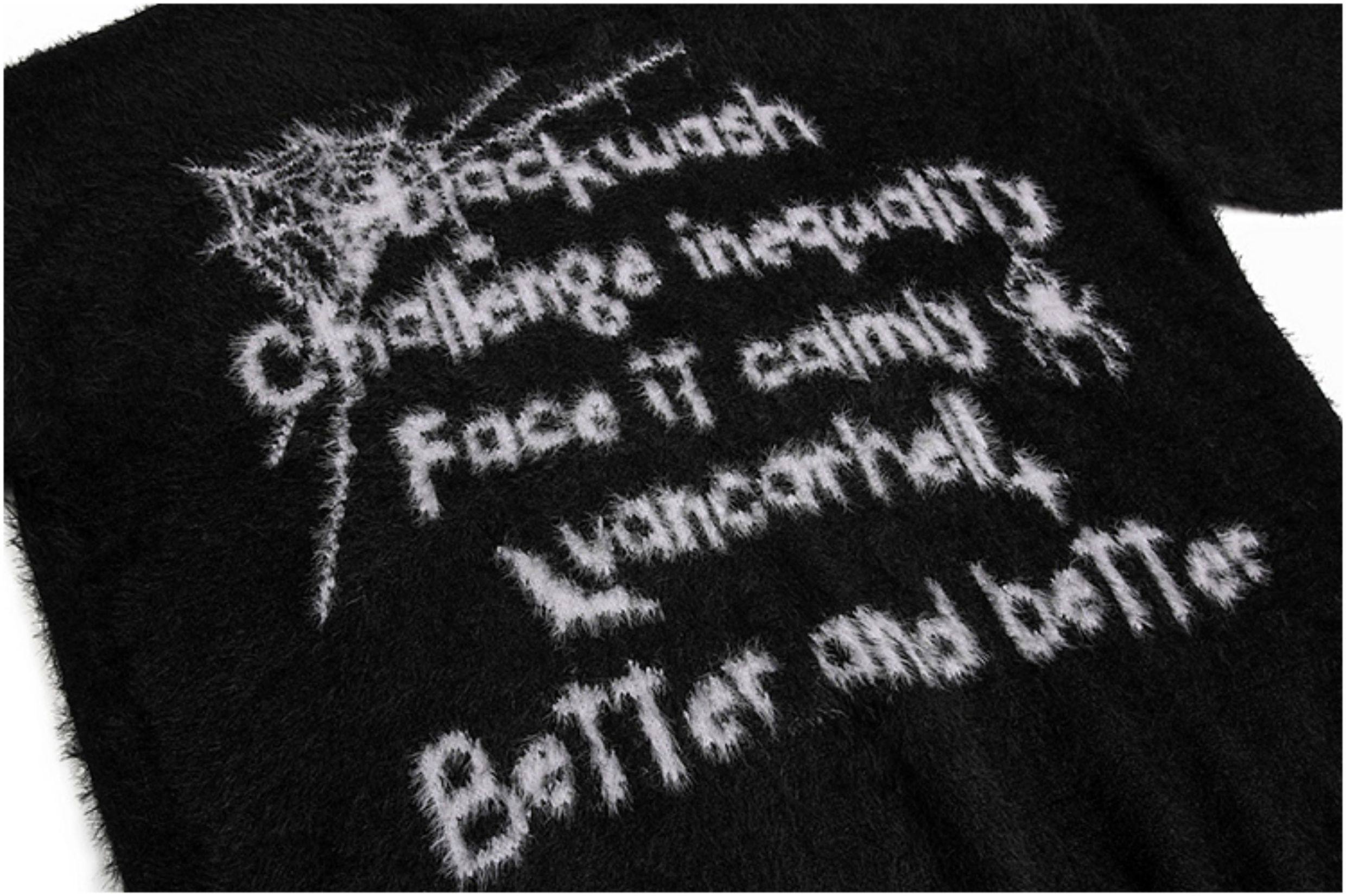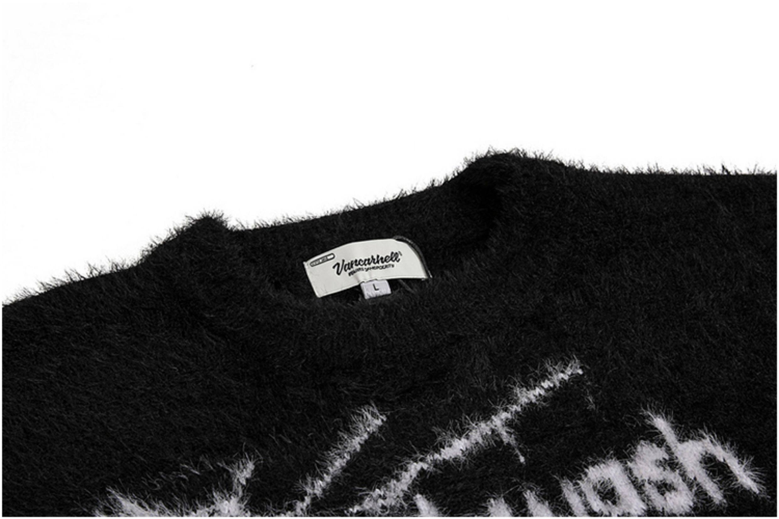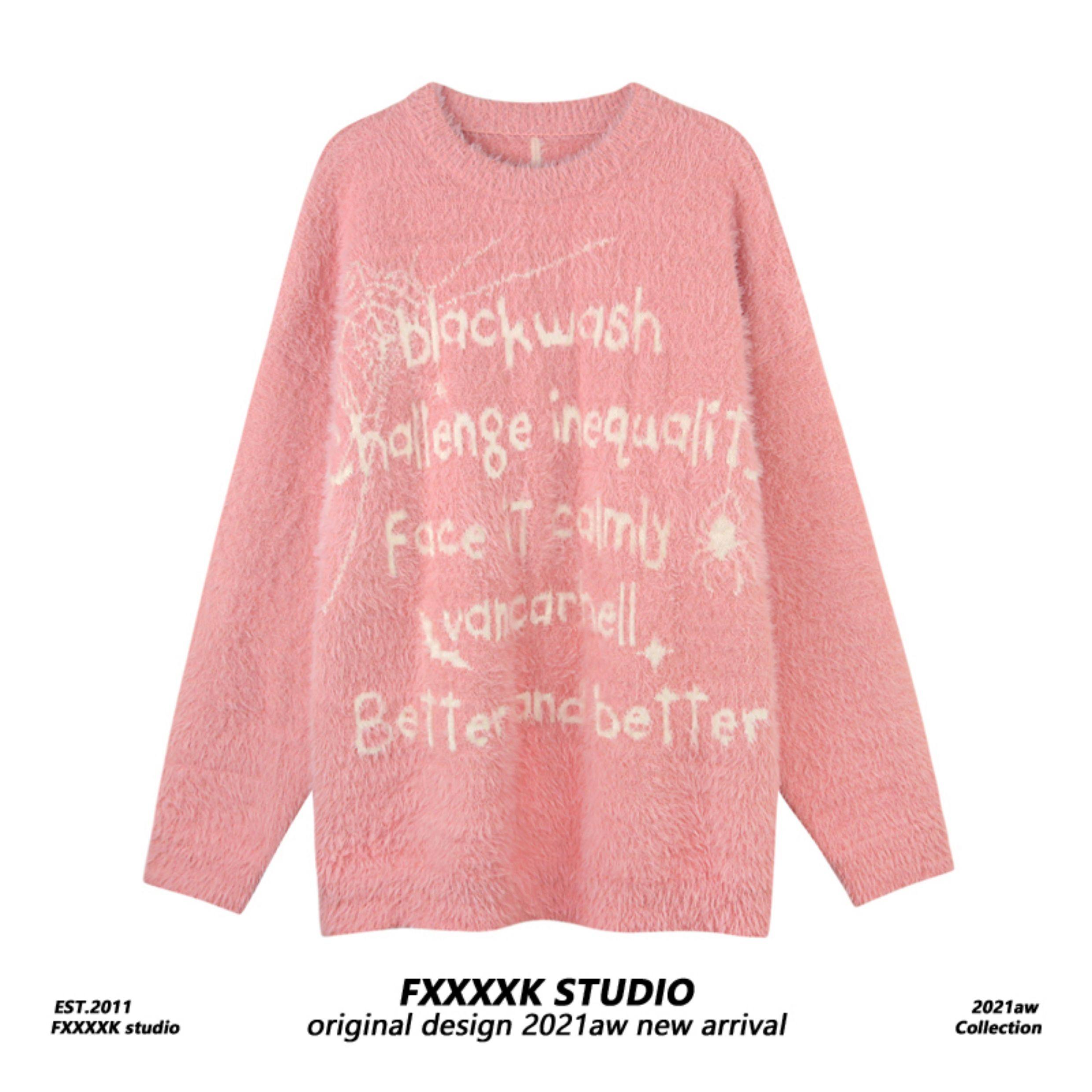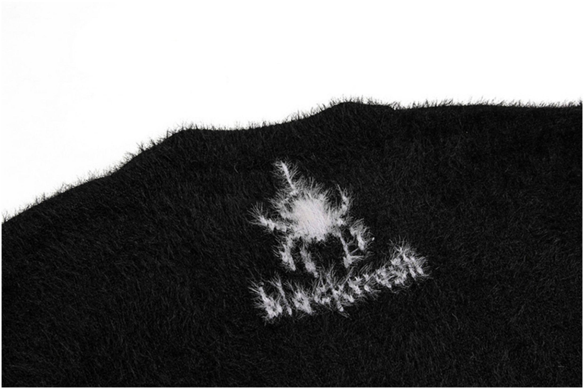 FXK原創 美式高街亞比風蜘蛛刺綉提花針織衫寬鬆情侶水貂毛毛衣