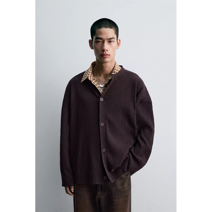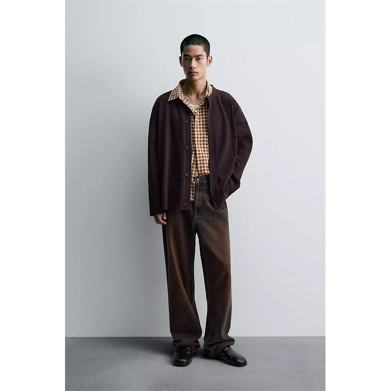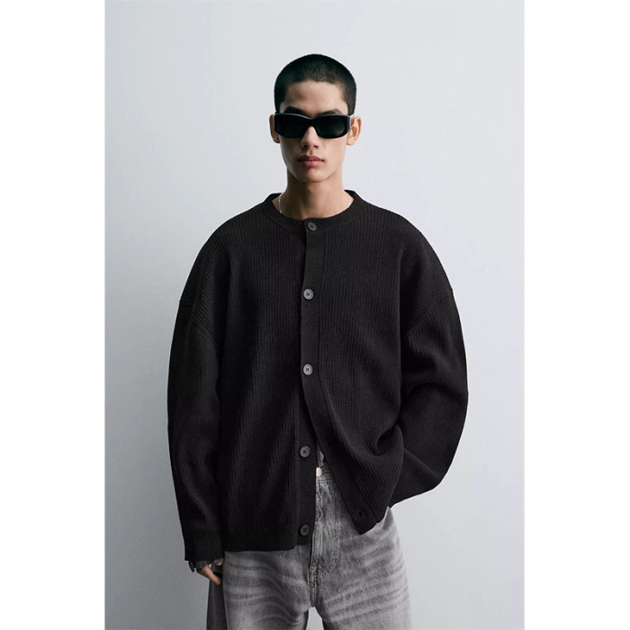 2025秋季新品男裝質感修身直筒圓領長袖開衫針織外套4938312 800