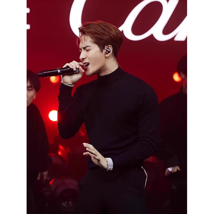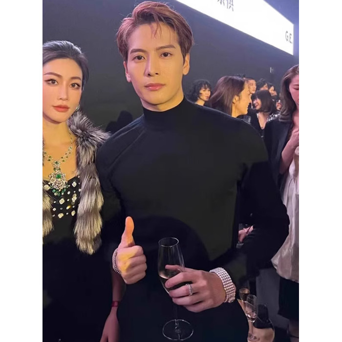 王嘉爾同款半高領長袖針織衫毛衣男春秋黑色修身內搭打底衫男上衣