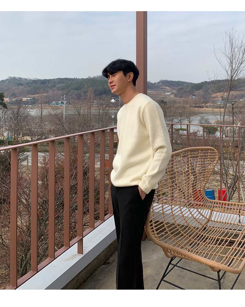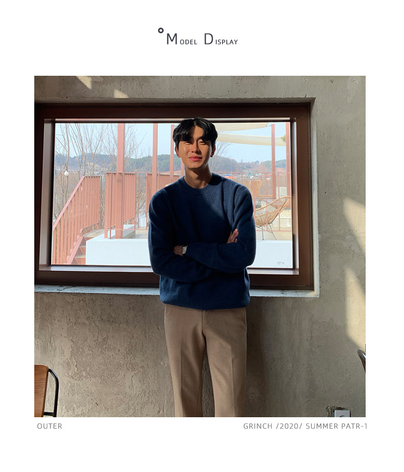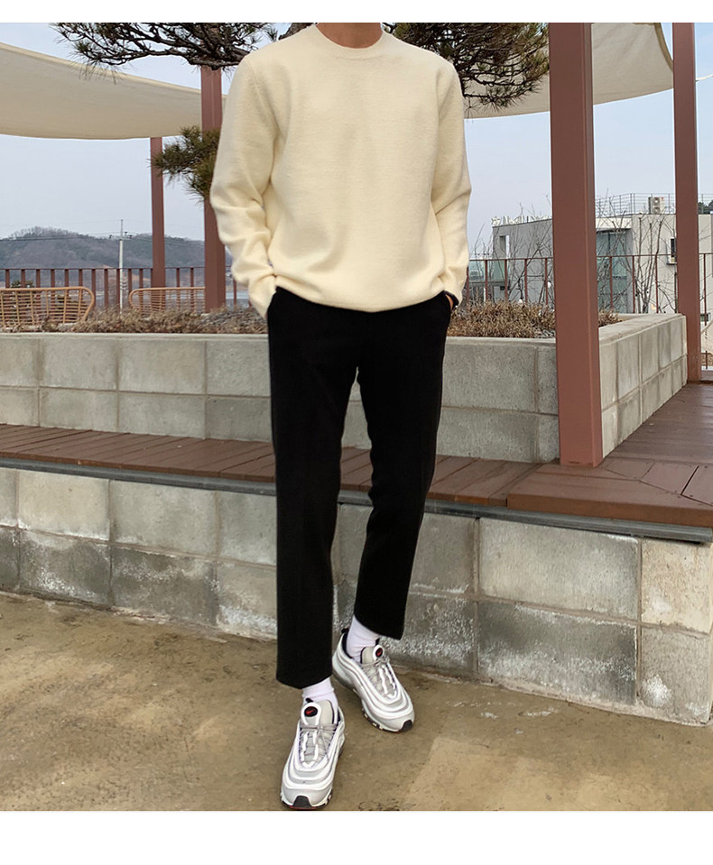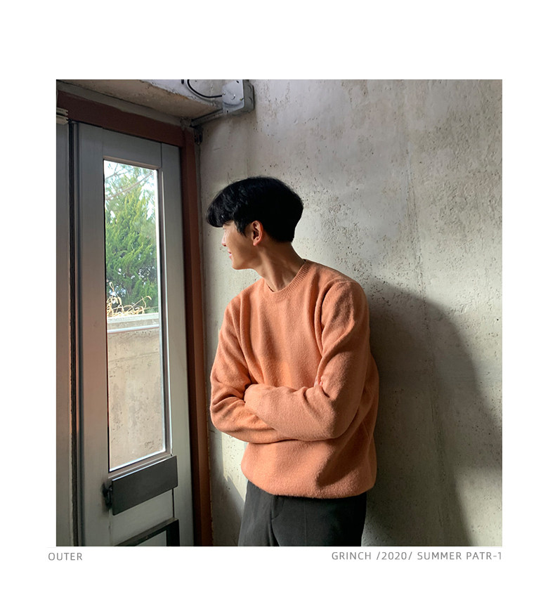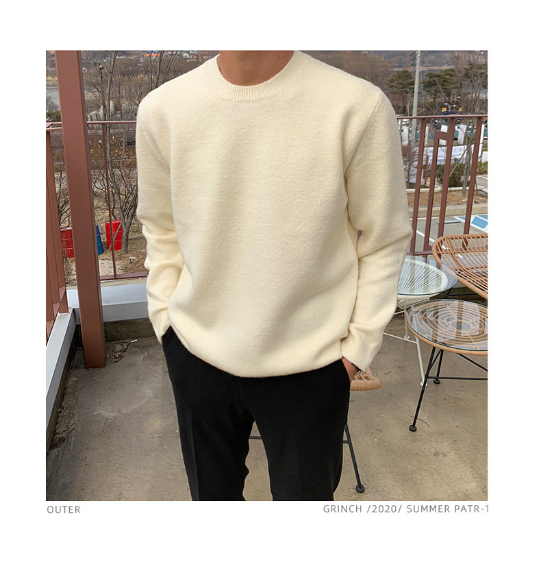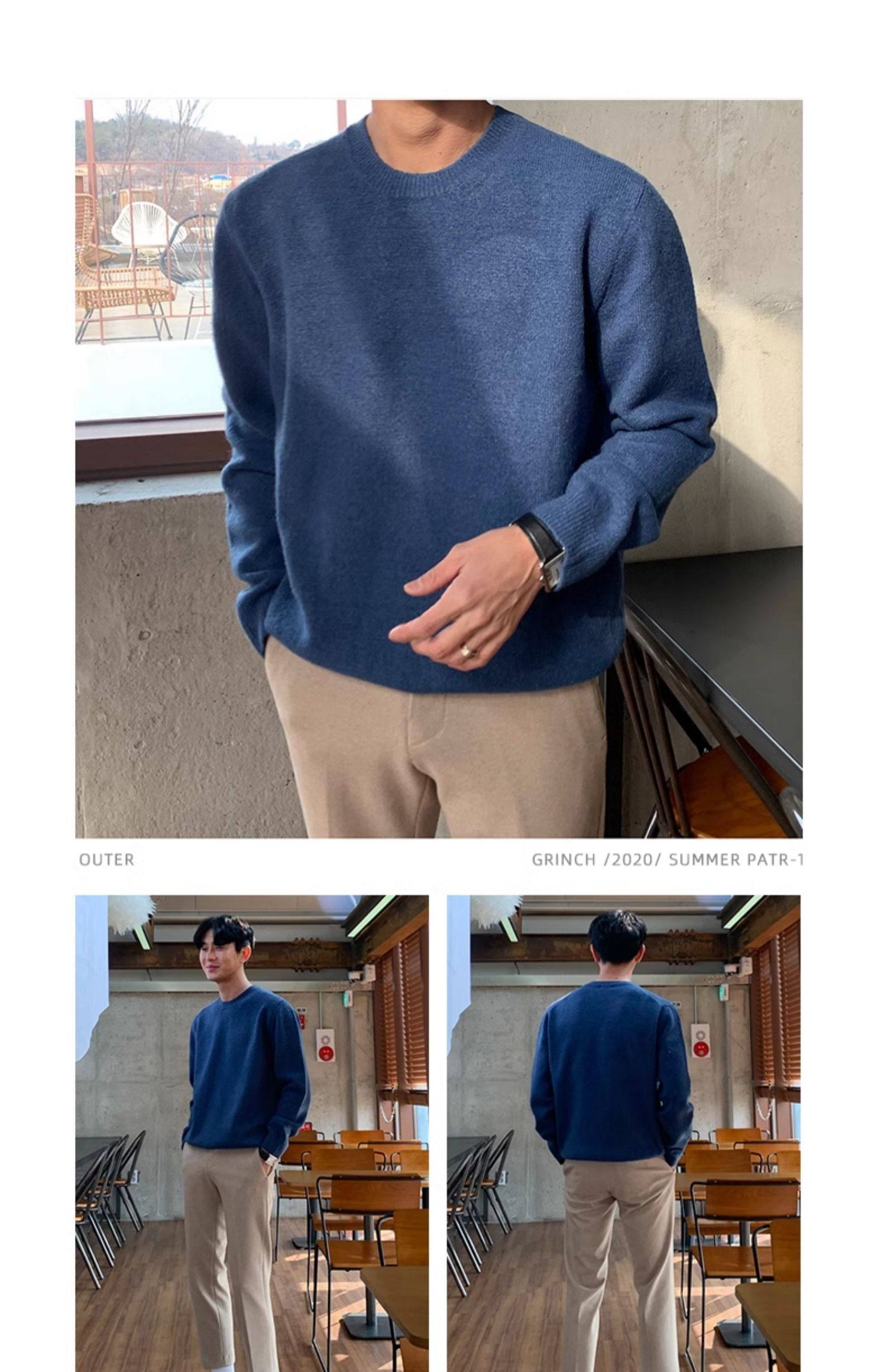 春秋新款針織衫長袖韓版潮流個性純色圓領毛衣男寬鬆休閒外套百搭