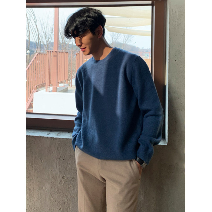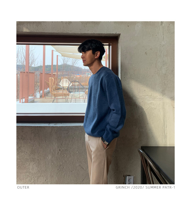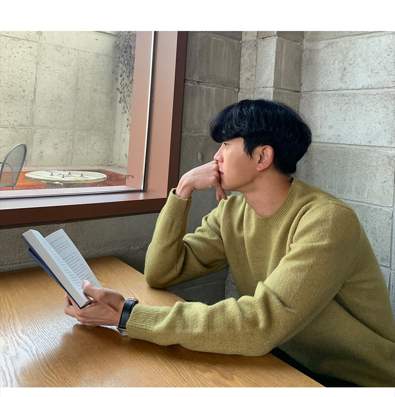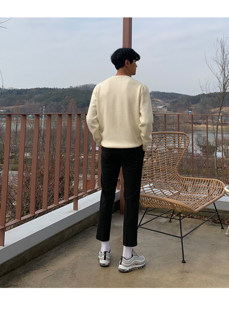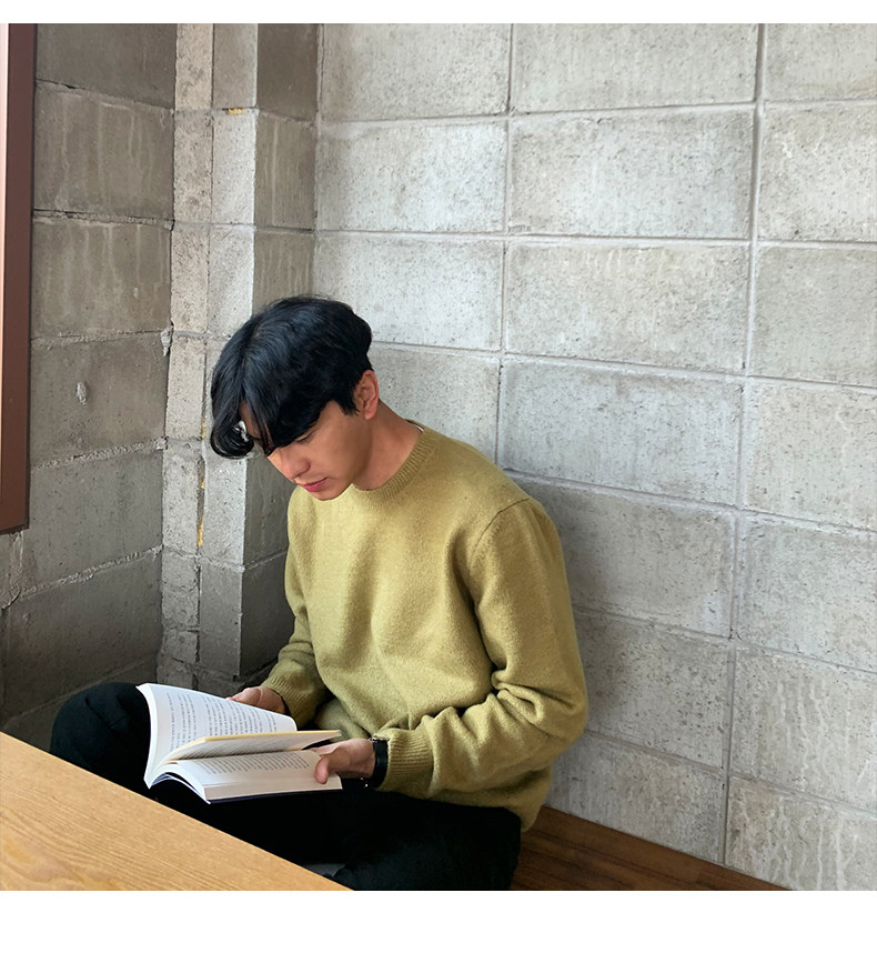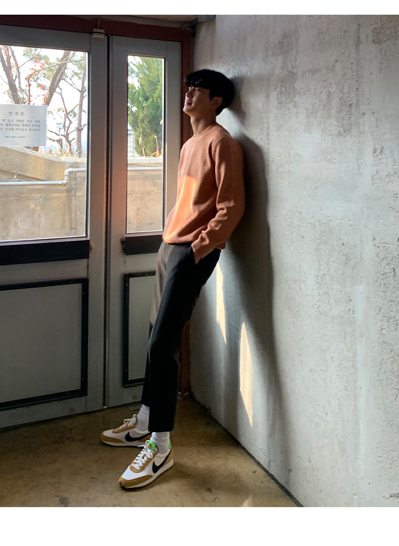 春秋新款針織衫長袖韓版潮流個性純色圓領毛衣男寬鬆休閒外套百搭