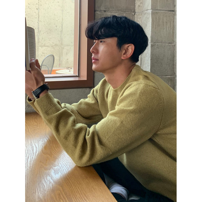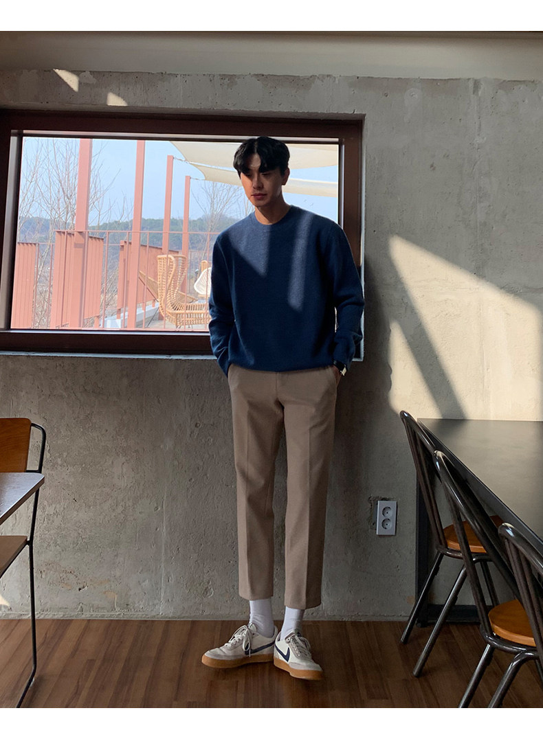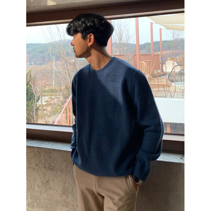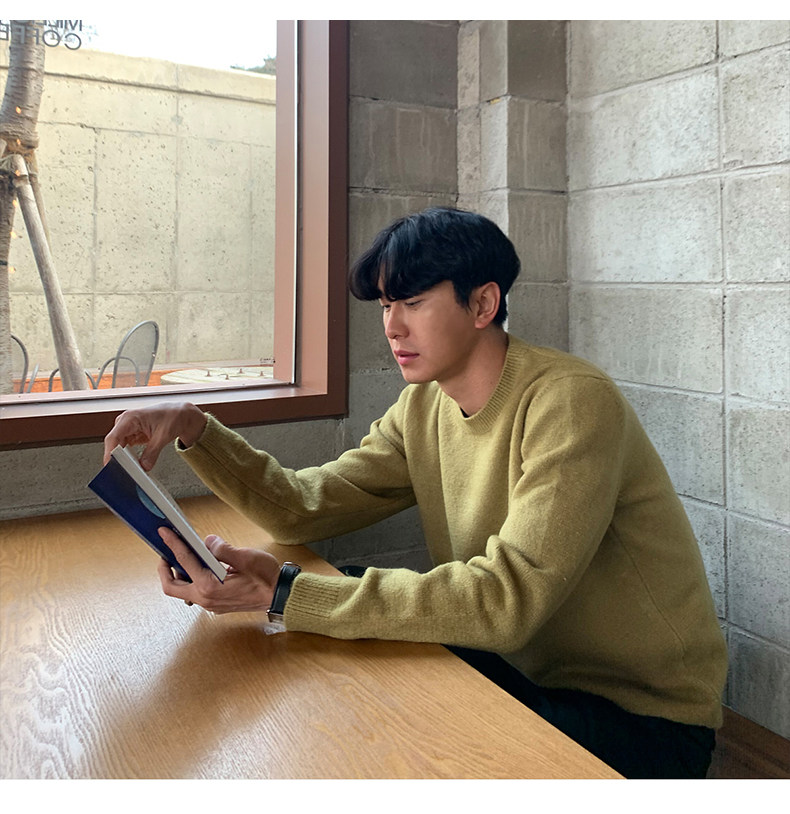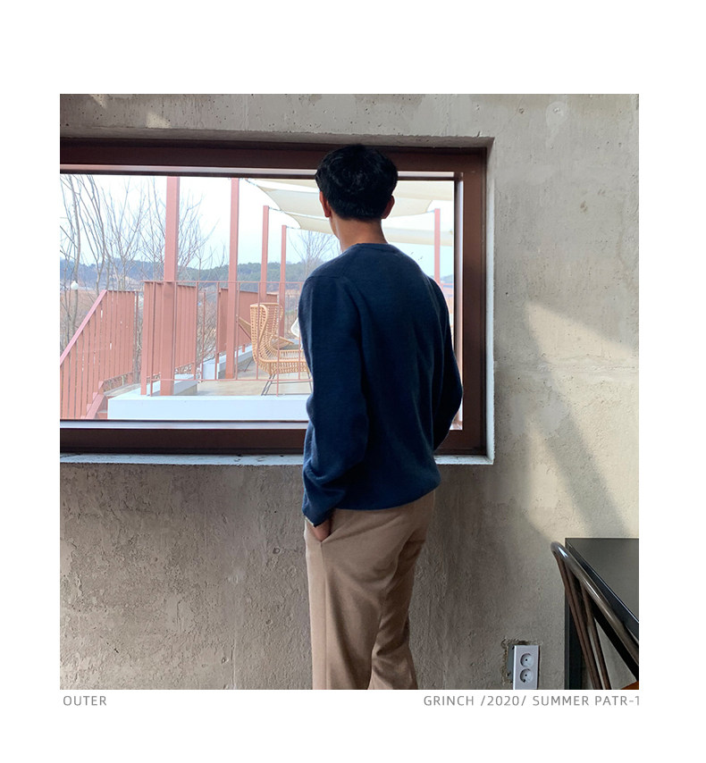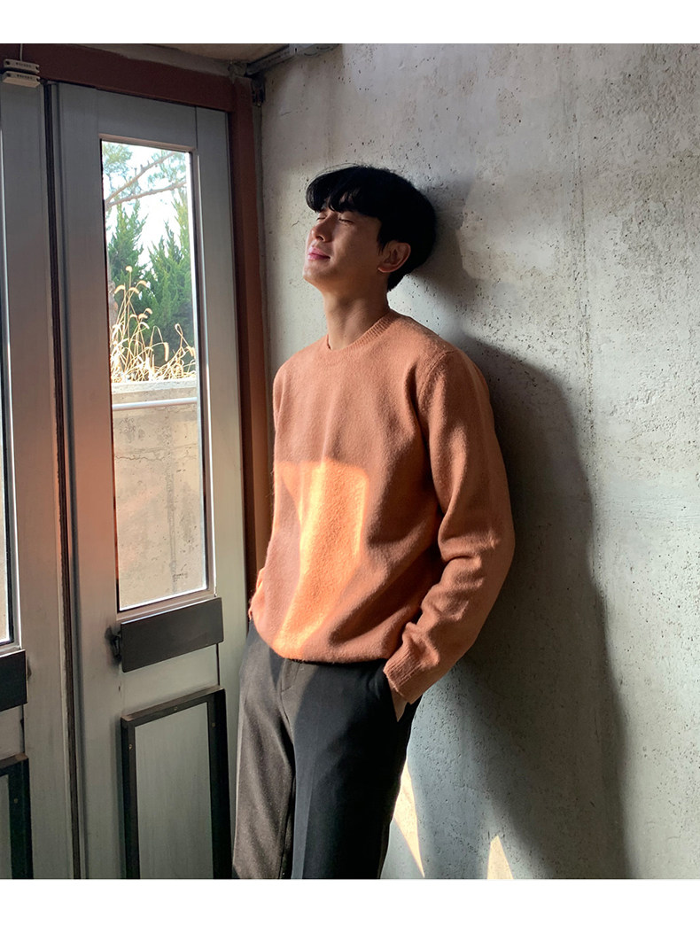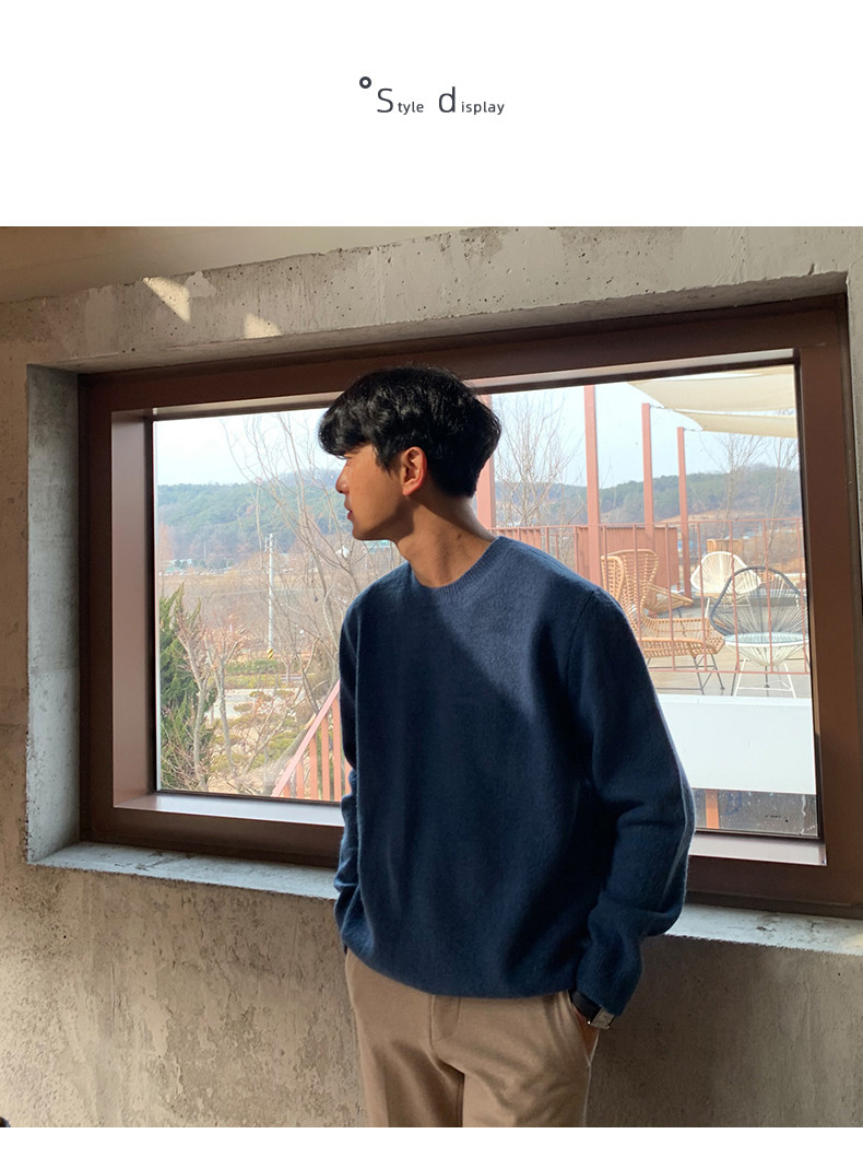 春秋新款針織衫長袖韓版潮流個性純色圓領毛衣男寬鬆休閒外套百搭