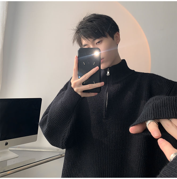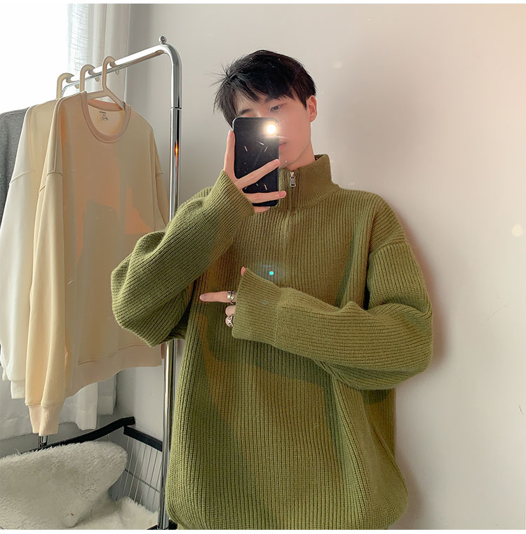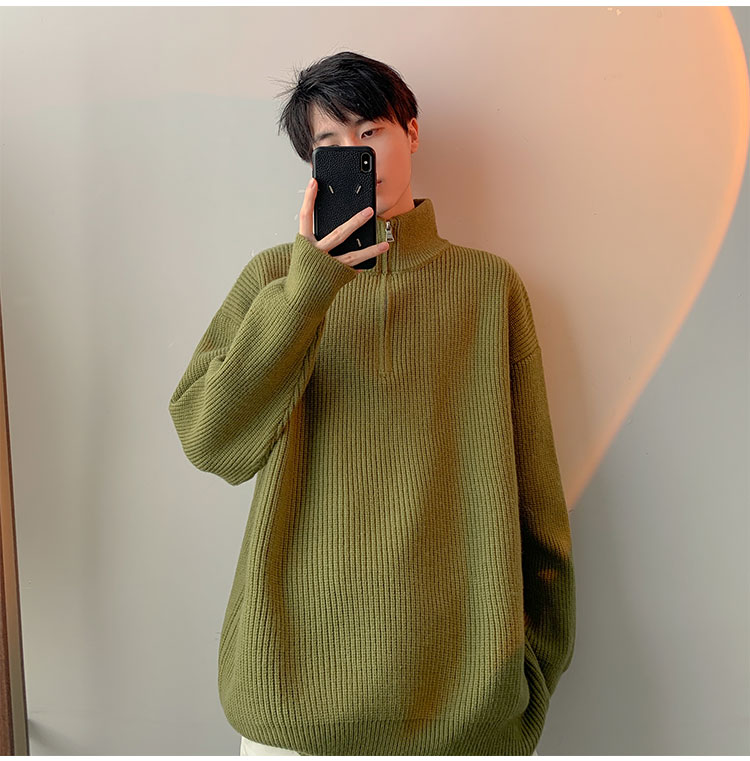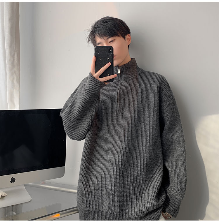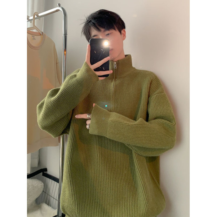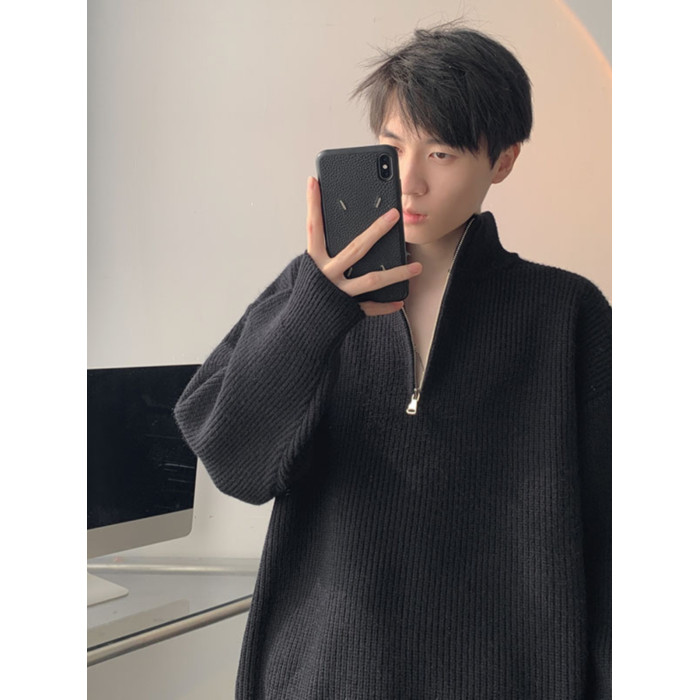 秋冬半拉鍊毛衣男套頭半高領休閒潮牌日系港風百搭學生針織衫外套
