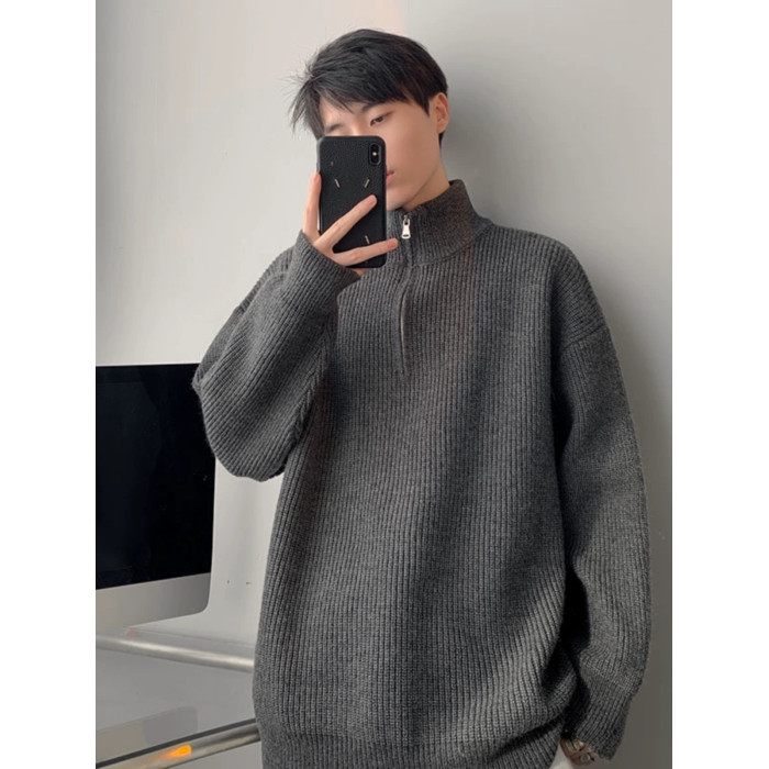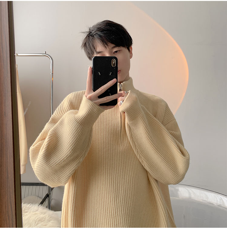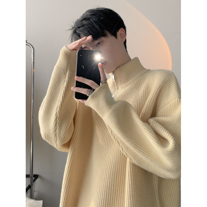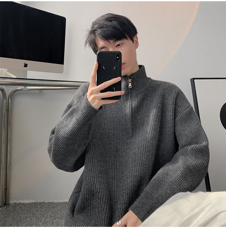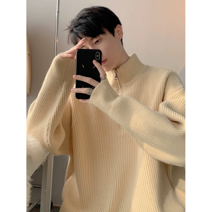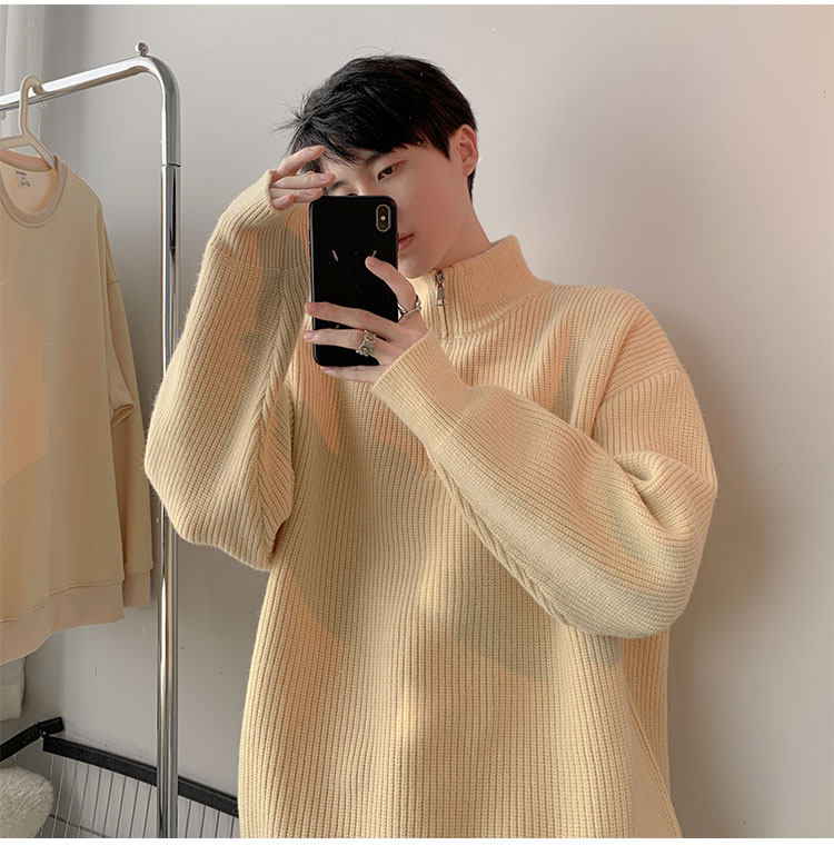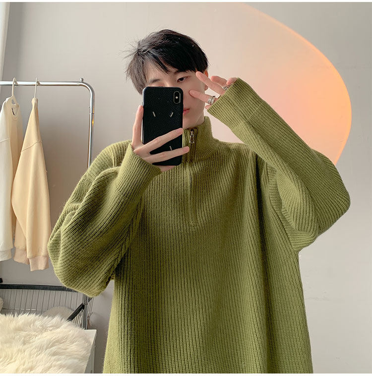 秋冬半拉鍊毛衣男套頭半高領休閒潮牌日系港風百搭學生針織衫外套