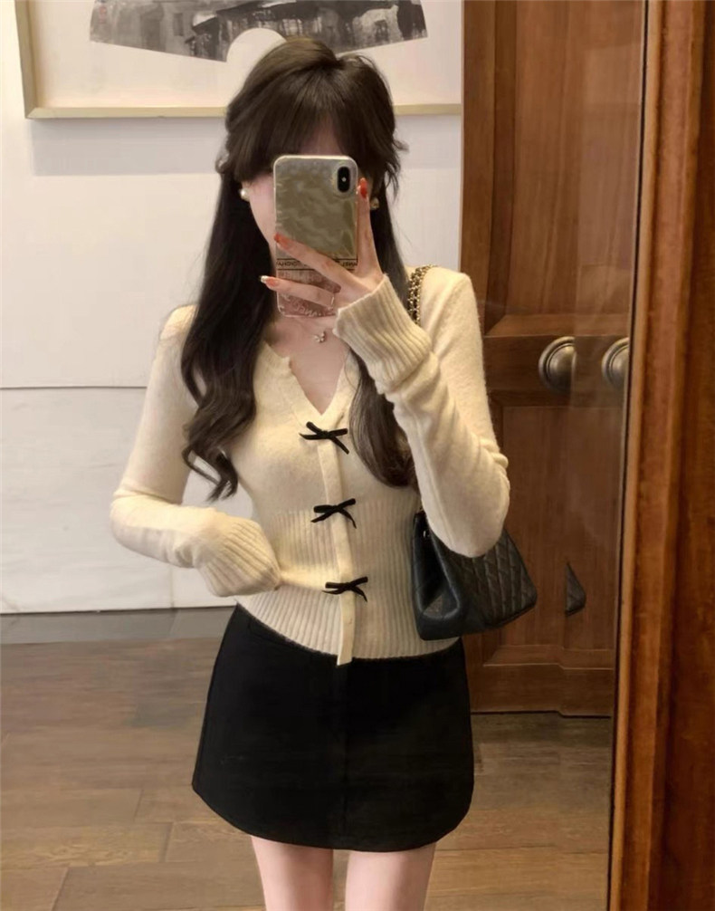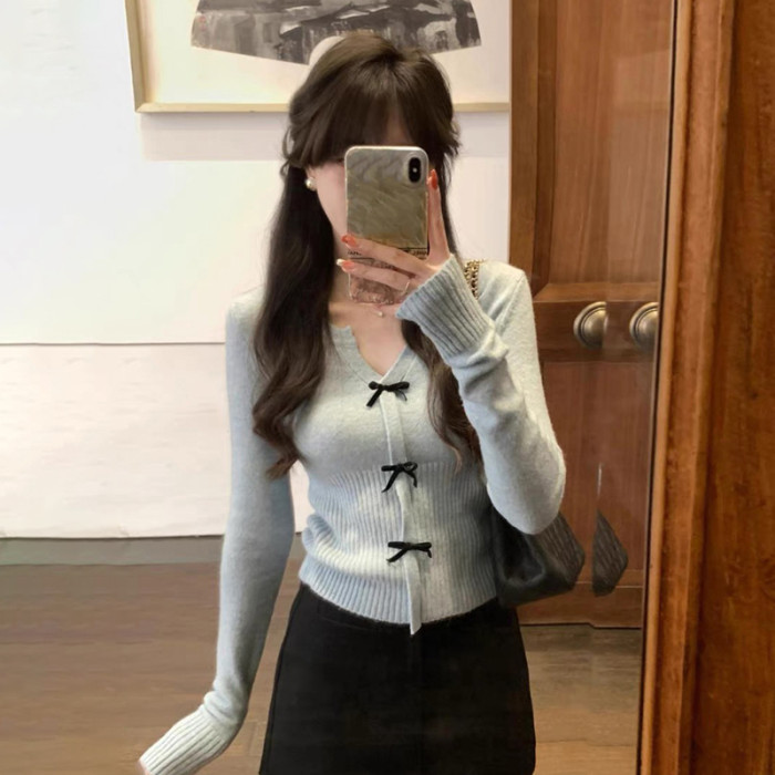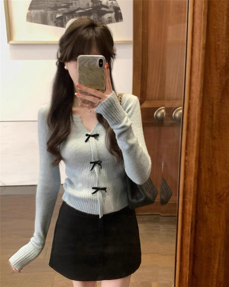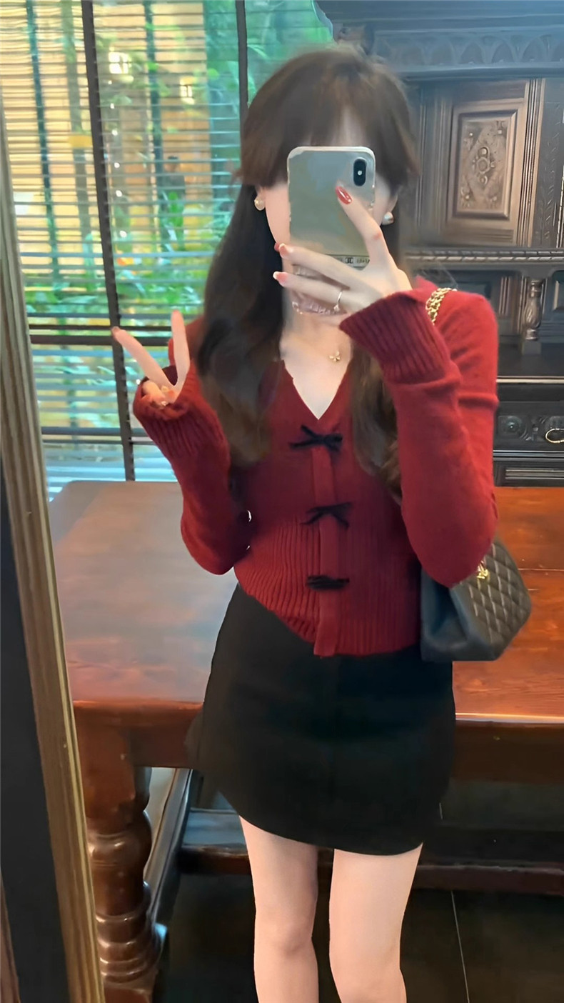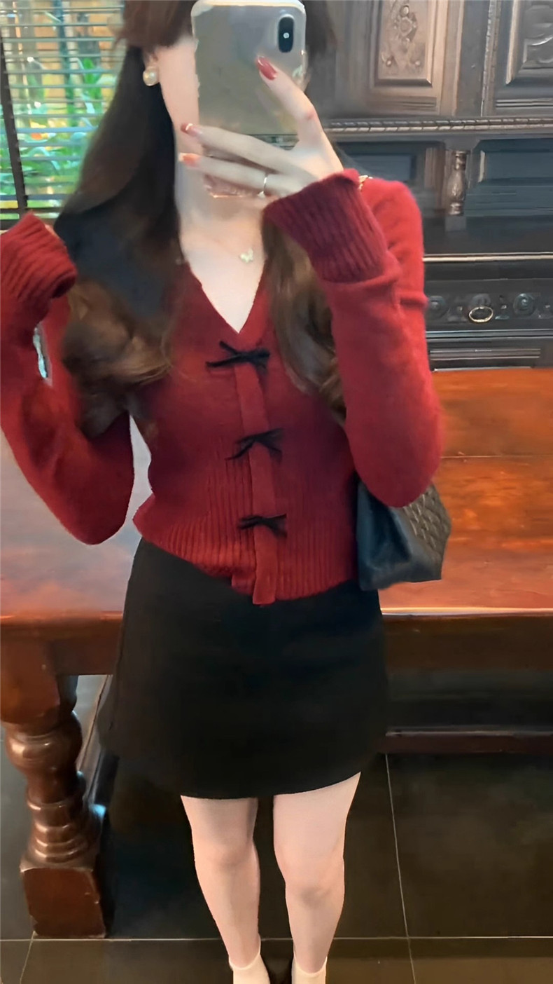 早秋穿搭蝴蝶結紅色毛衣女秋冬季2025慵嬾高級感內搭打底針織上衣
