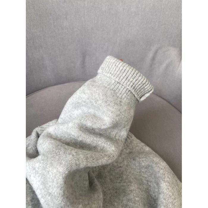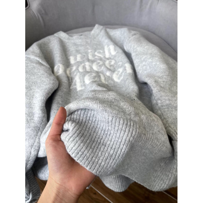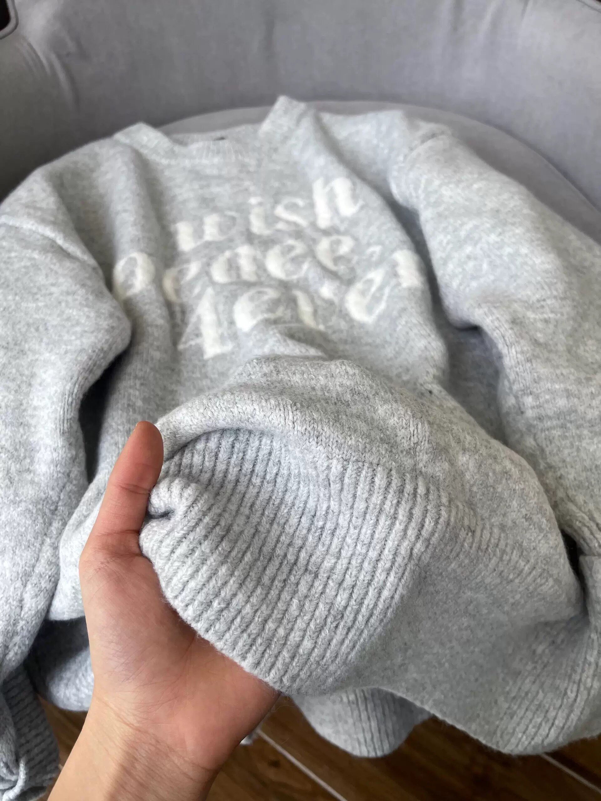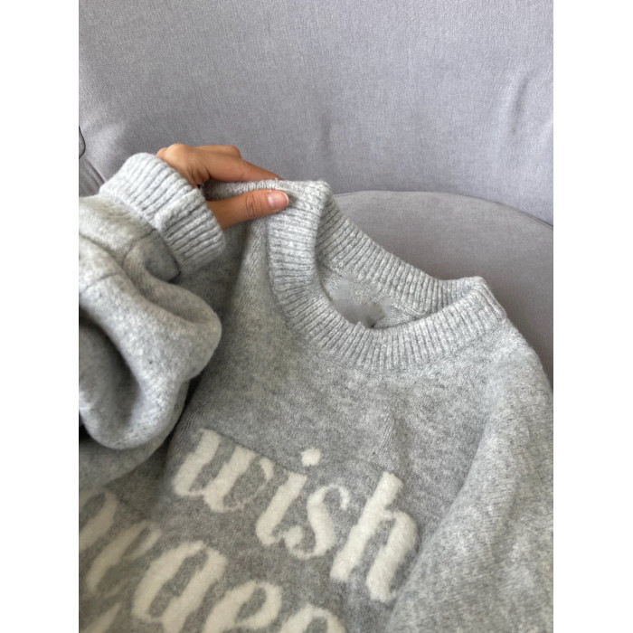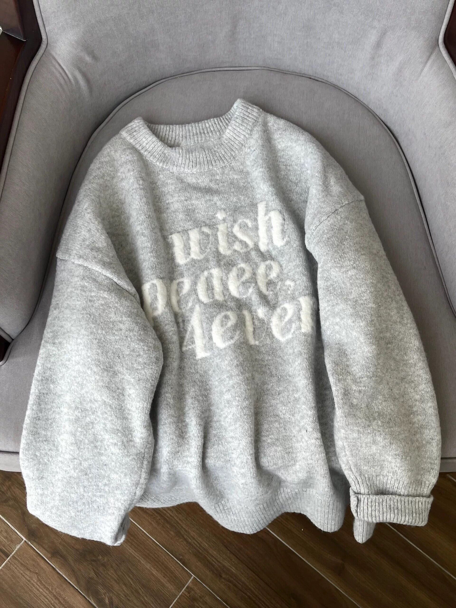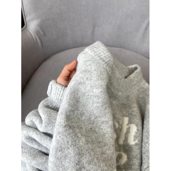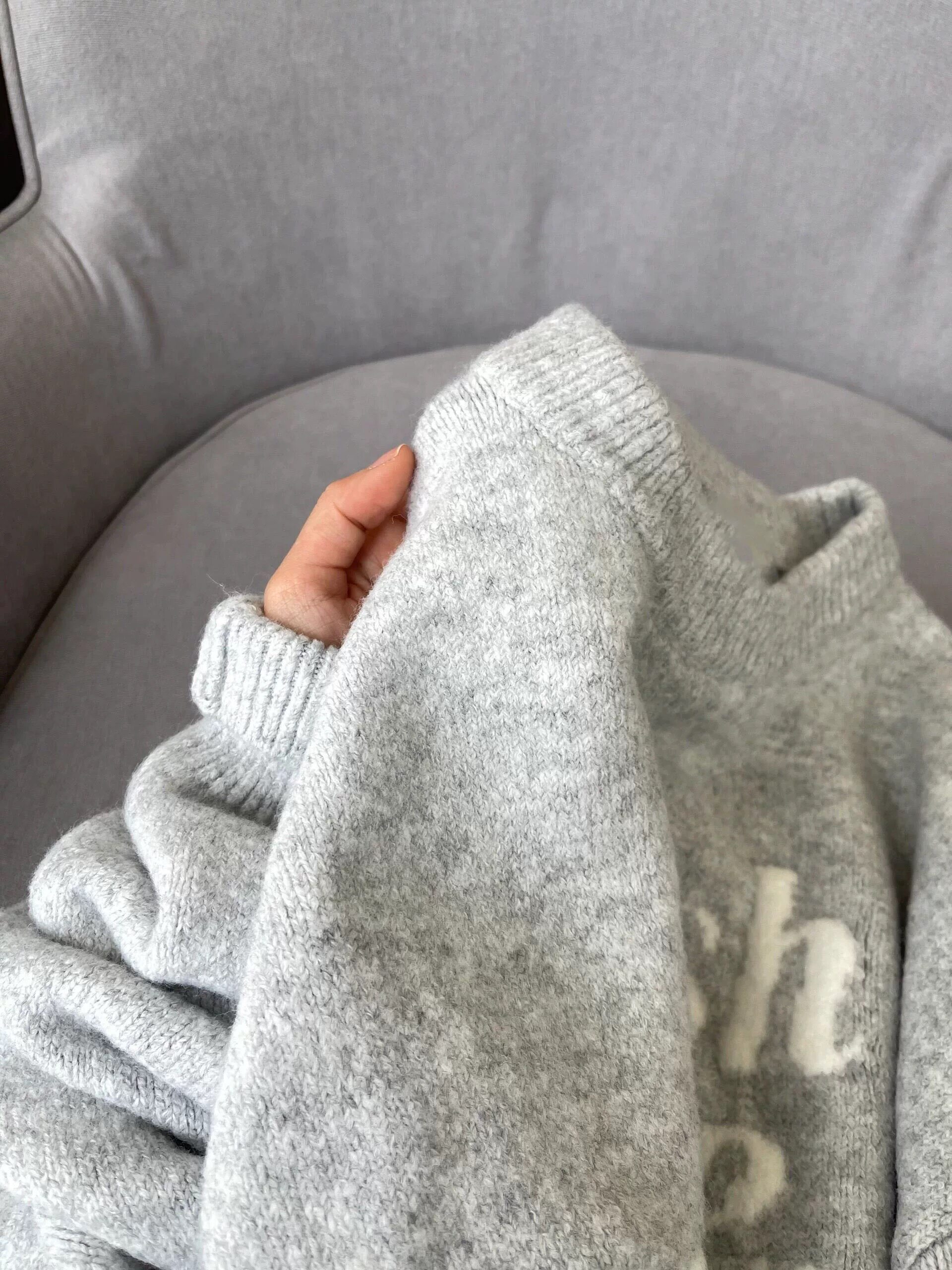 美式復古字母提花灰色毛衣女秋冬寬鬆外穿慵嬾風圓領軟糯針織上衣