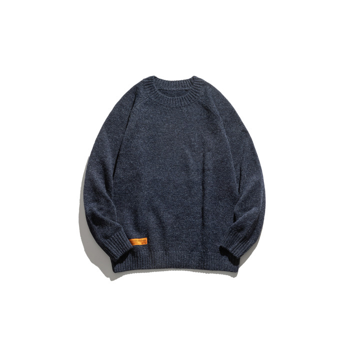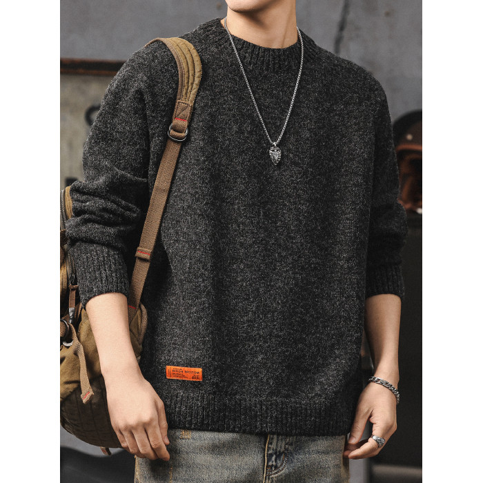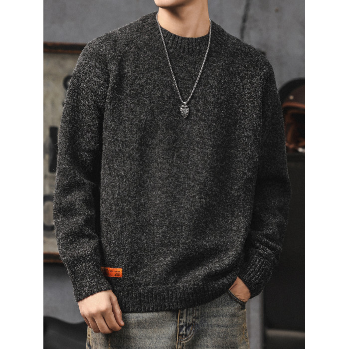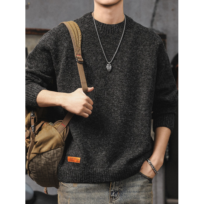 美式復古毛衣男冬季高級感寬松加厚圓領針織衫慵懶風休閒男士外套
