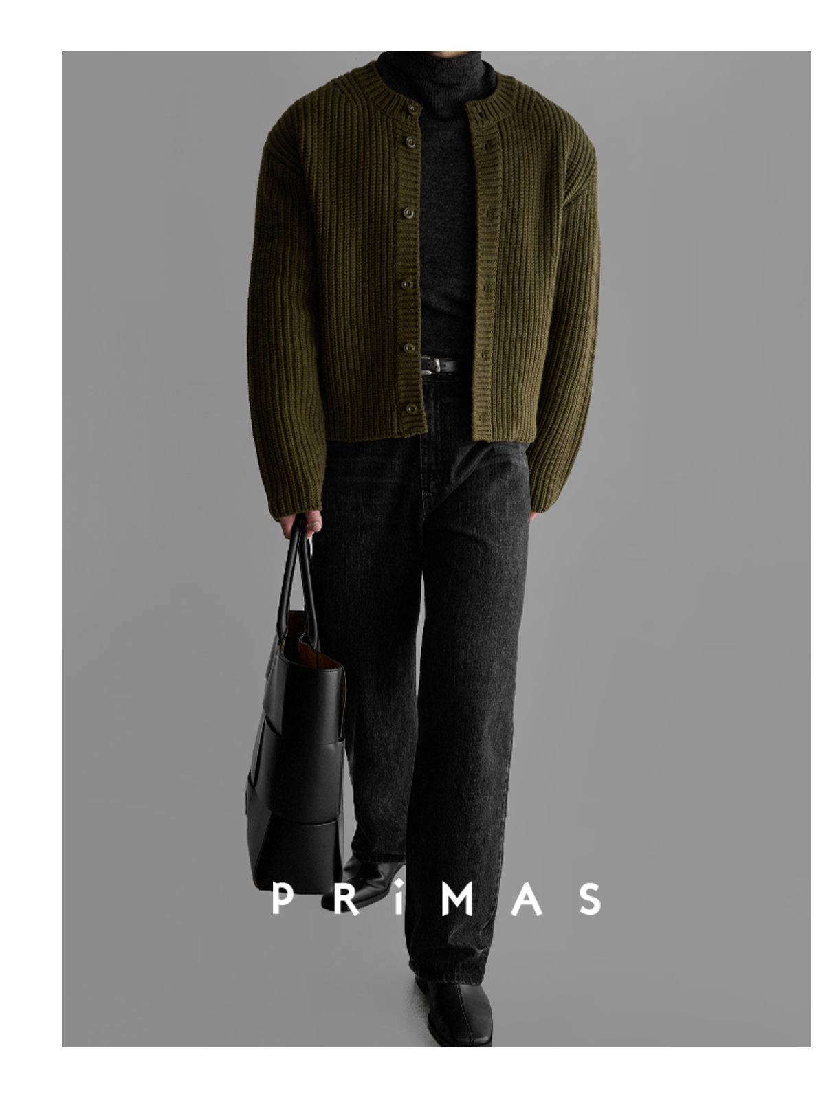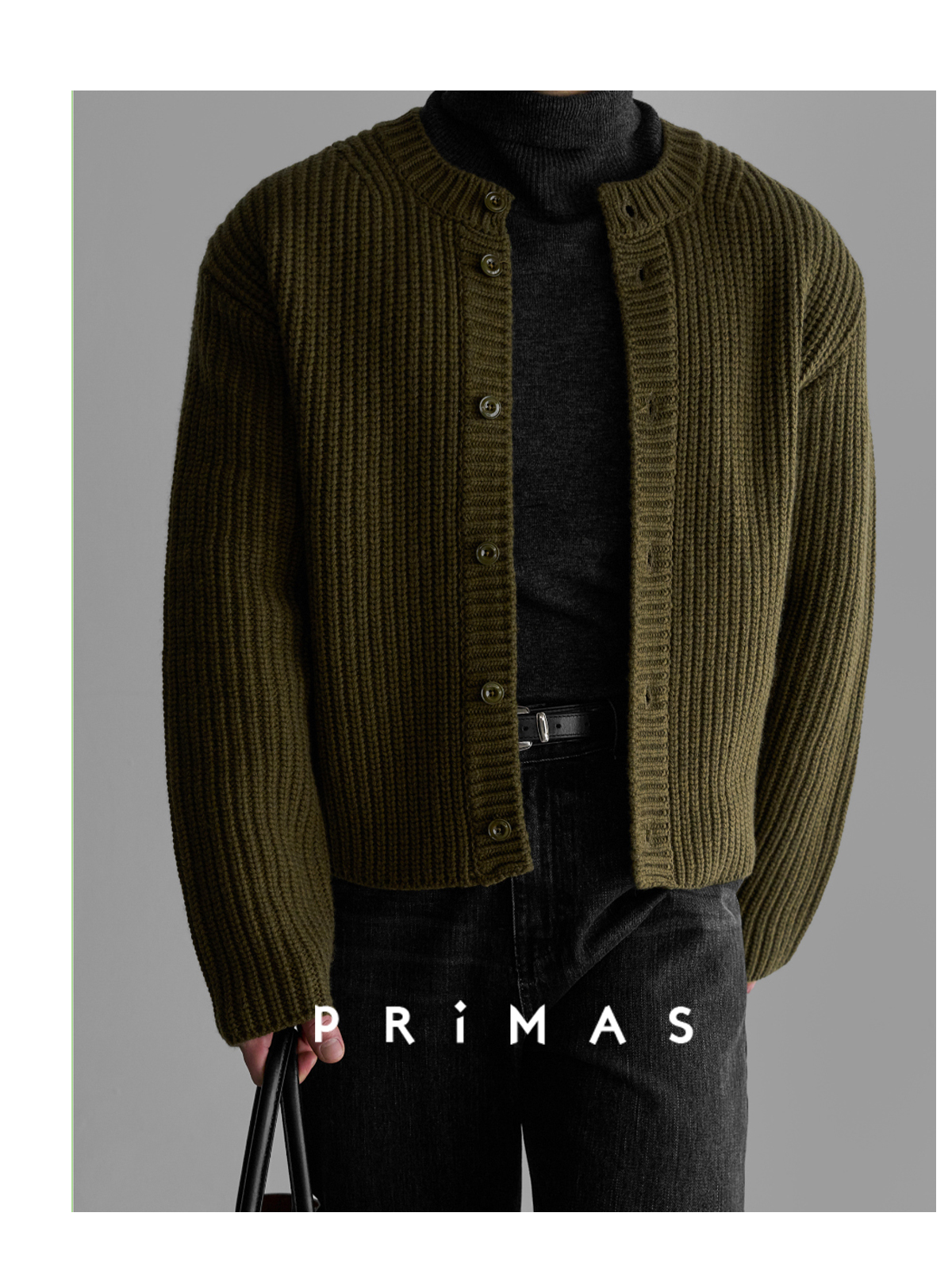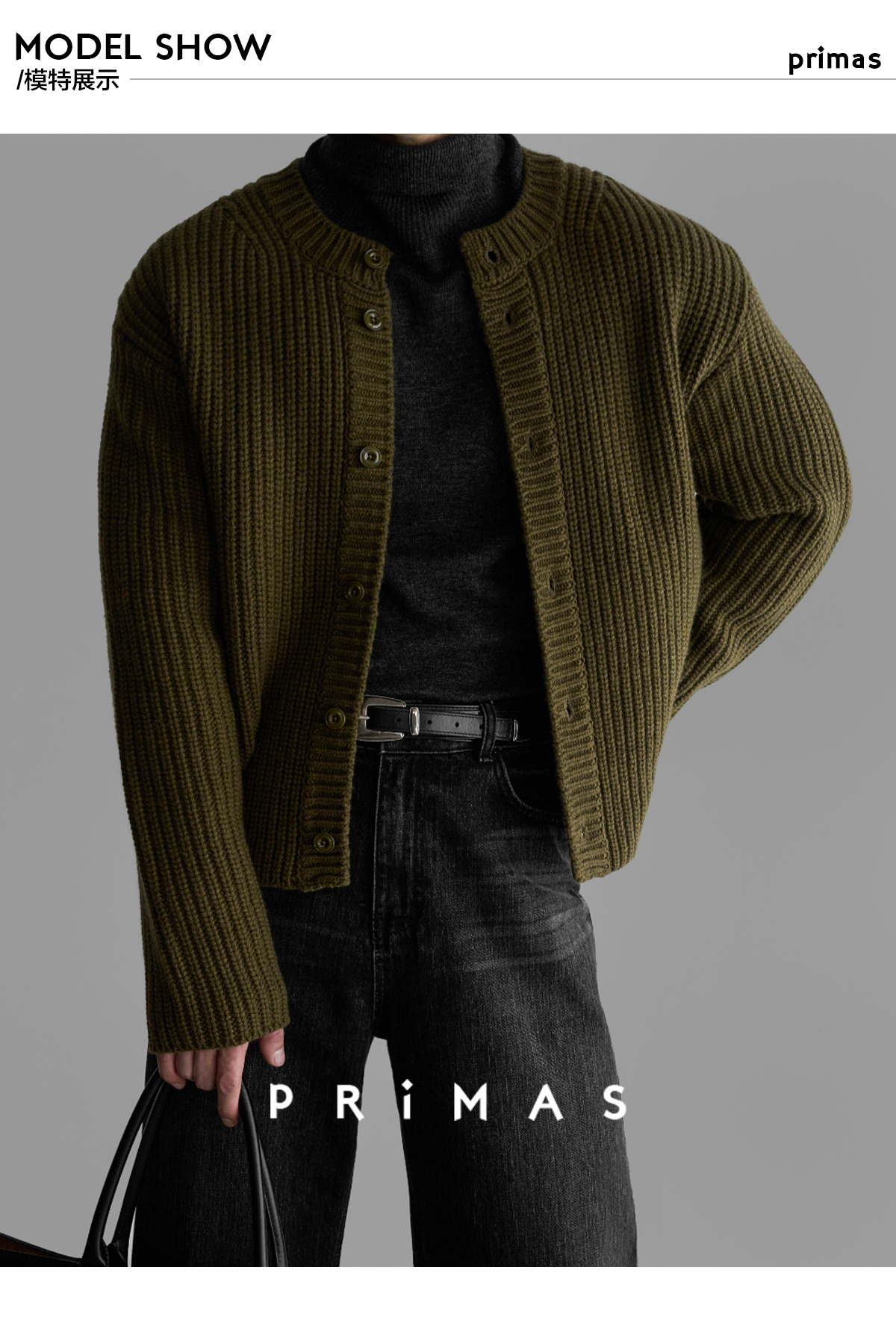 Primas 老錢風厚款針織開衫男秋季美式復古輕熟風毛衣高級感外套