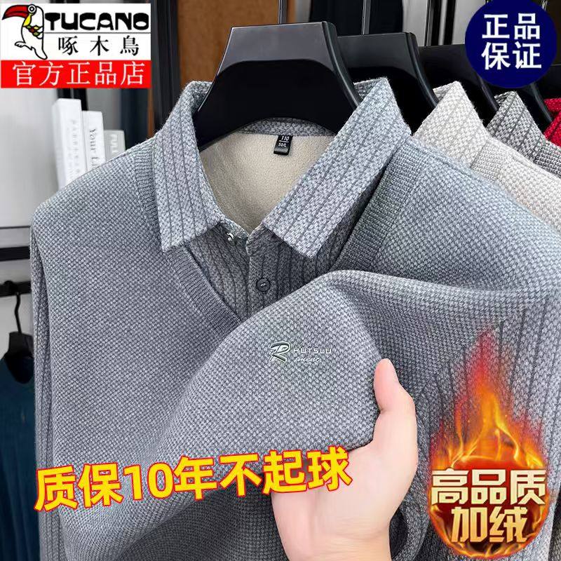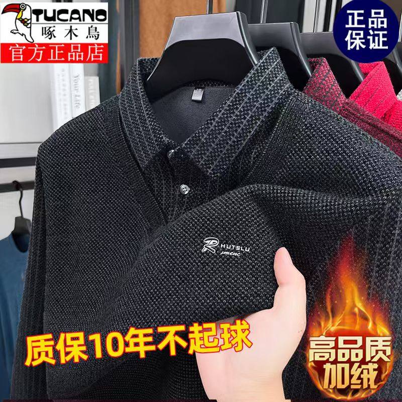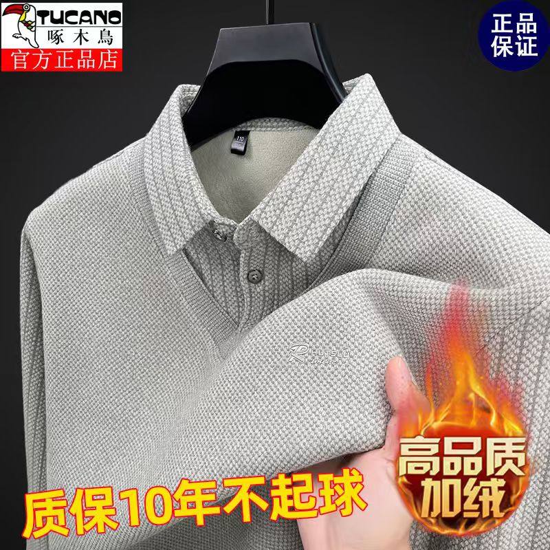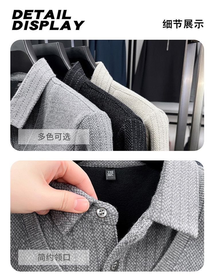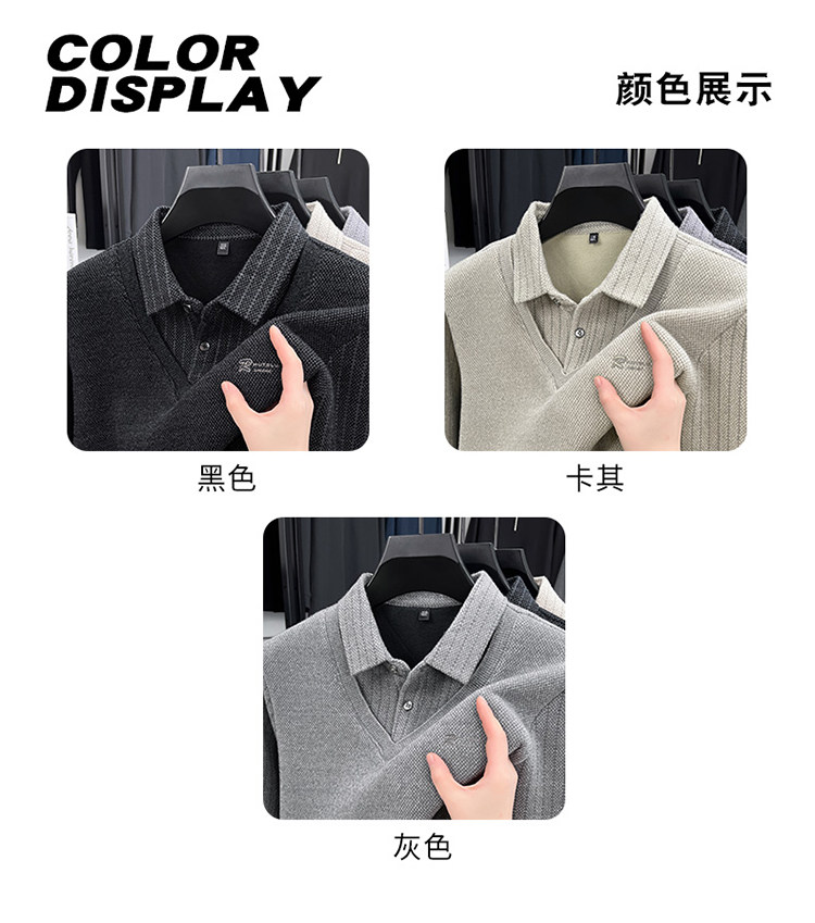啄木鳥爸爸冬裝毛衣加絨加厚中老年男士假兩件保暖型襯衫領打底衫