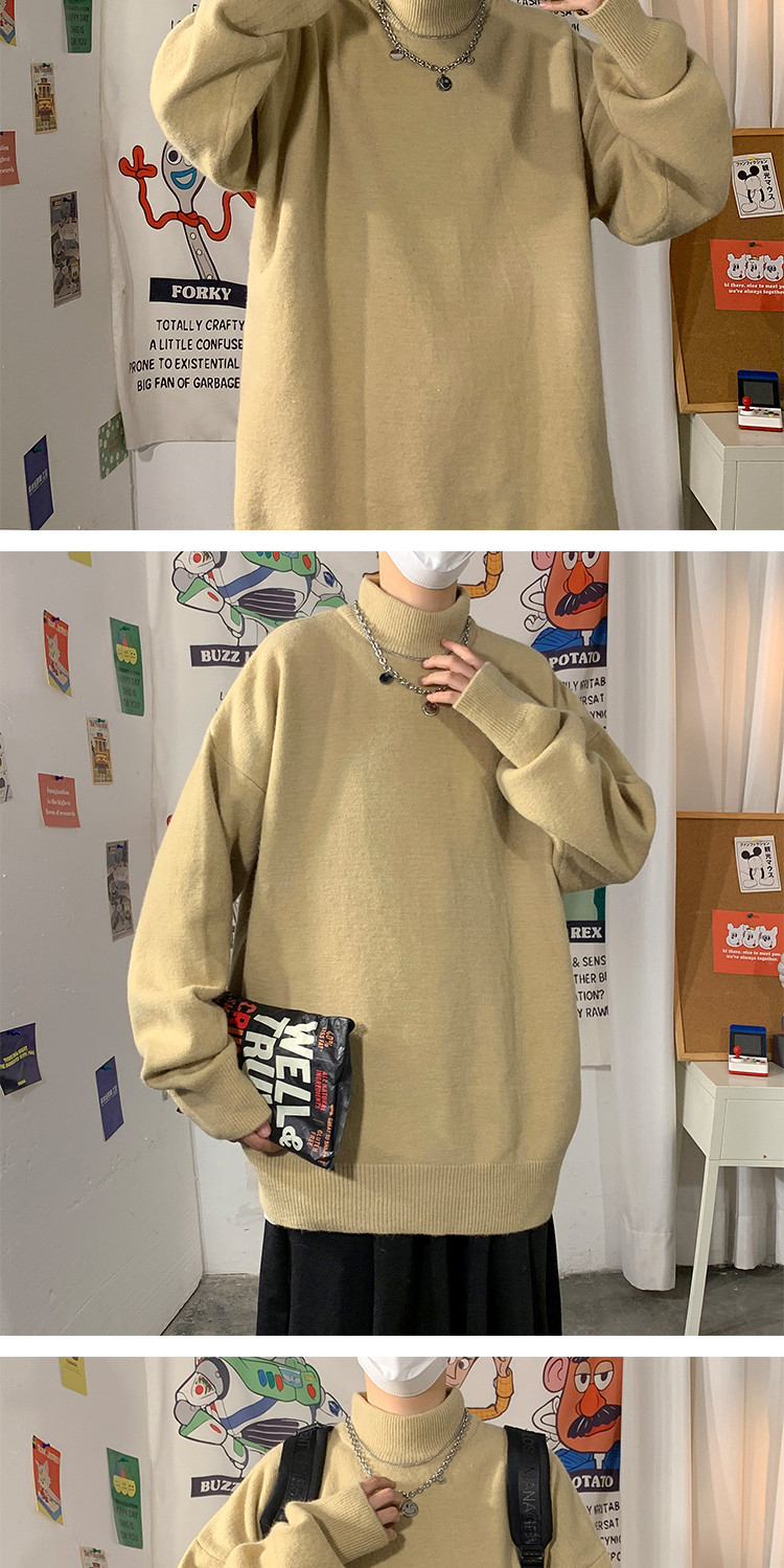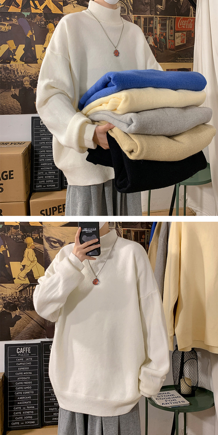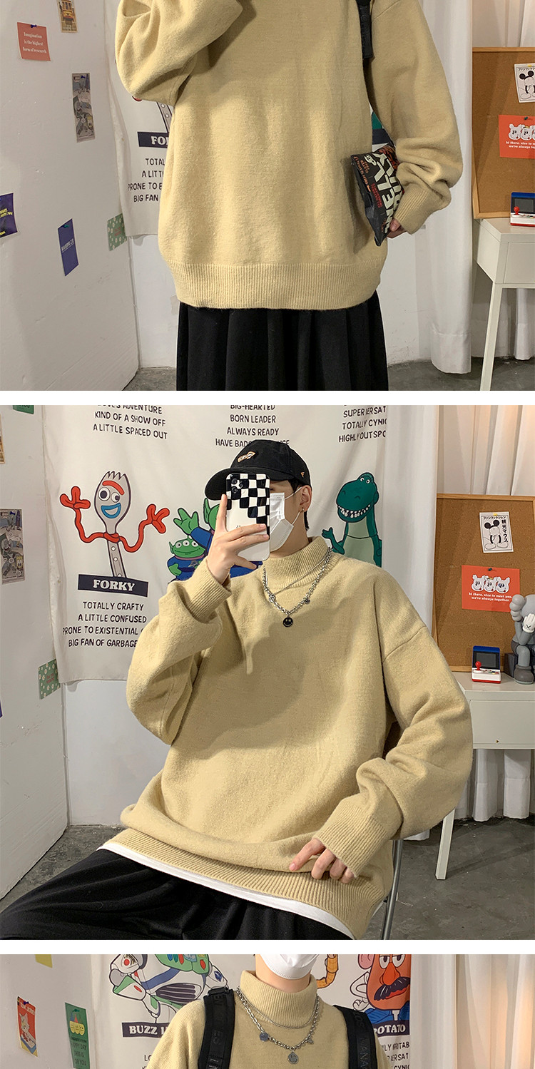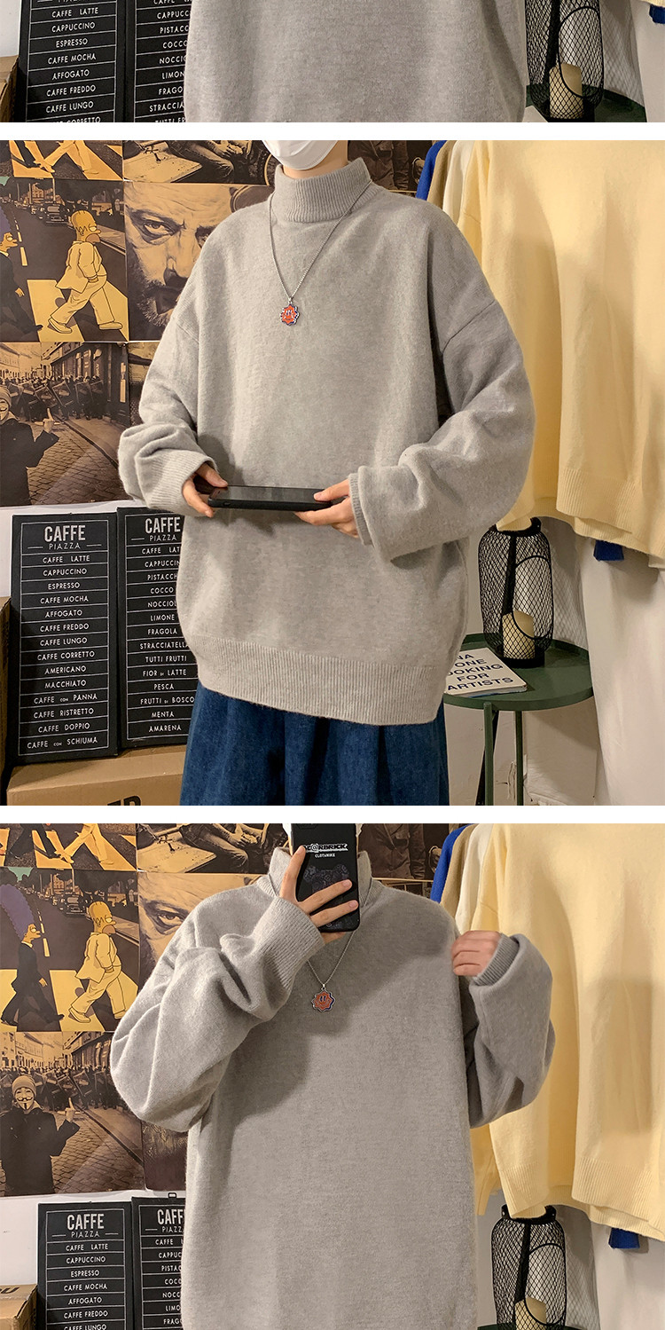 黑色半高領毛衣男生冬季加絨加厚極簡風軟糯慵嬾內搭打底針織毛衫