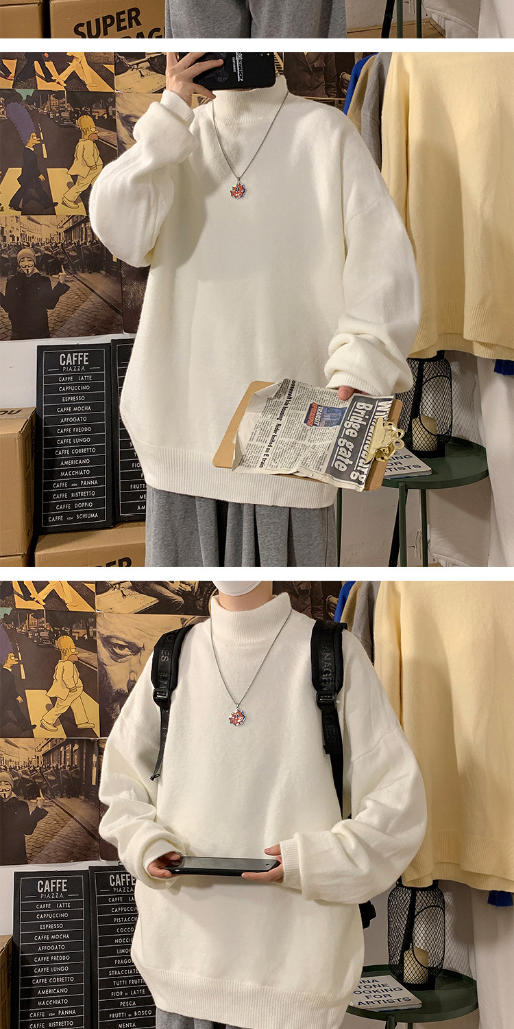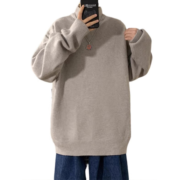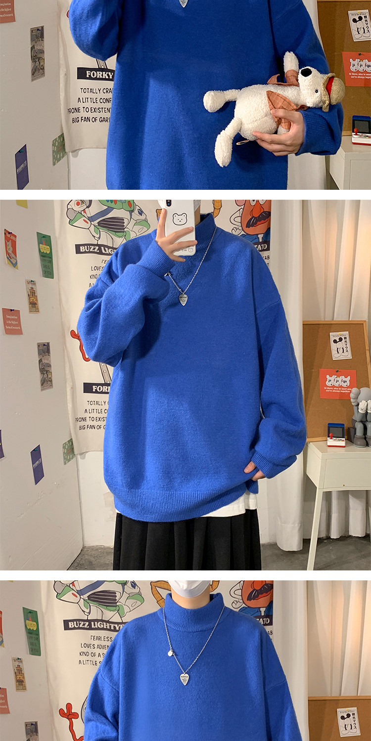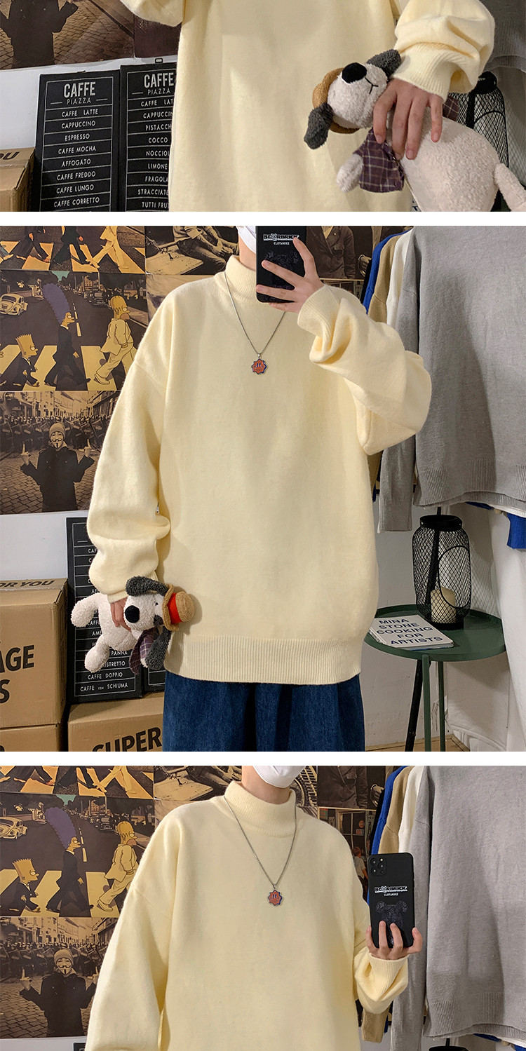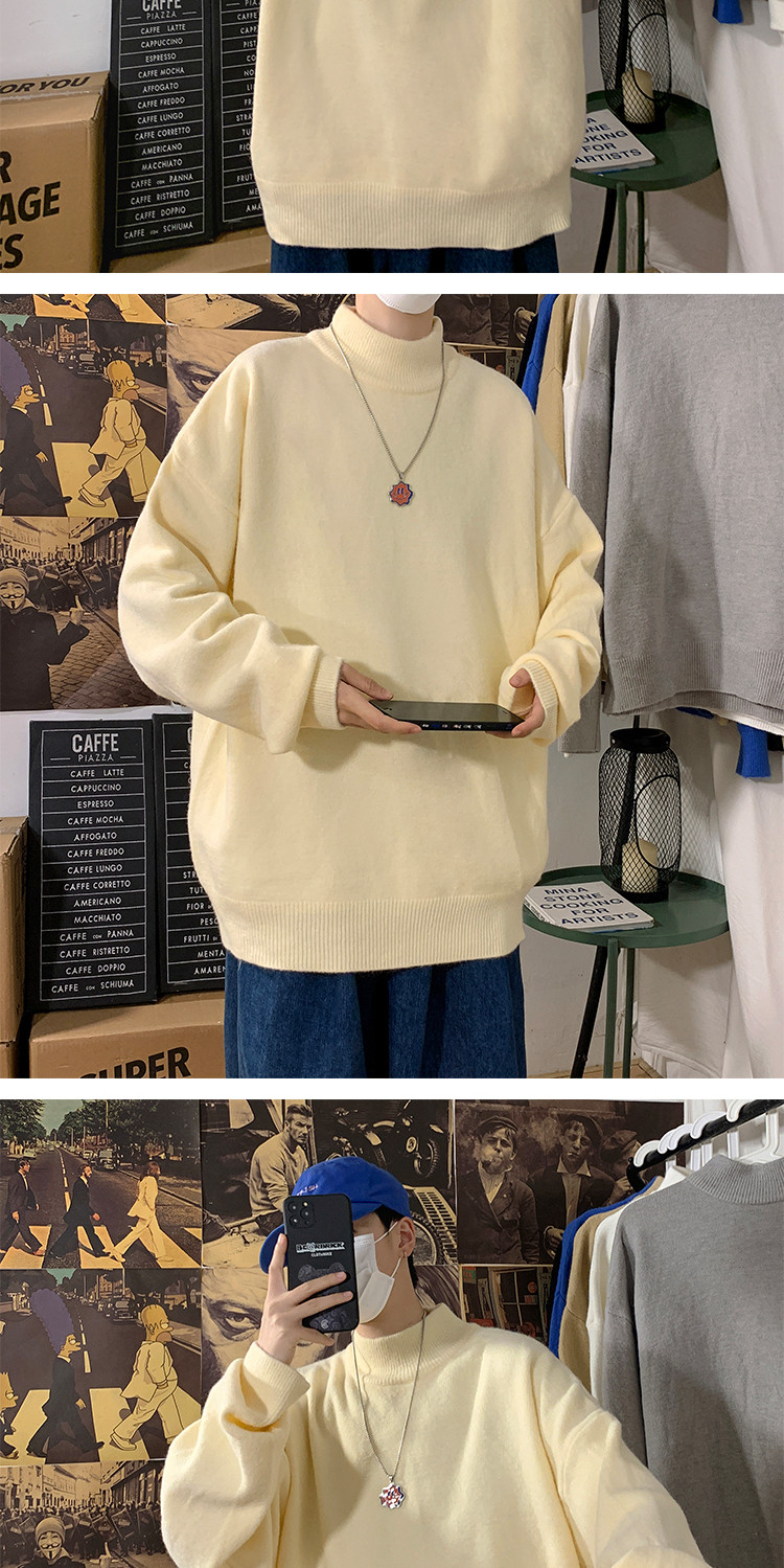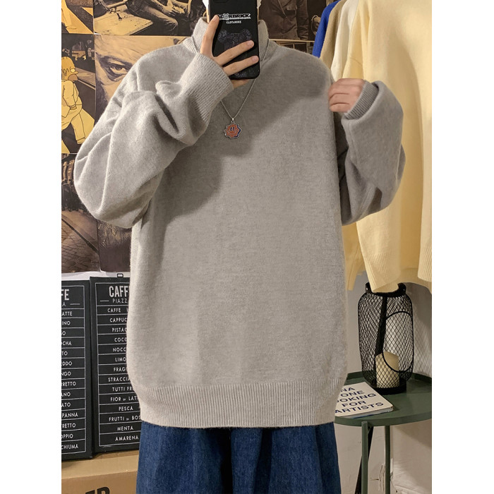 黑色半高領毛衣男生冬季加絨加厚極簡風軟糯慵嬾內搭打底針織毛衫