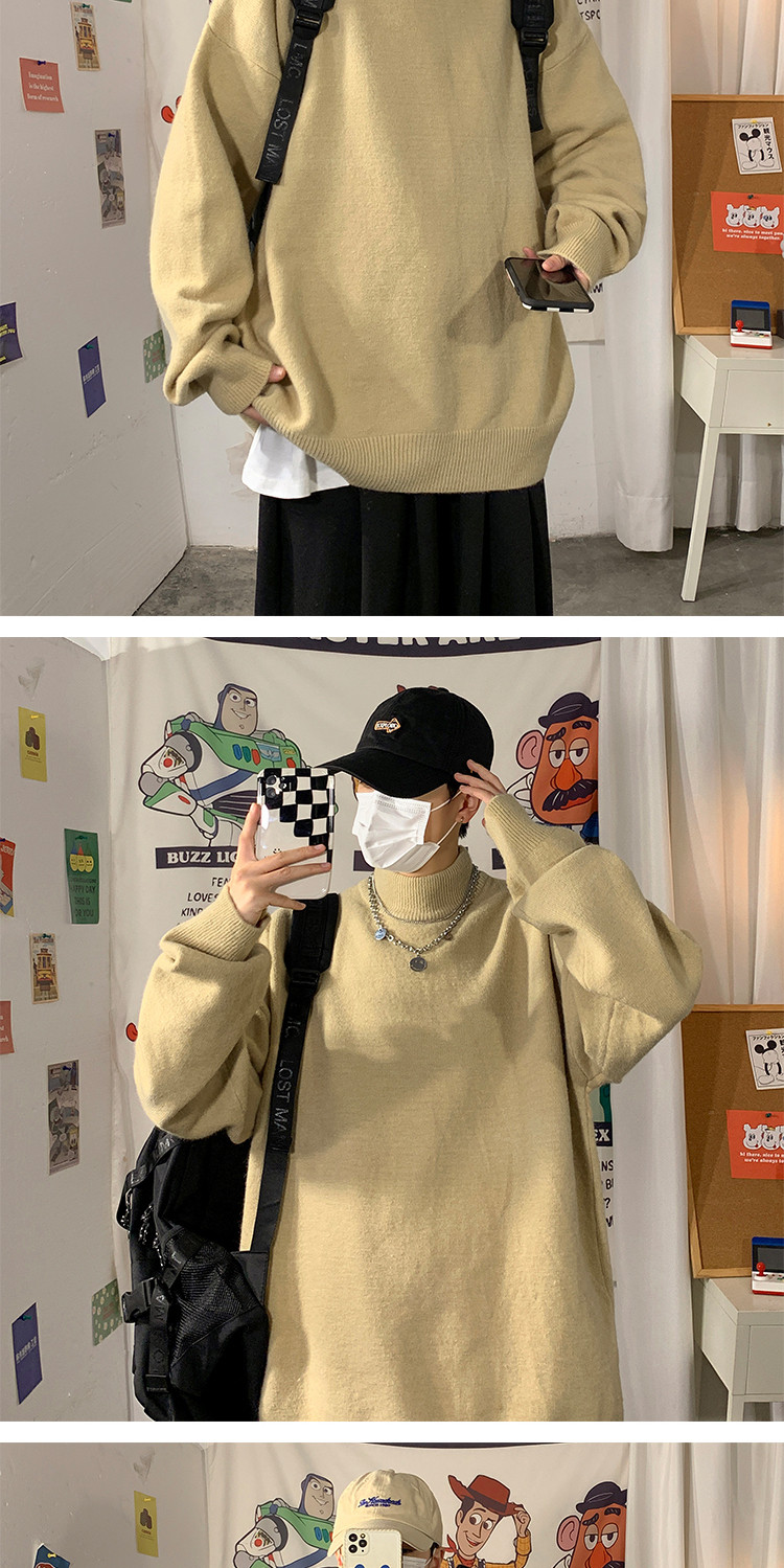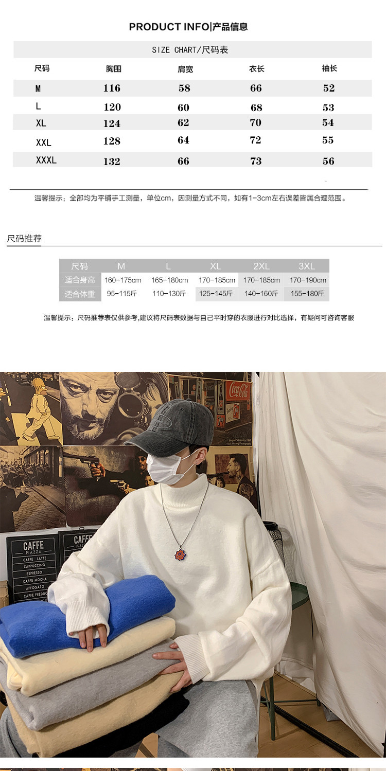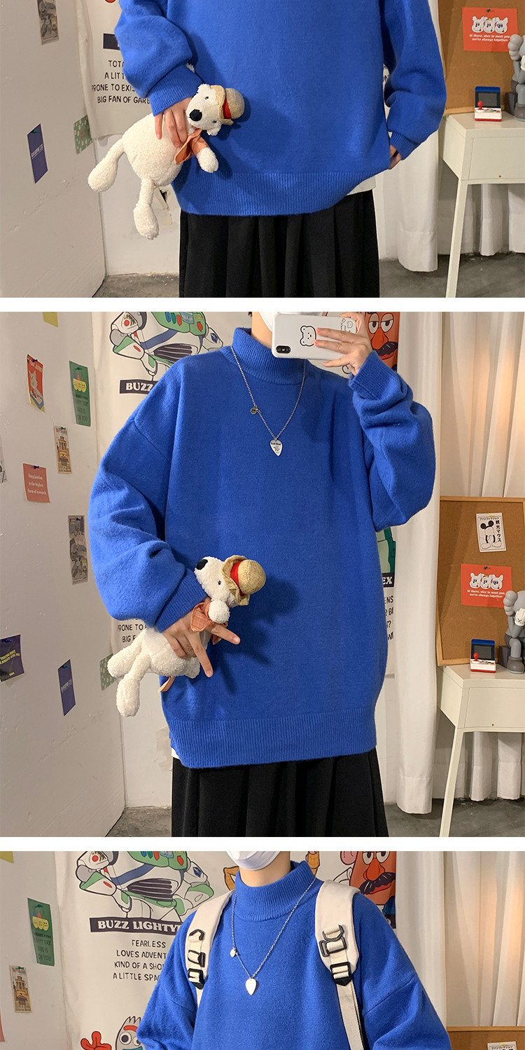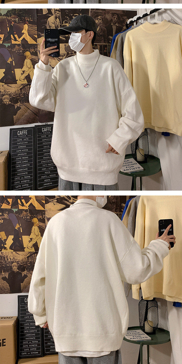 黑色半高領毛衣男生冬季加絨加厚極簡風軟糯慵嬾內搭打底針織毛衫
