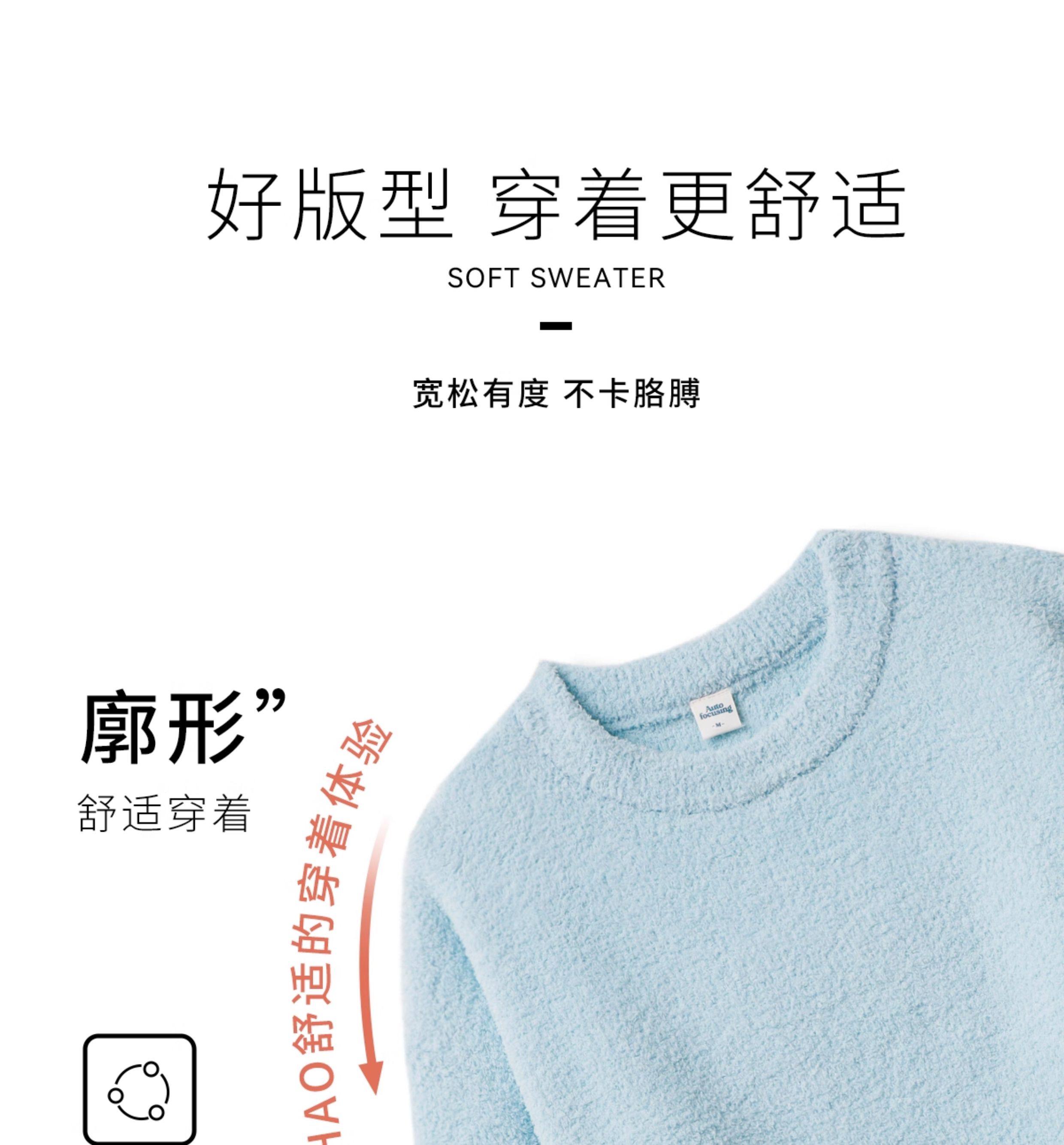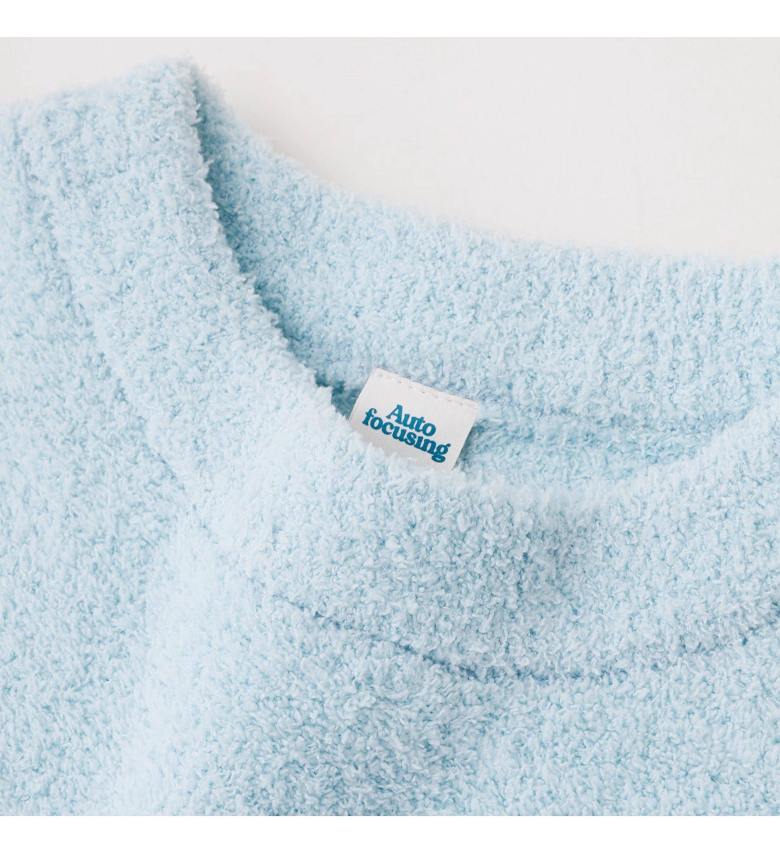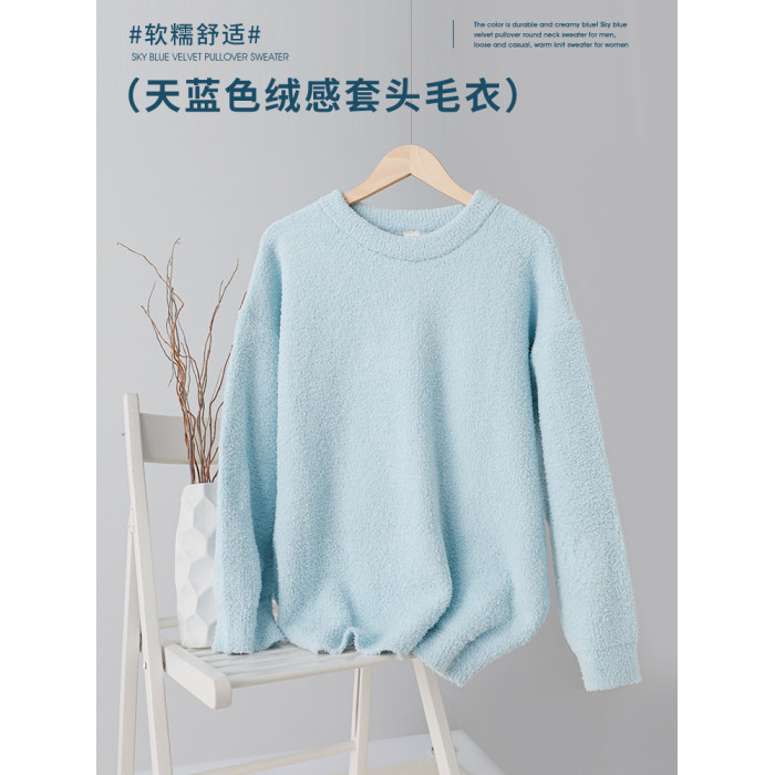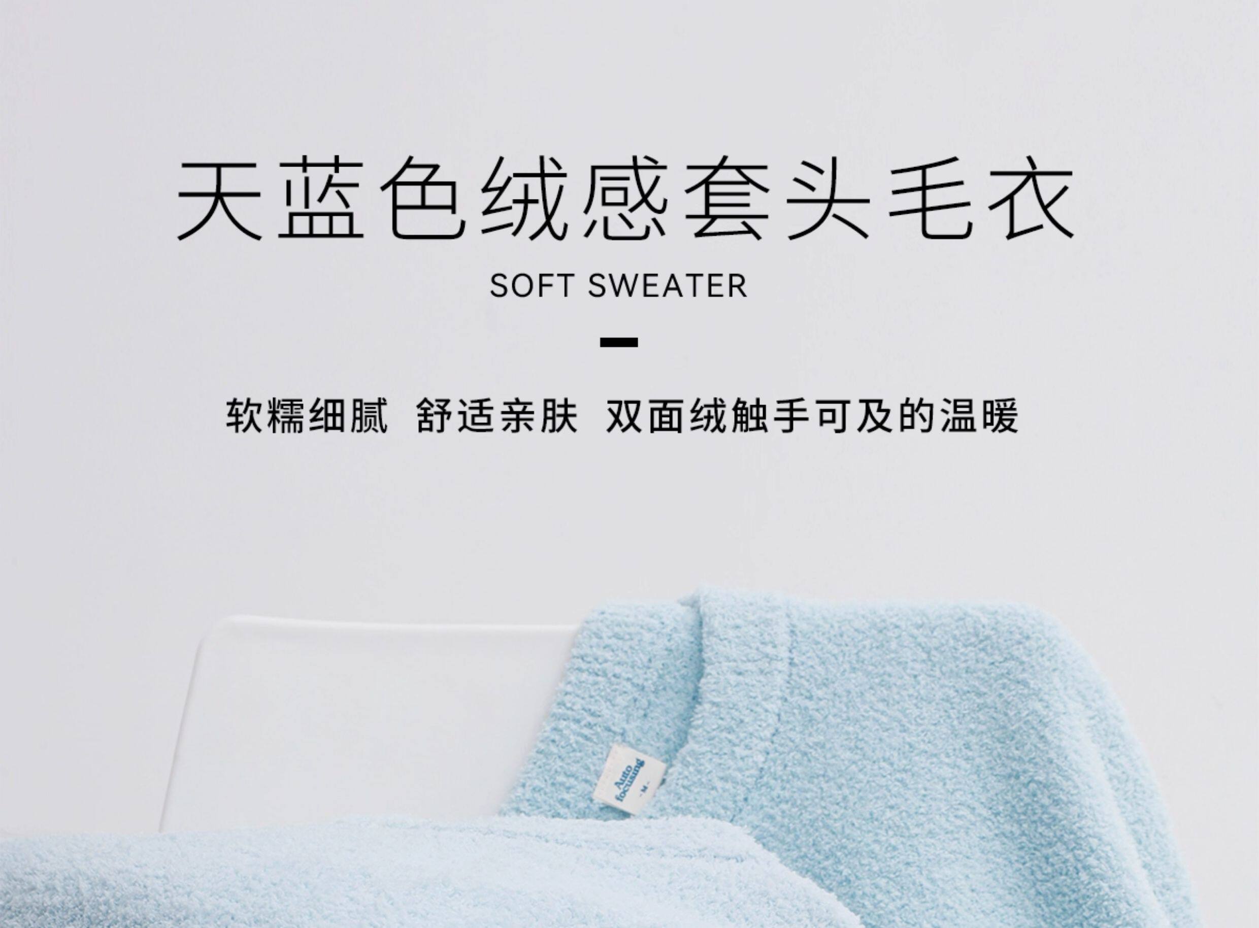 搭唸baby藍天藍色圓領毛衣嬭藍半邊絨上衣寬鬆套頭居家針織衫男女