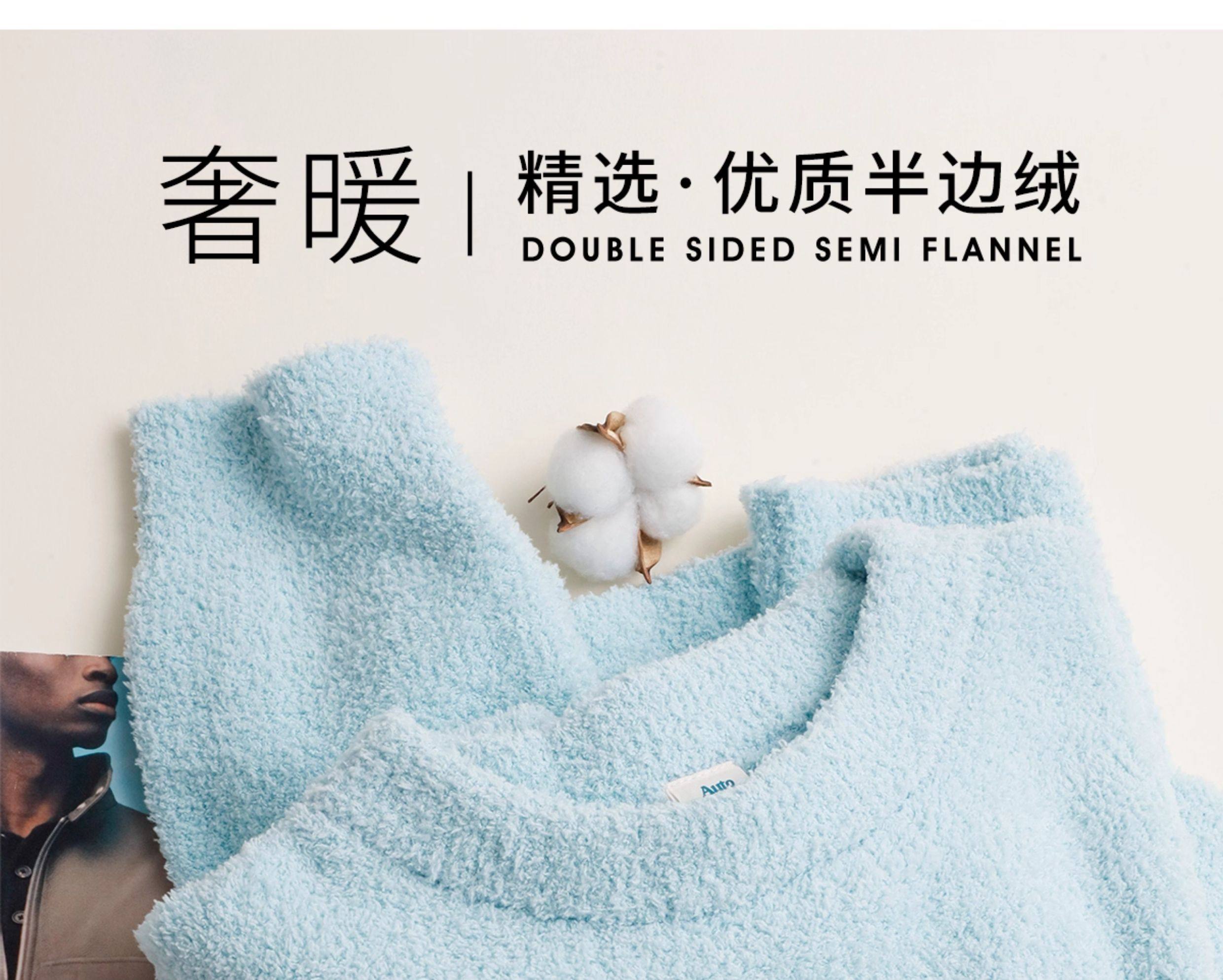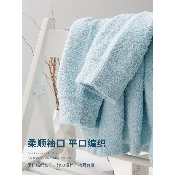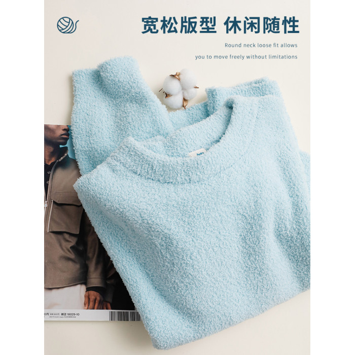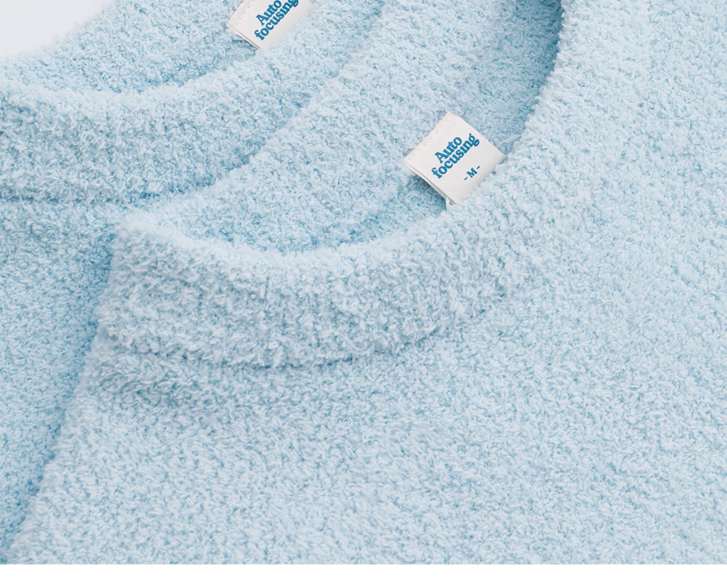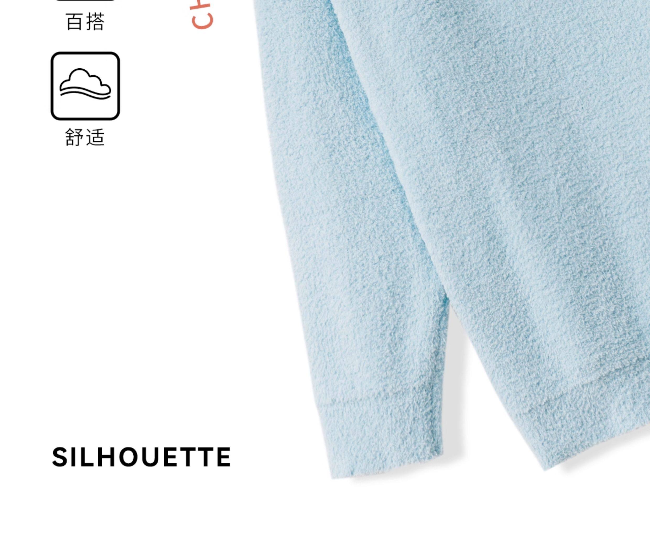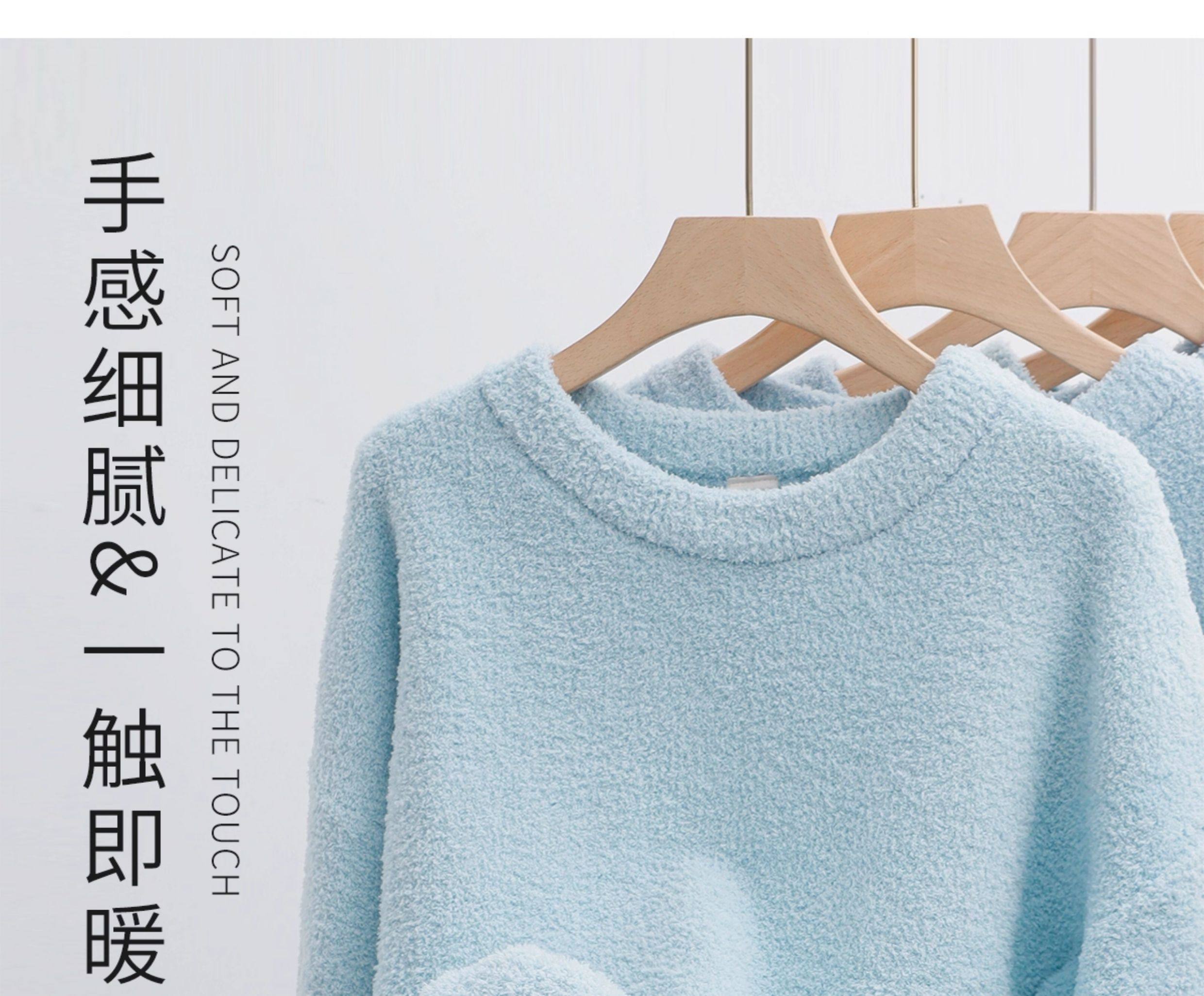 搭唸baby藍天藍色圓領毛衣嬭藍半邊絨上衣寬鬆套頭居家針織衫男女