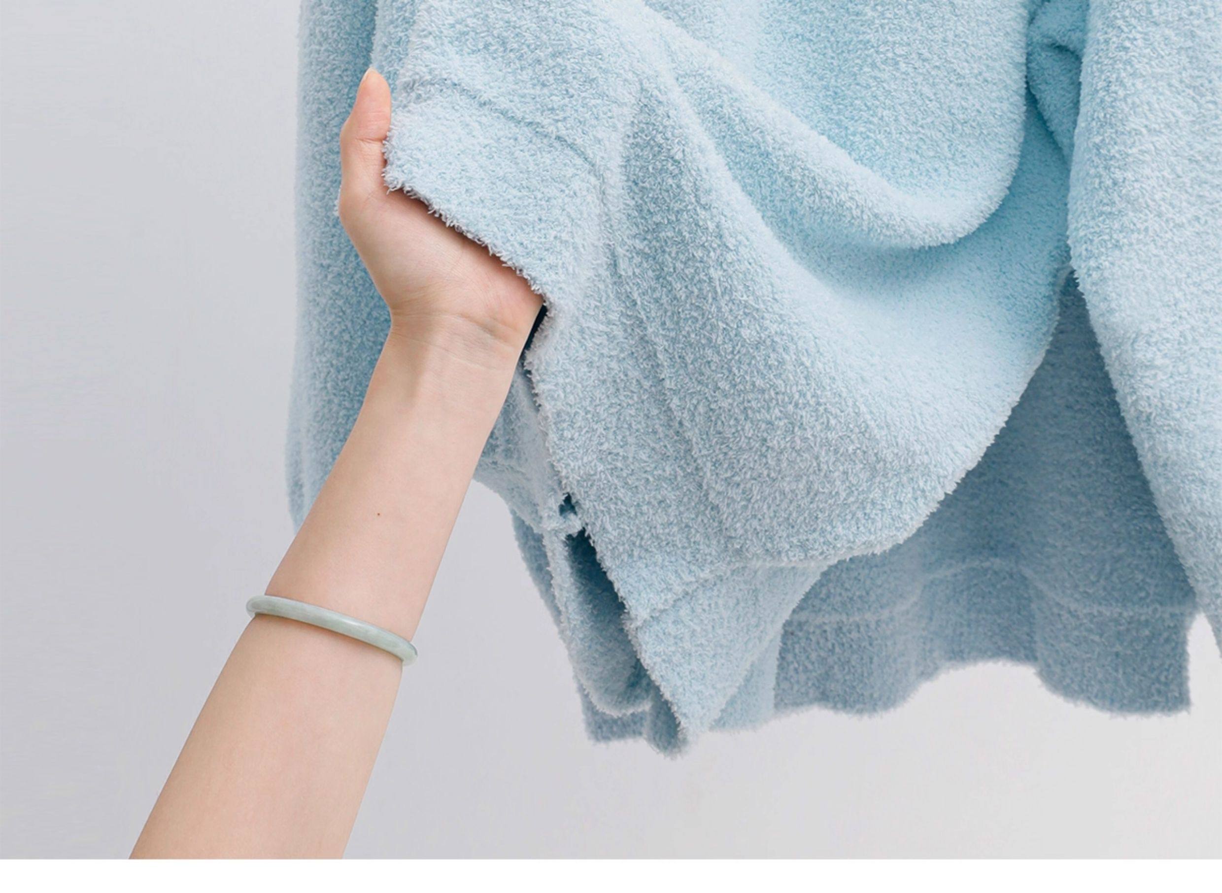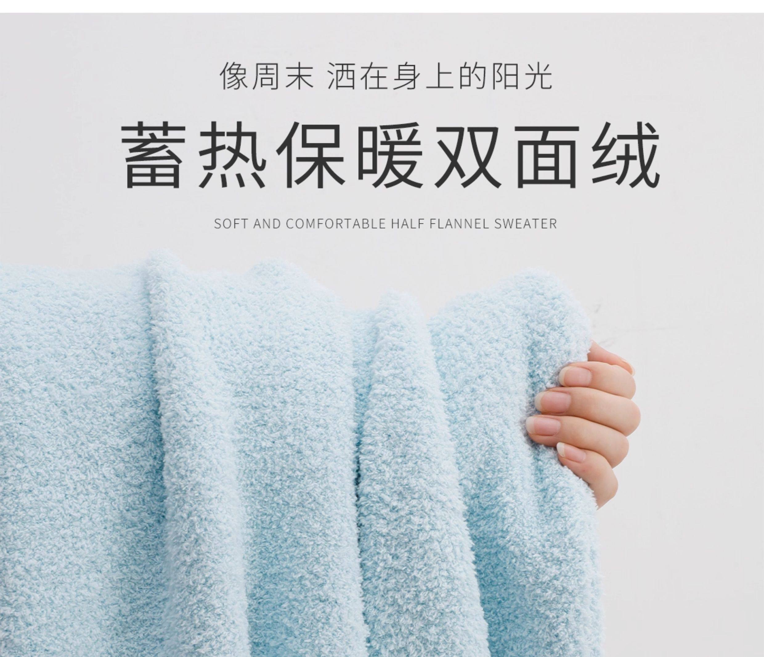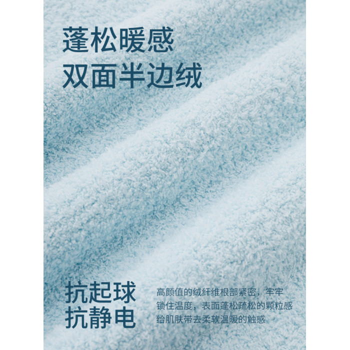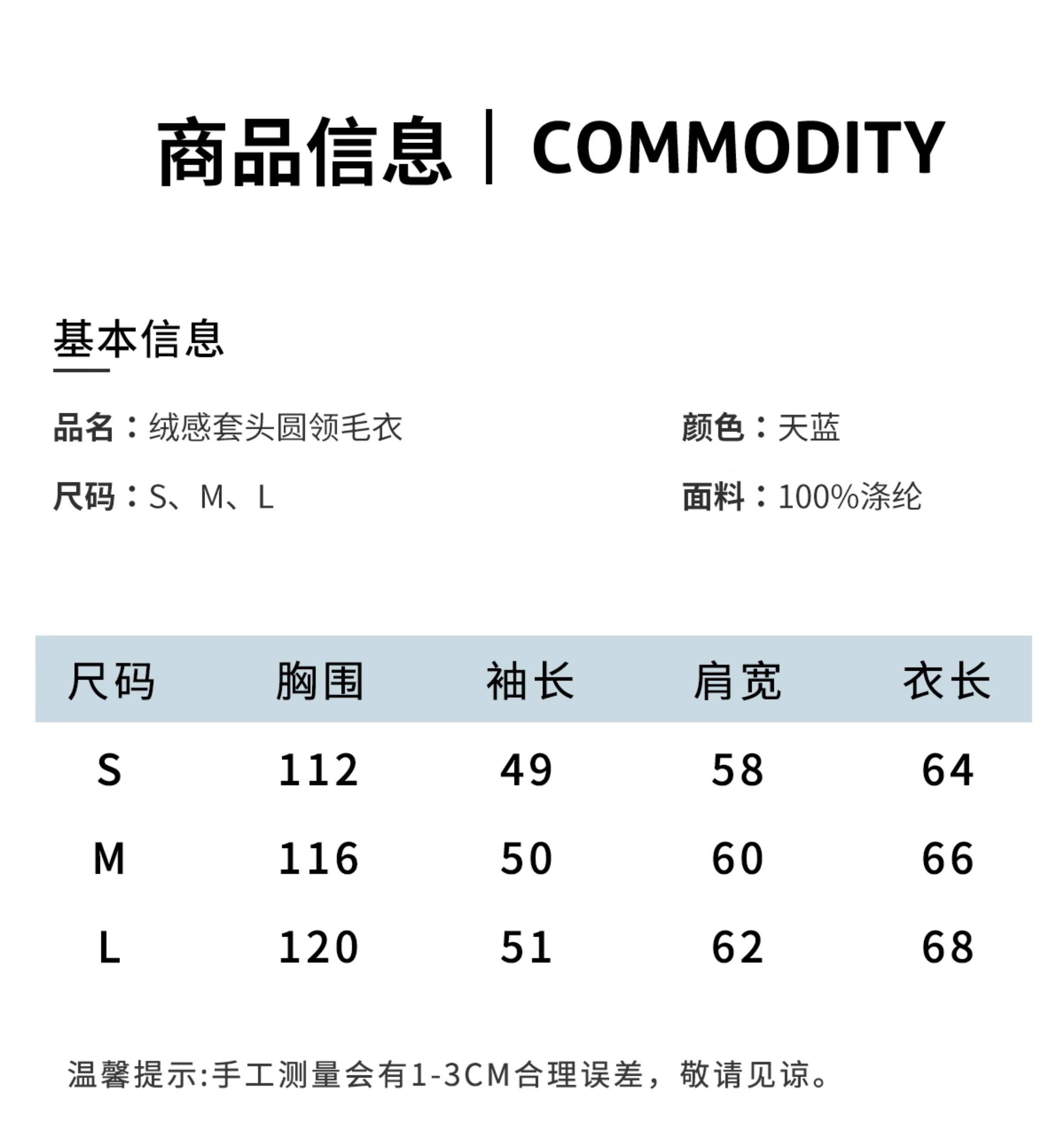 搭唸baby藍天藍色圓領毛衣嬭藍半邊絨上衣寬鬆套頭居家針織衫男女
