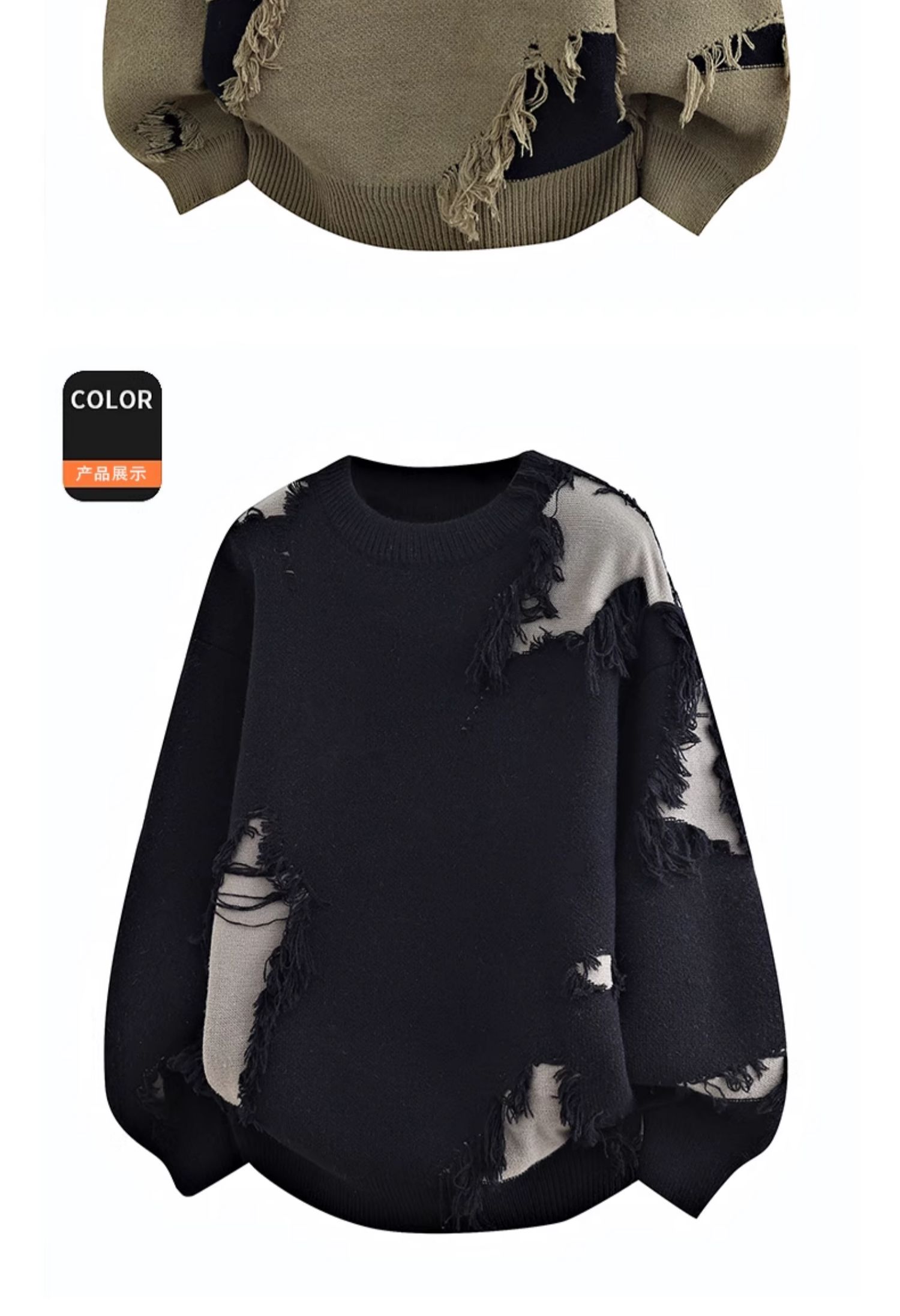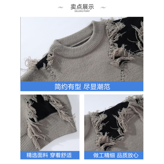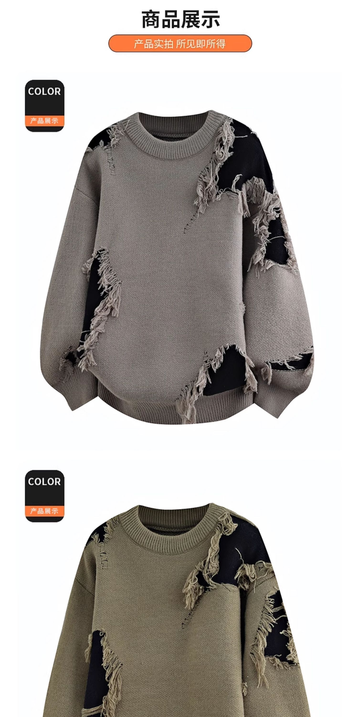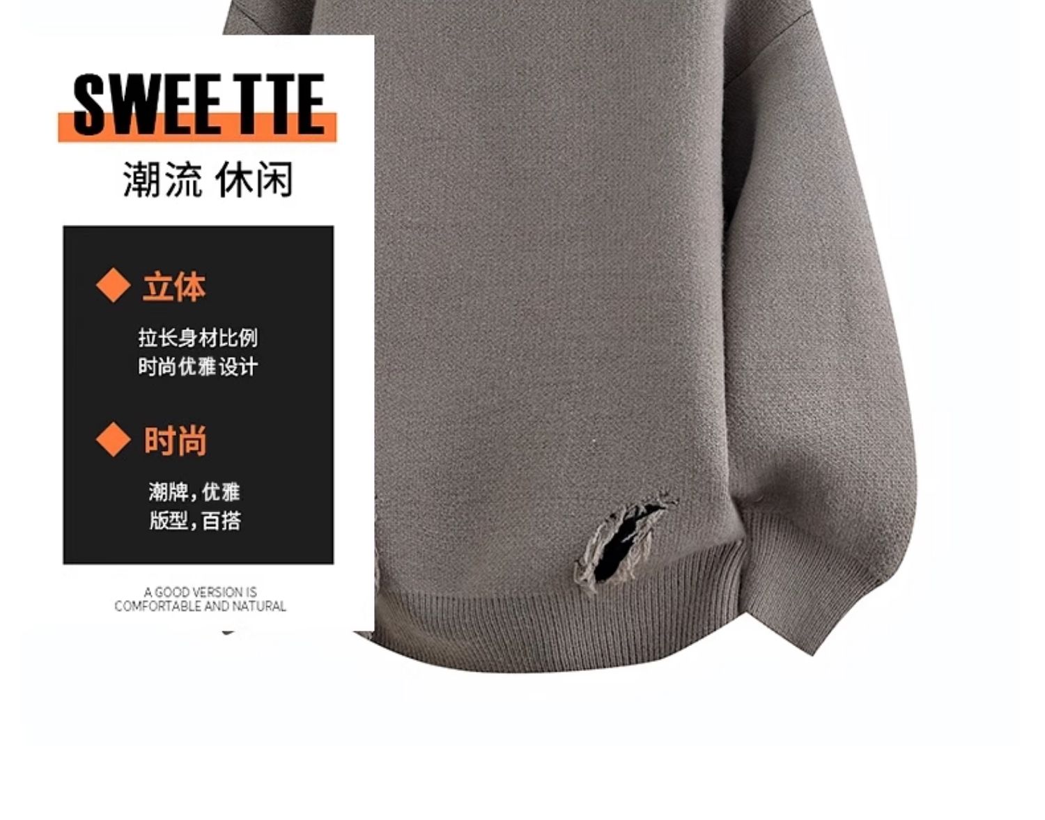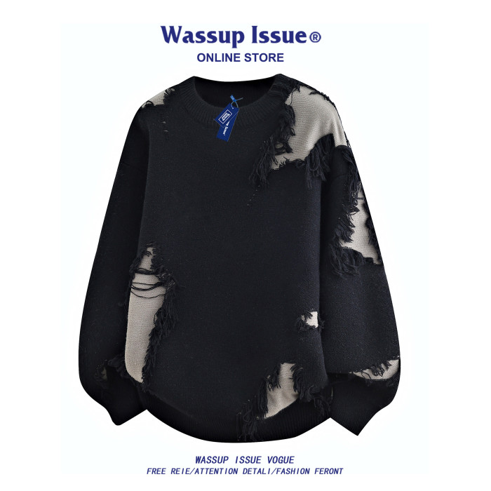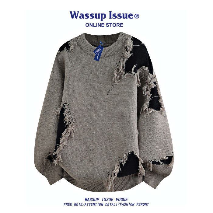WASSUP ISSUE美式圓領針織衫男秋冬季潮牌慵懶風情侶毛衣外套男款