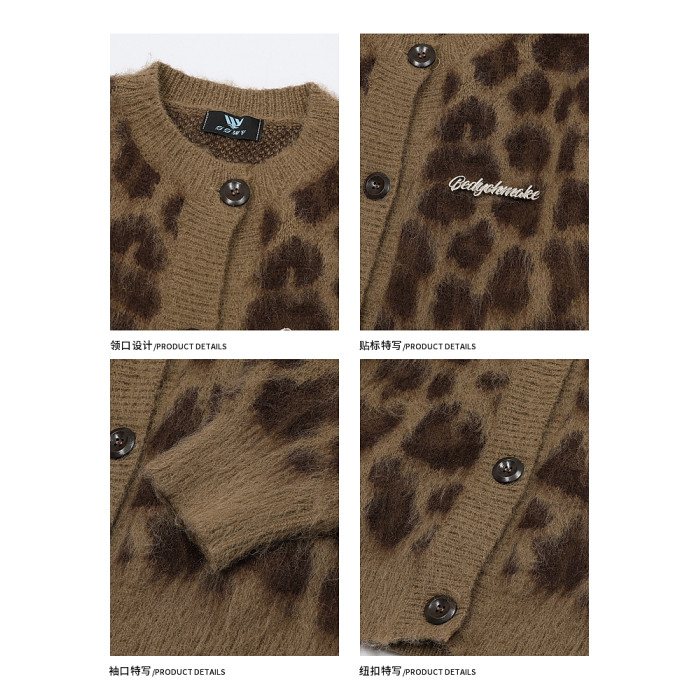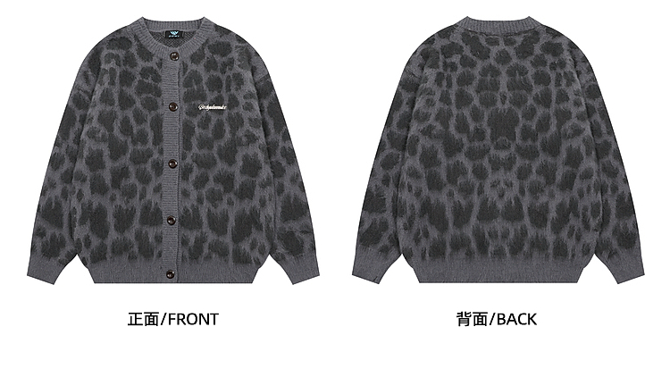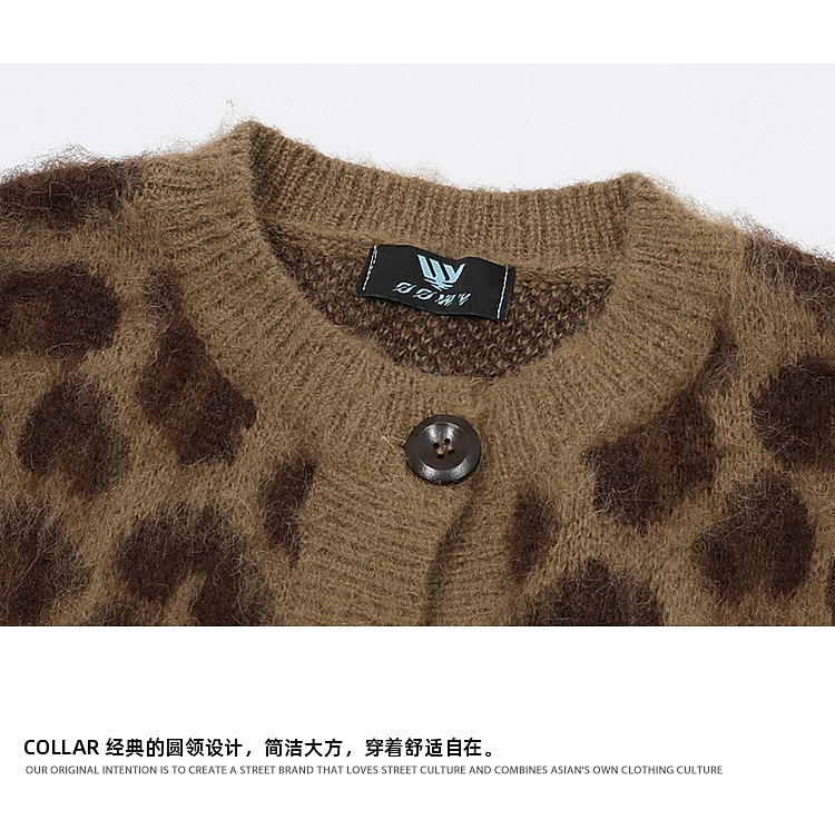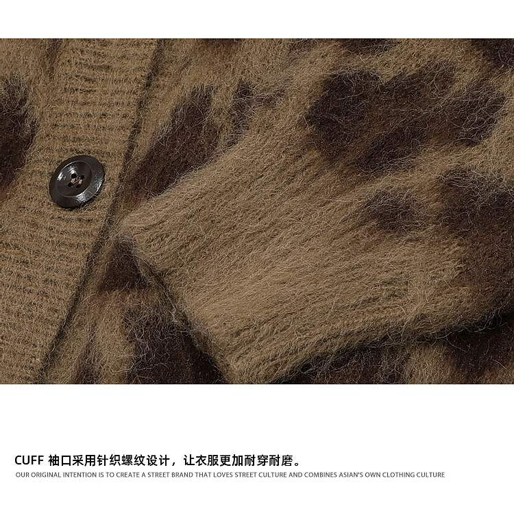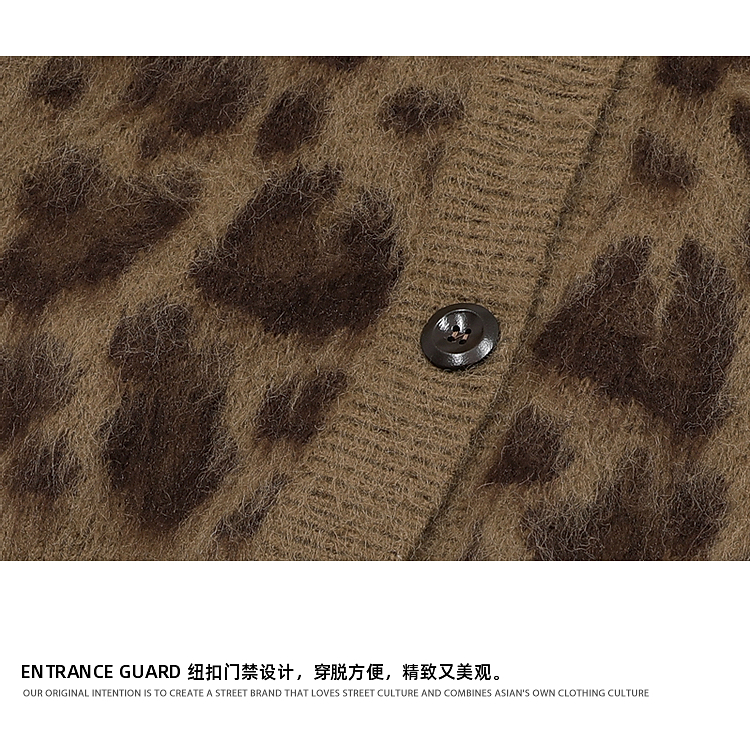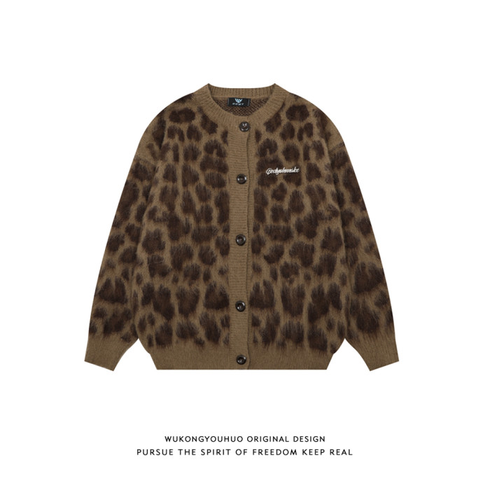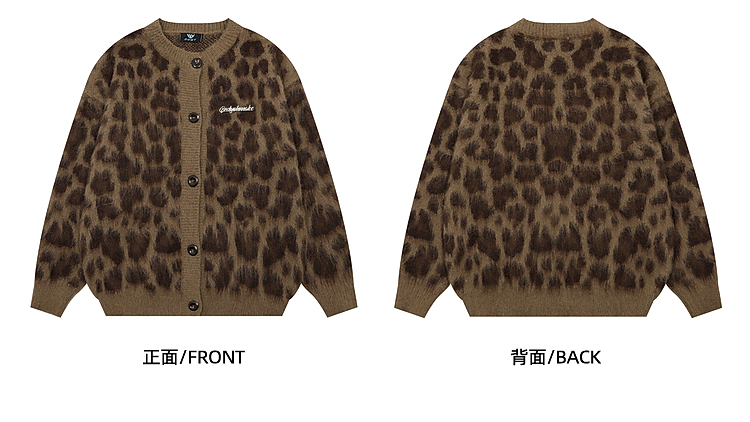 悟空有貨復古美式豹紋提花馬海毛開衫毛衣男女秋冬慵懶針織衫外套