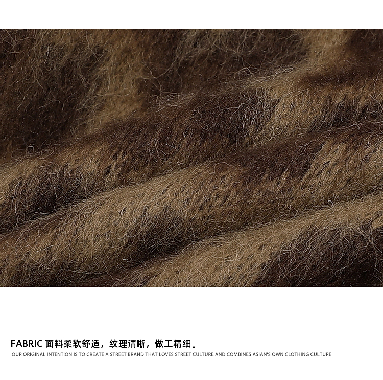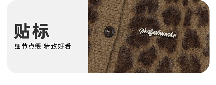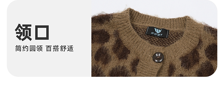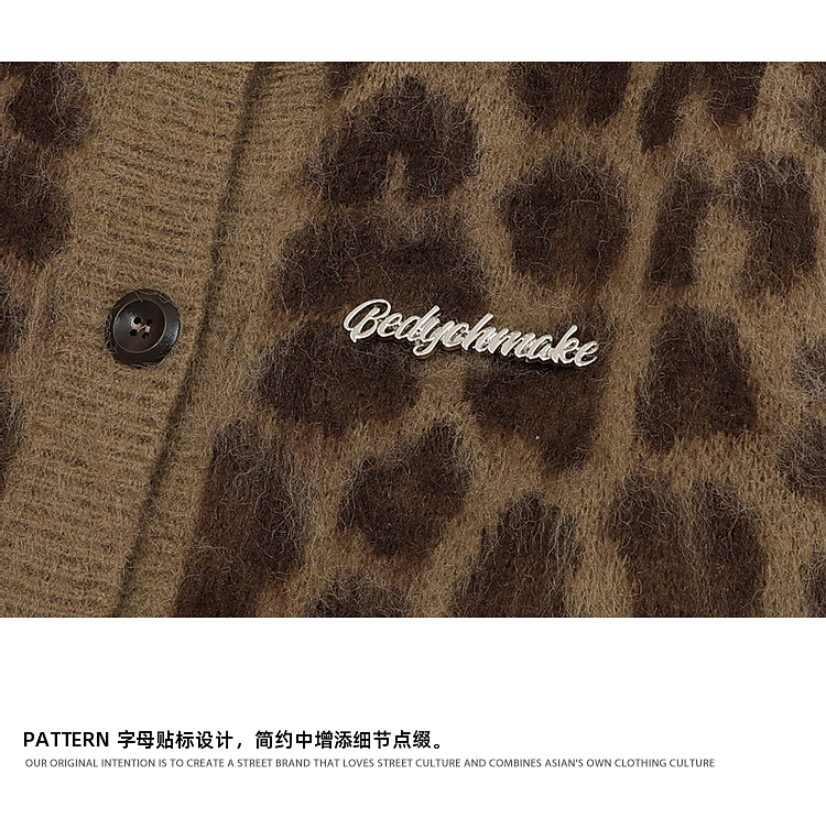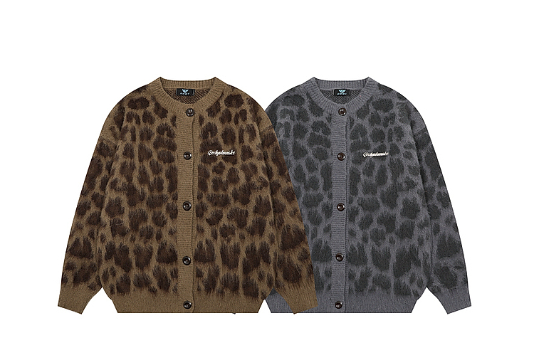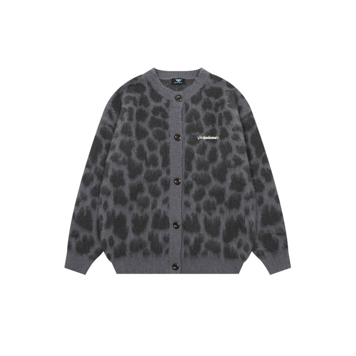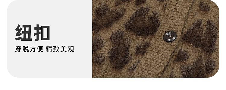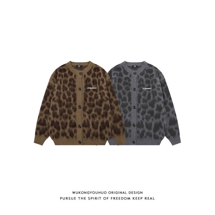 悟空有貨復古美式豹紋提花馬海毛開衫毛衣男女秋冬慵懶針織衫外套