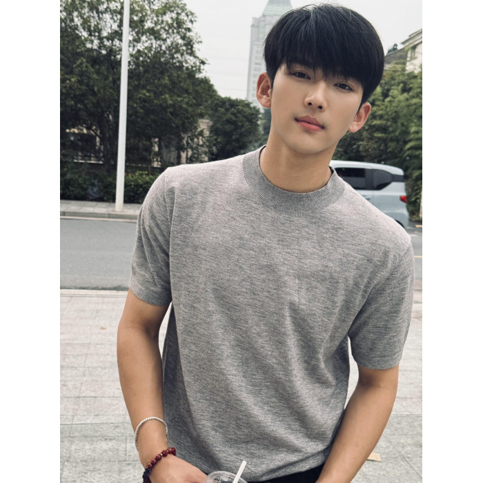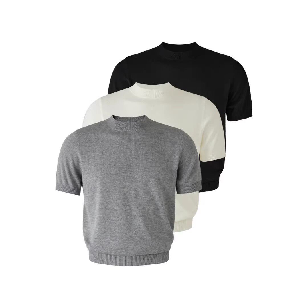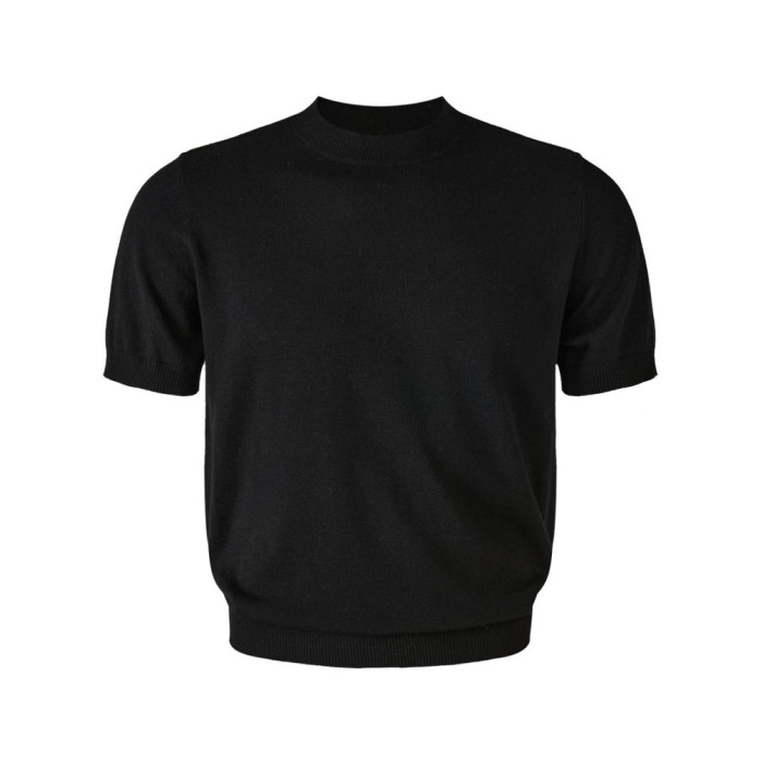 美式復古老錢風針織小圓領短袖男夏季健身顯肌肉休閒短款修身T恤