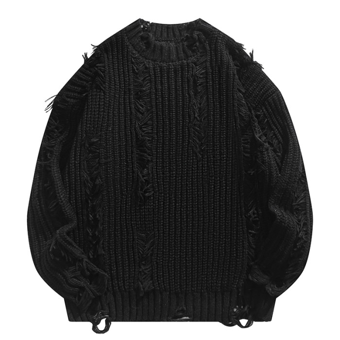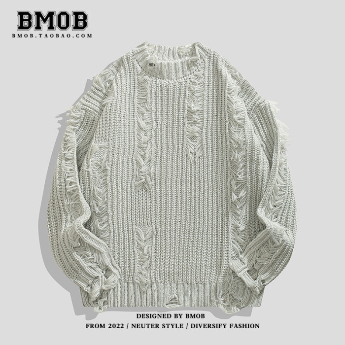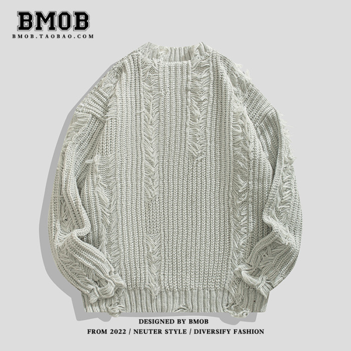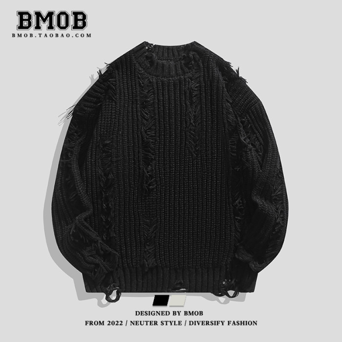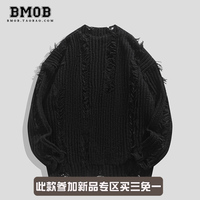 BMOB美式高街小衆破壞設計感針織衫秋季oversize男女痞帥毛衣外套