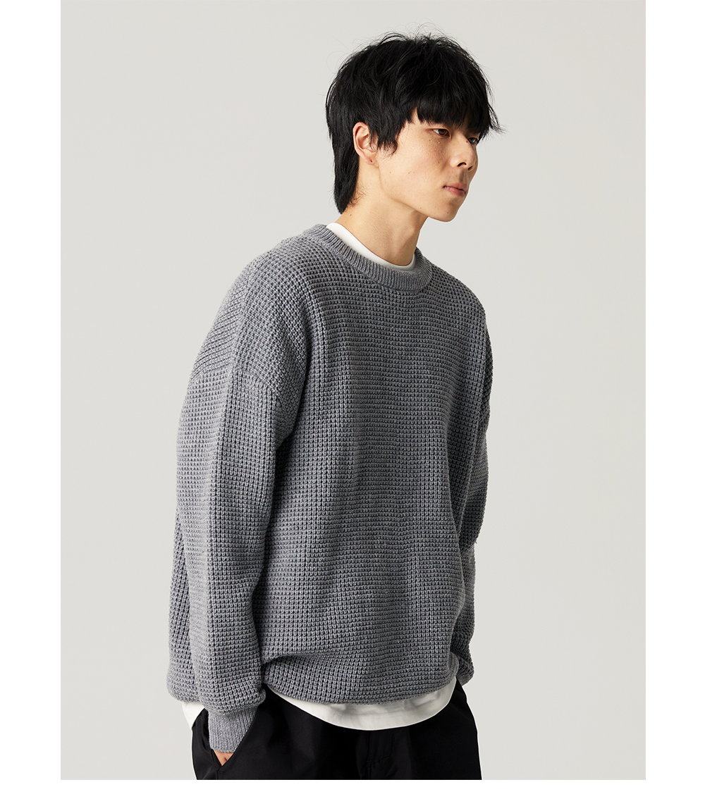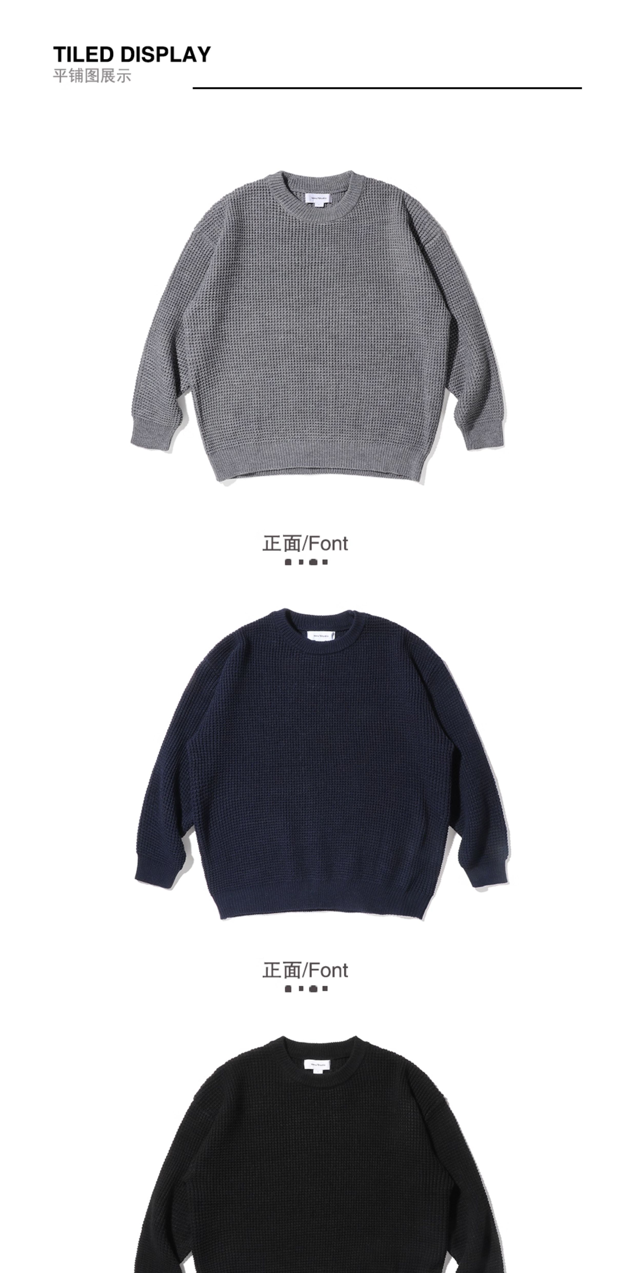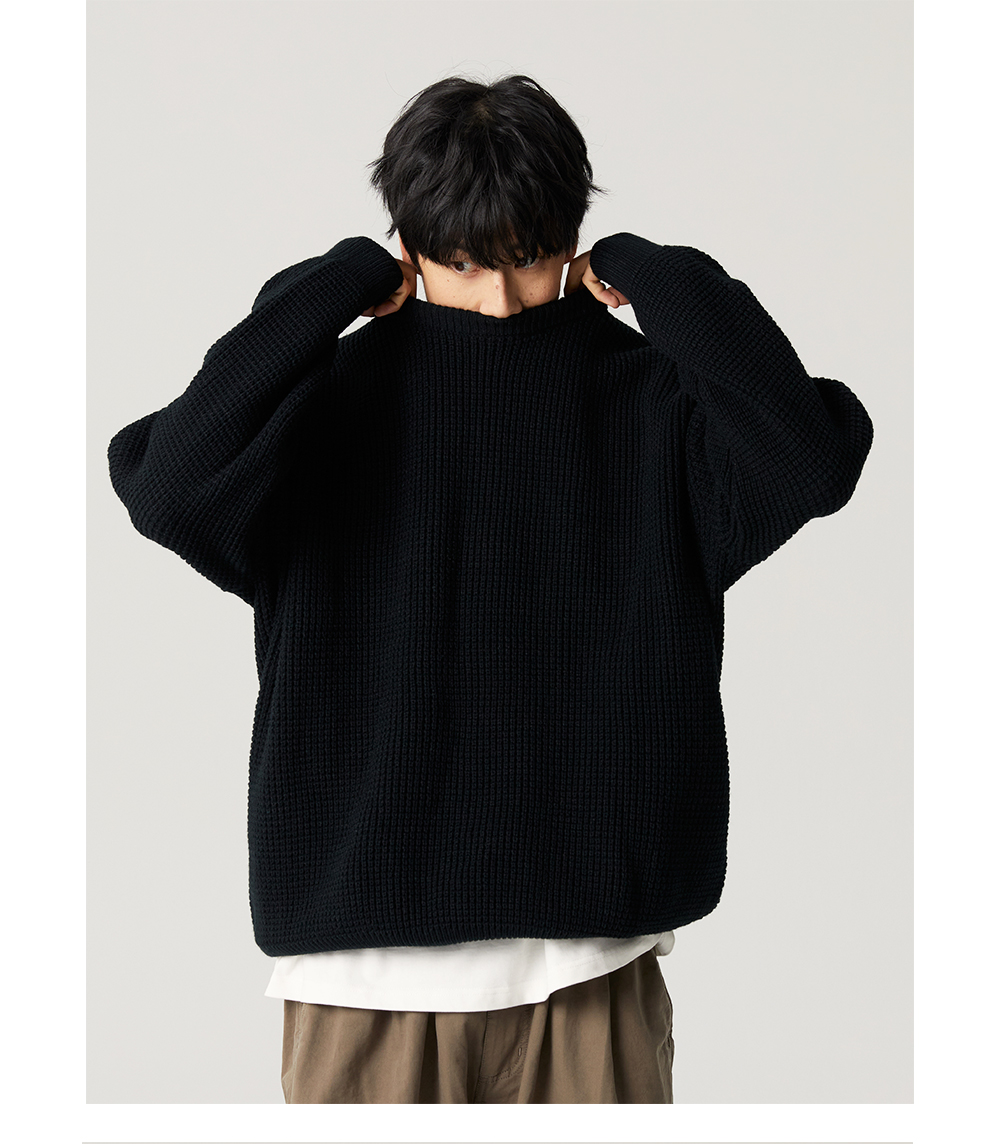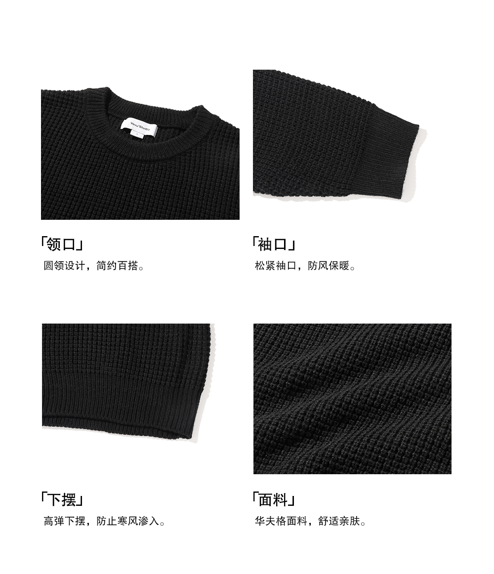 【限時9折】Vavu日系基礎華夫格針織衫秋冬寬松休閒毛衣cityboy潮
