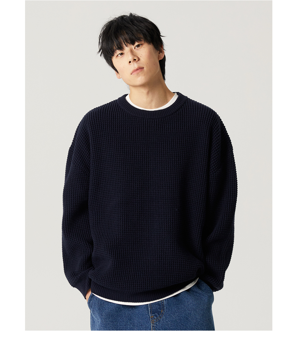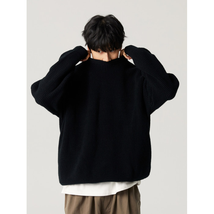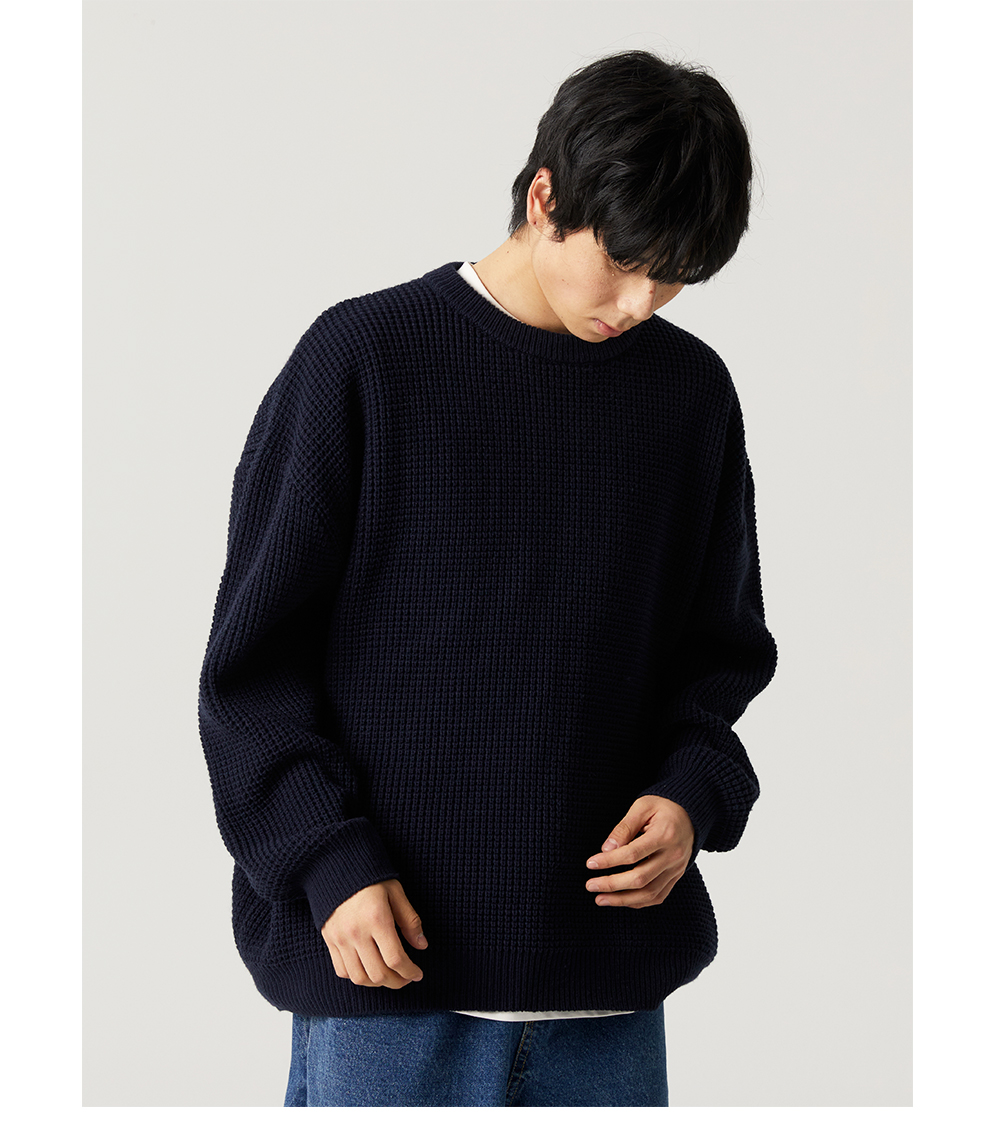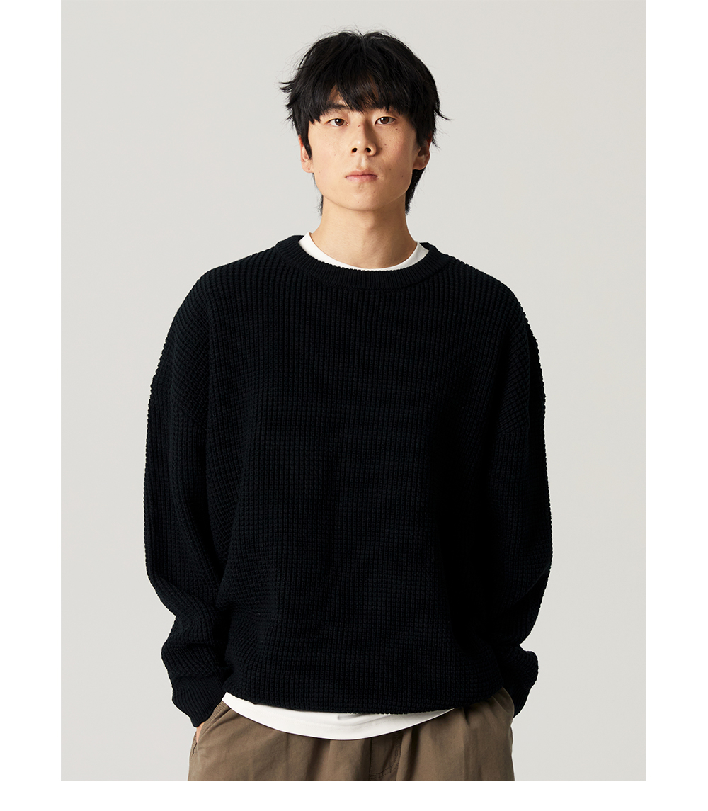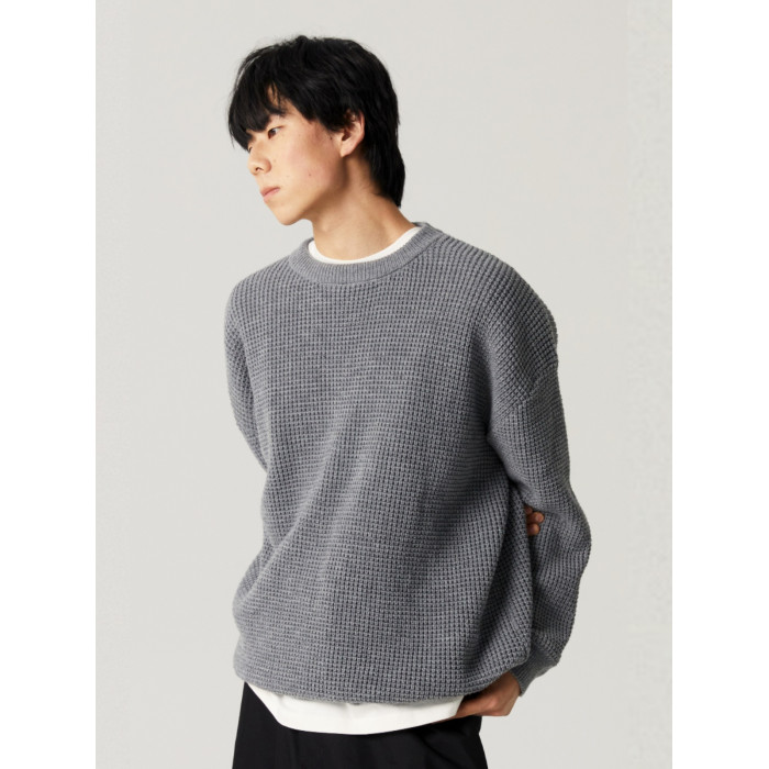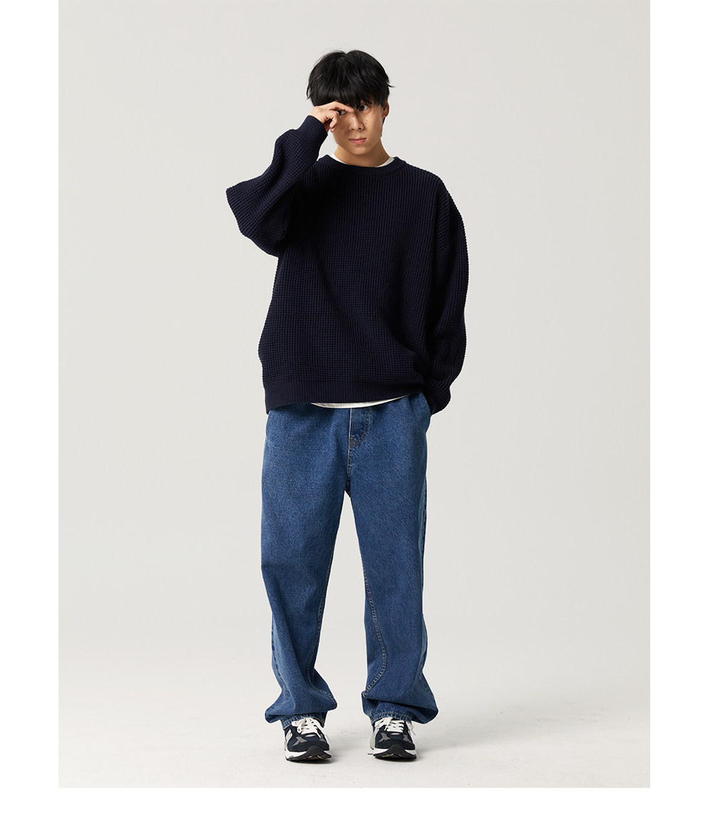 【限時9折】Vavu日系基礎華夫格針織衫秋冬寬松休閒毛衣cityboy潮