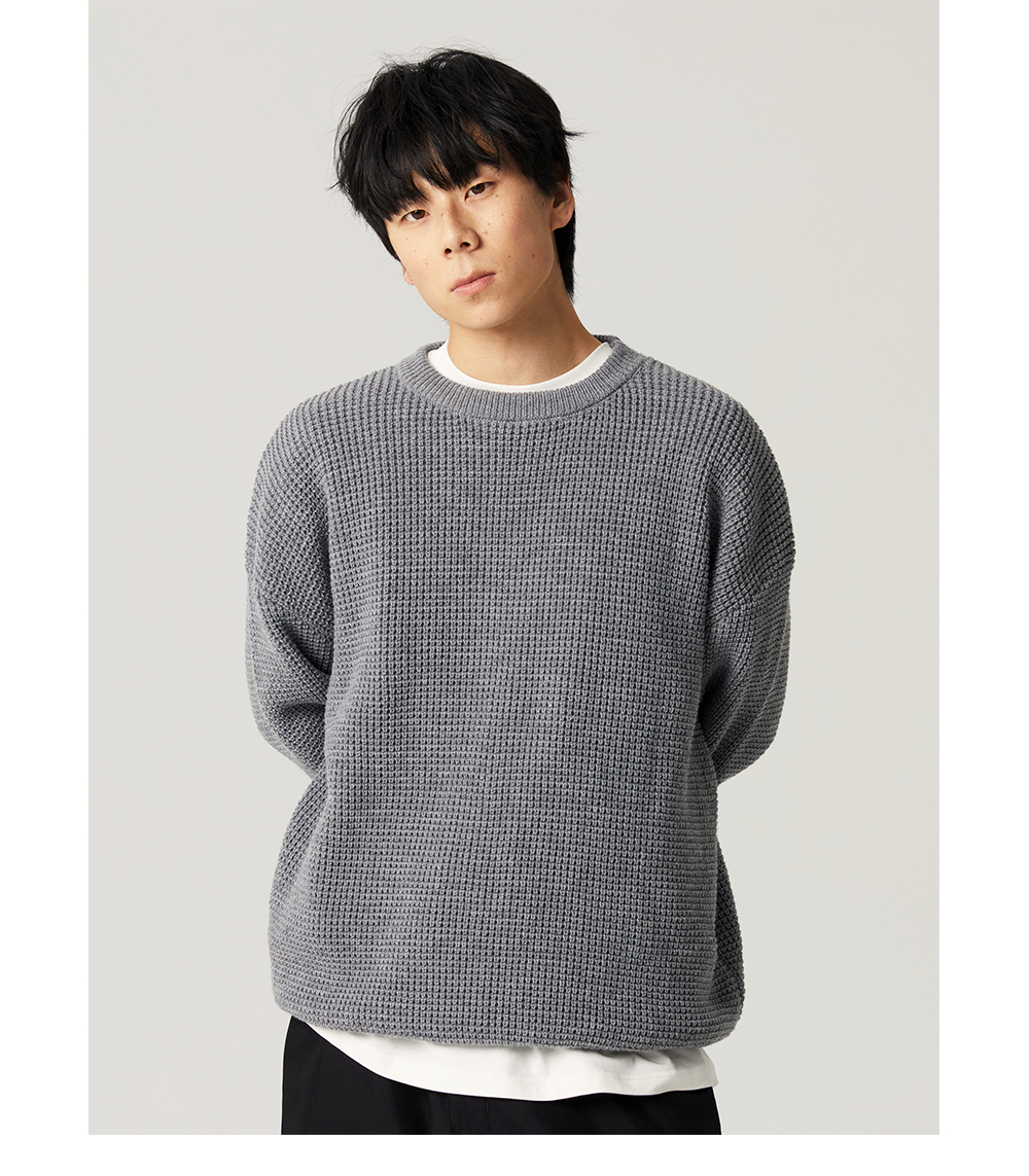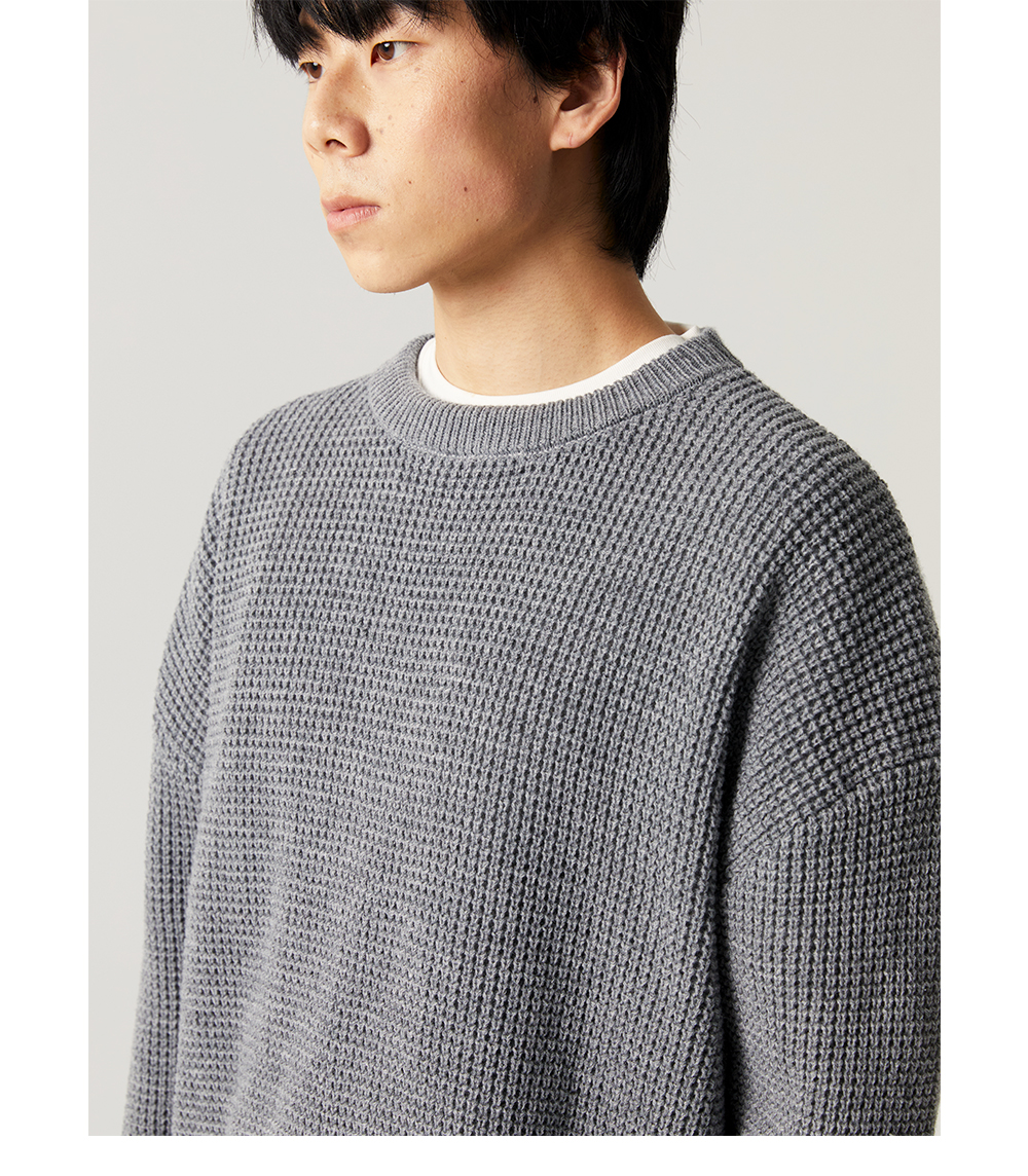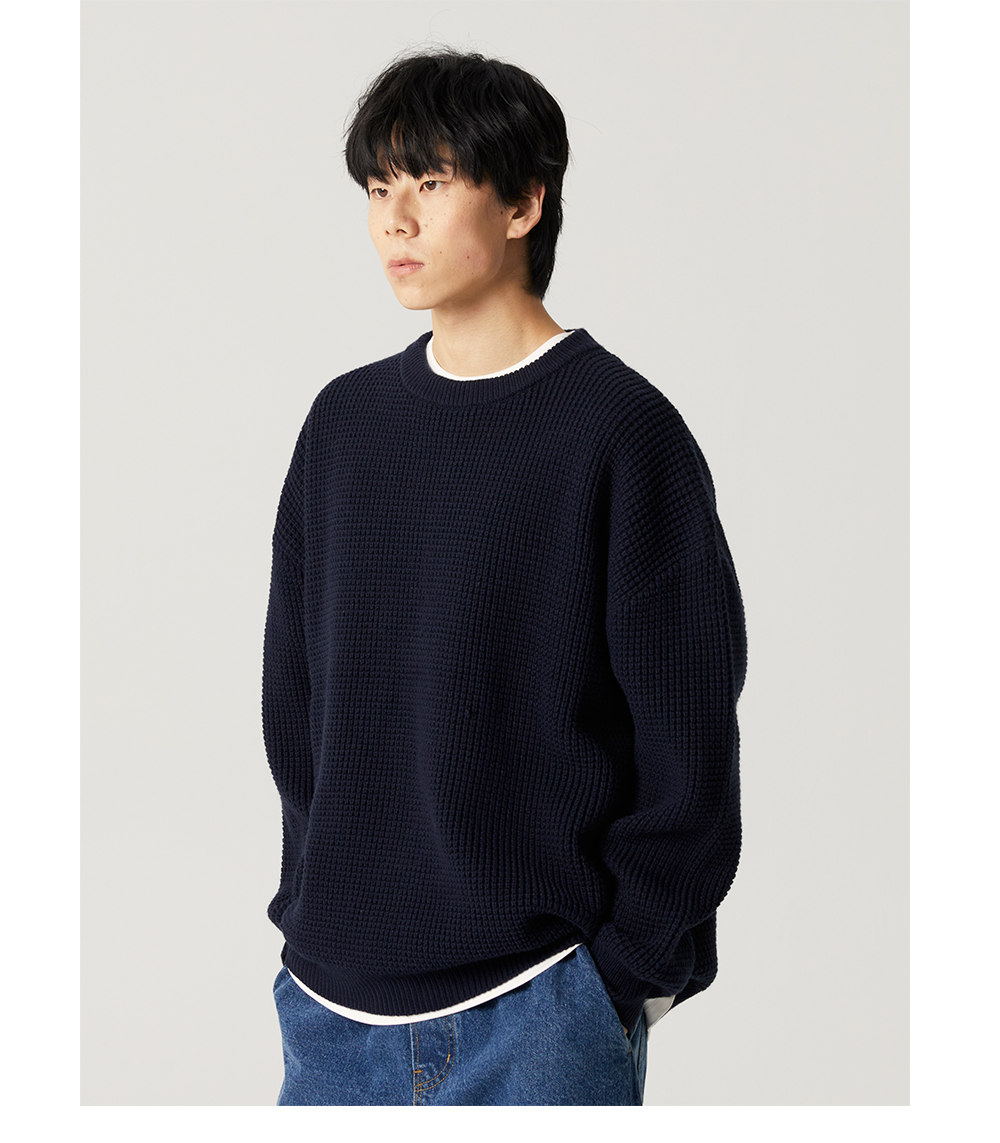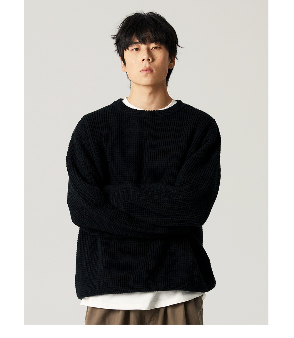 【限時9折】Vavu日系基礎華夫格針織衫秋冬寬松休閒毛衣cityboy潮