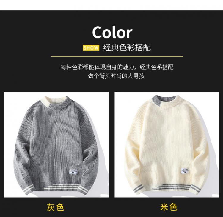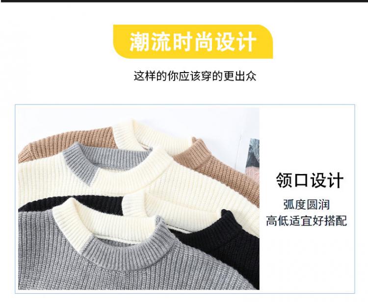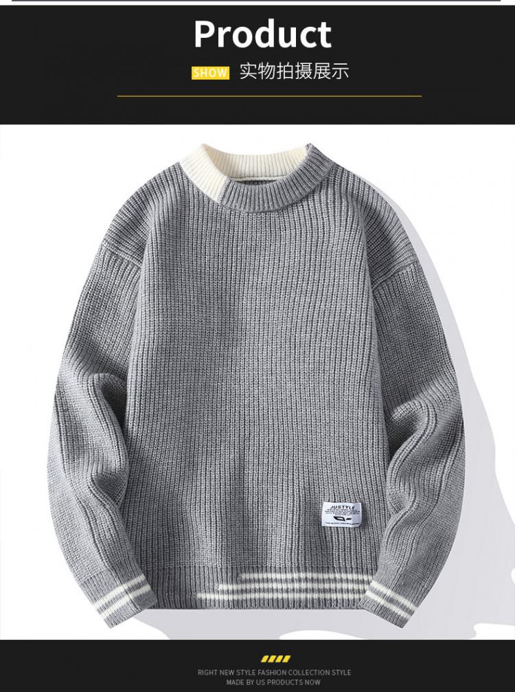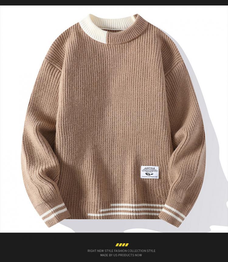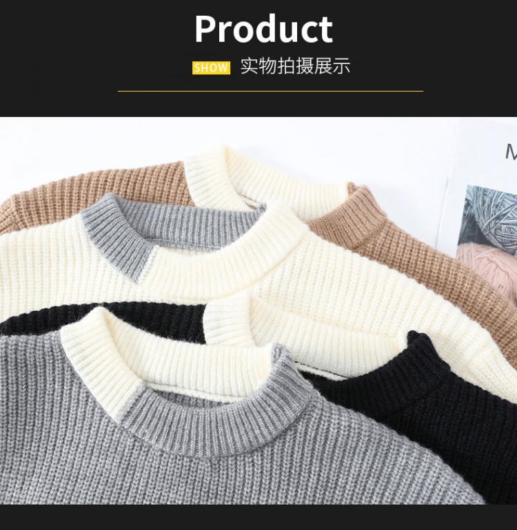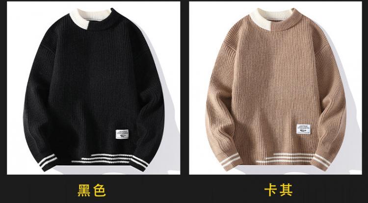 春秋季圓領毛衣男冬季新款假兩件長袖打底衫男士加絨厚保暖針織衫